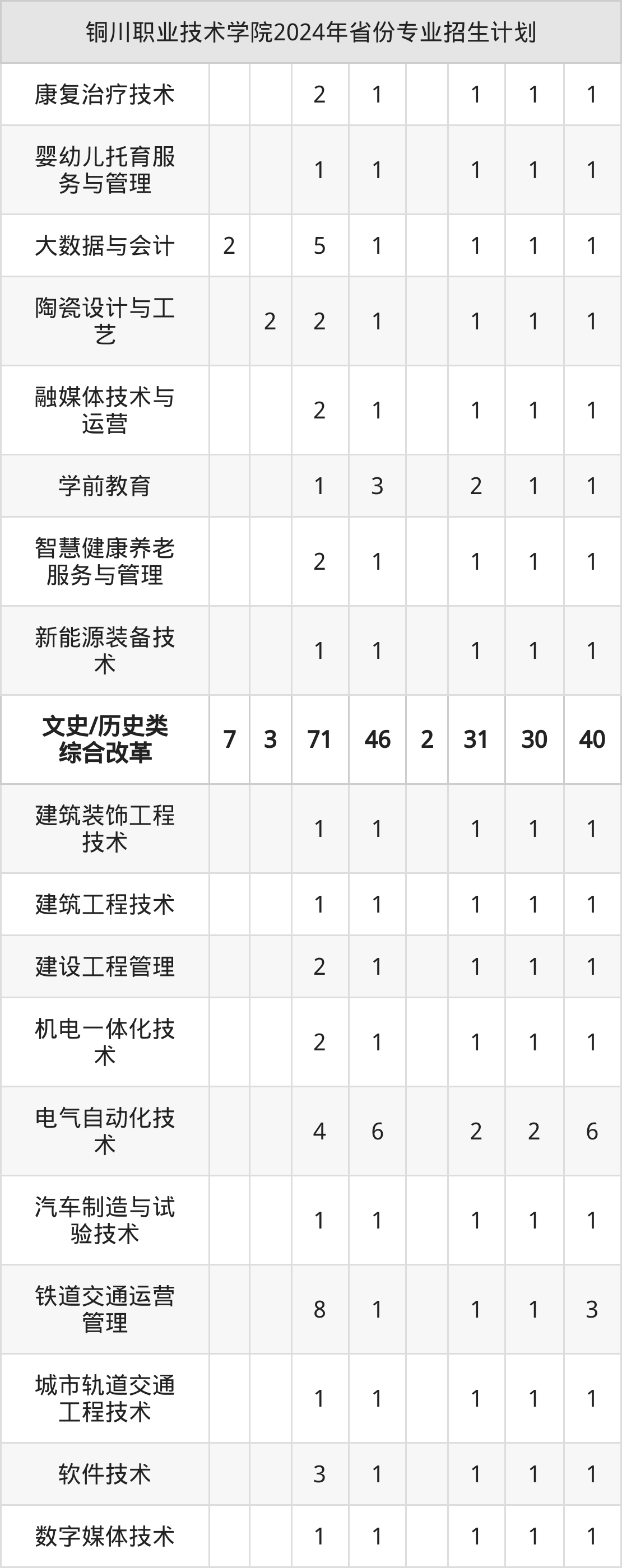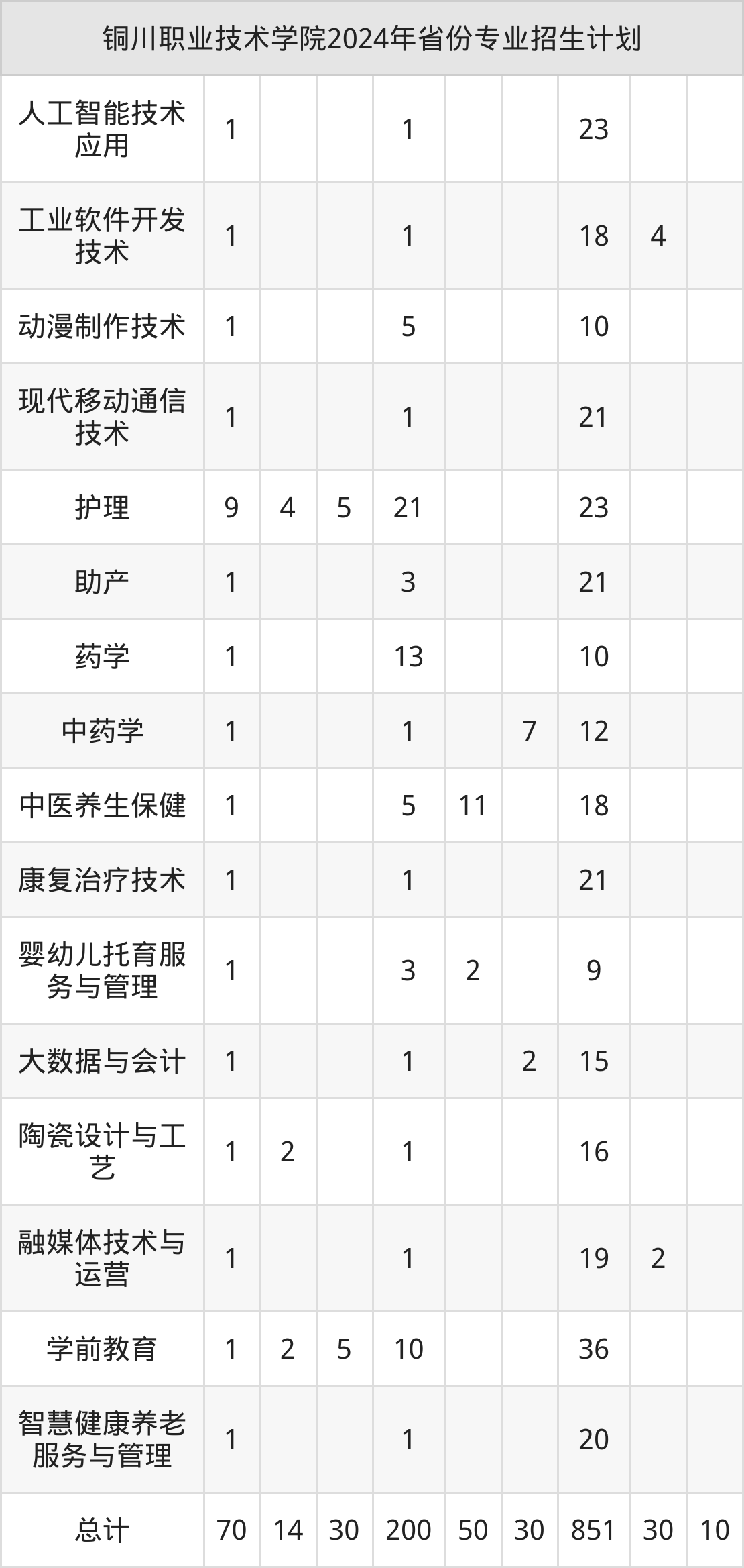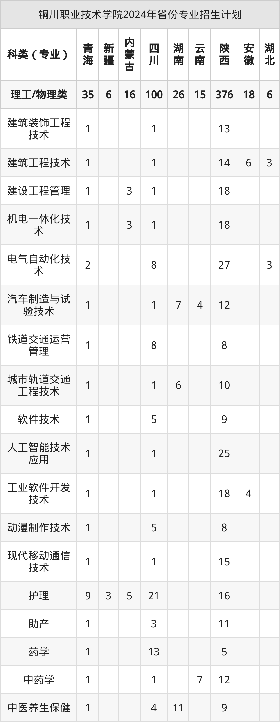 2025年铜川职业技术学院专科招生计划待公布,下面附上2024年数据,暂供参考: