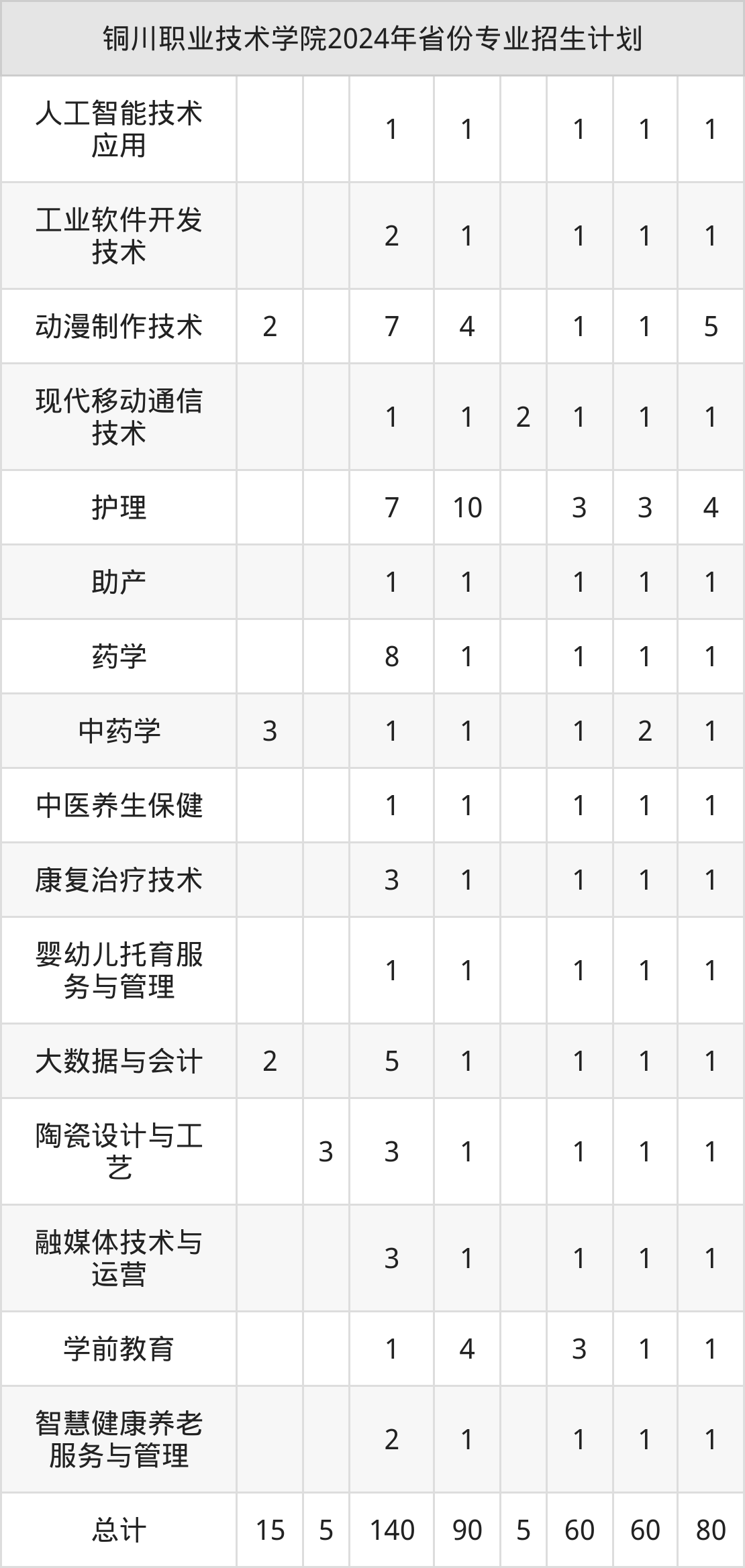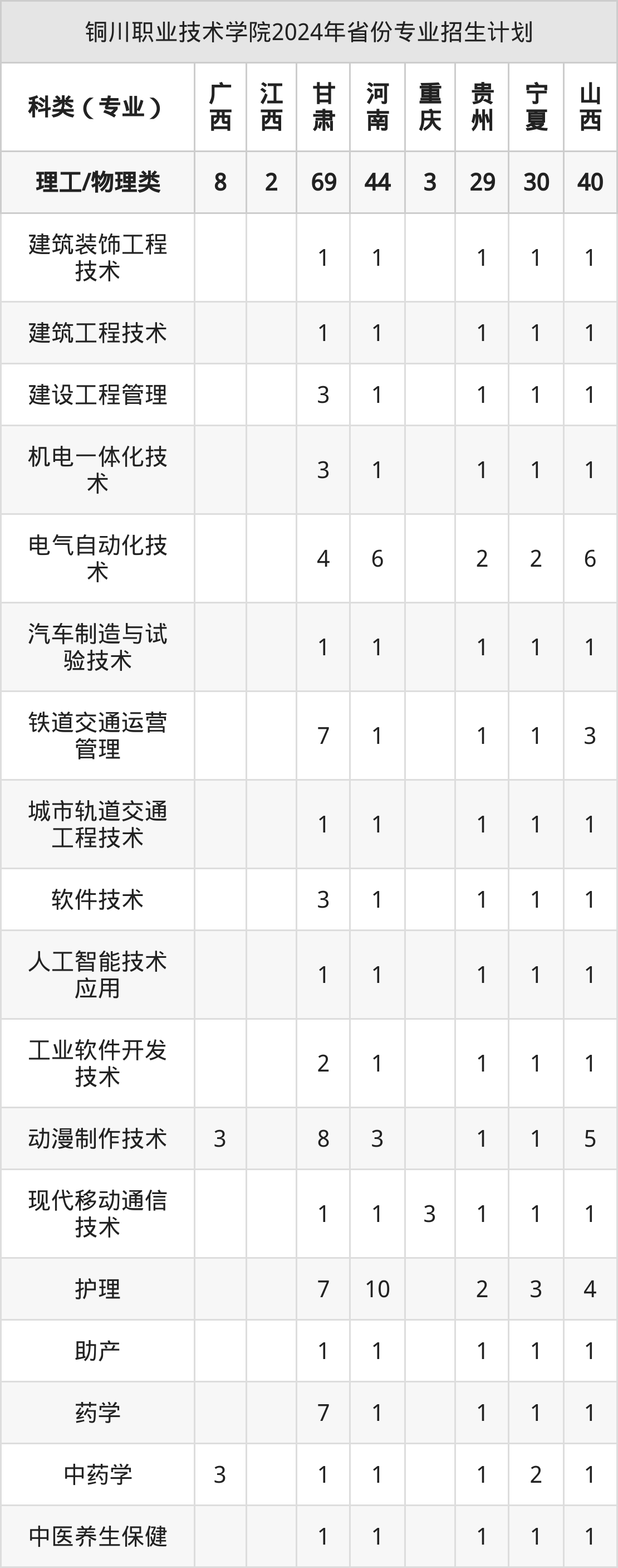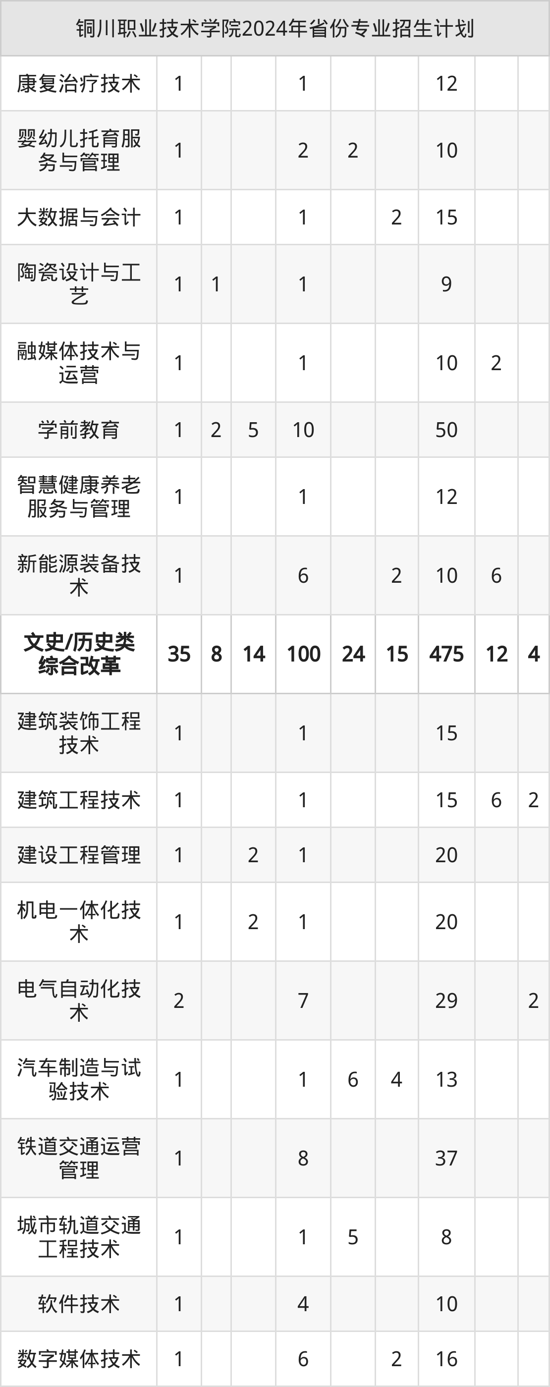 2025年铜川职业技术学院专科招生计划待公布,下面附上2024年数据,暂供参考: