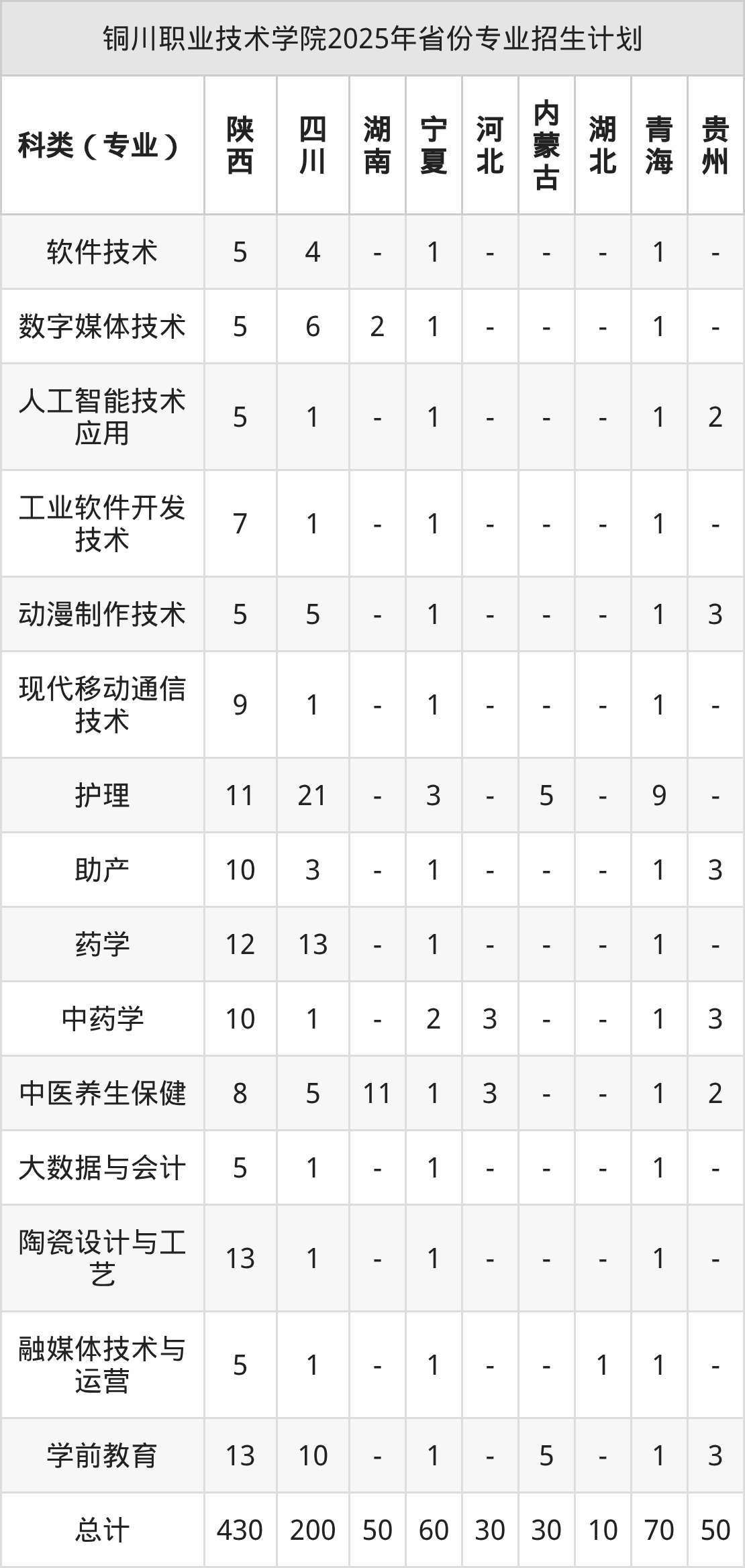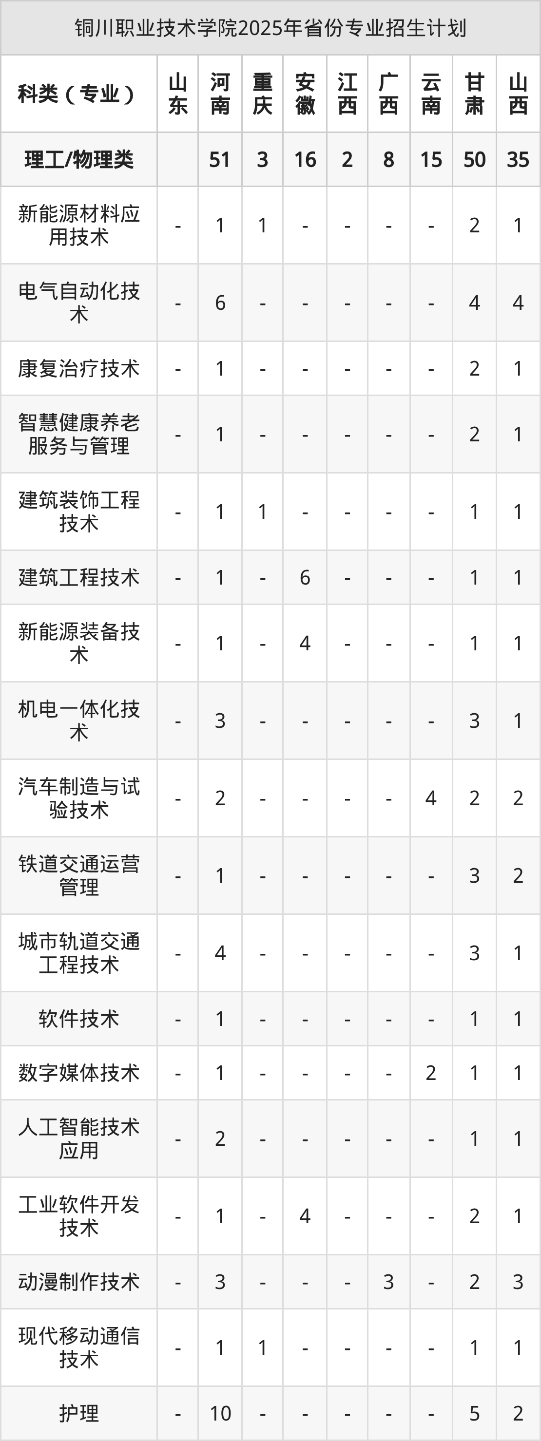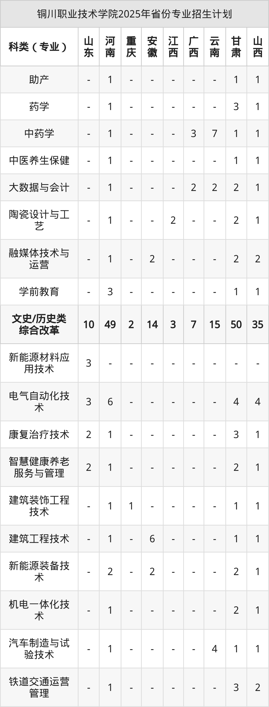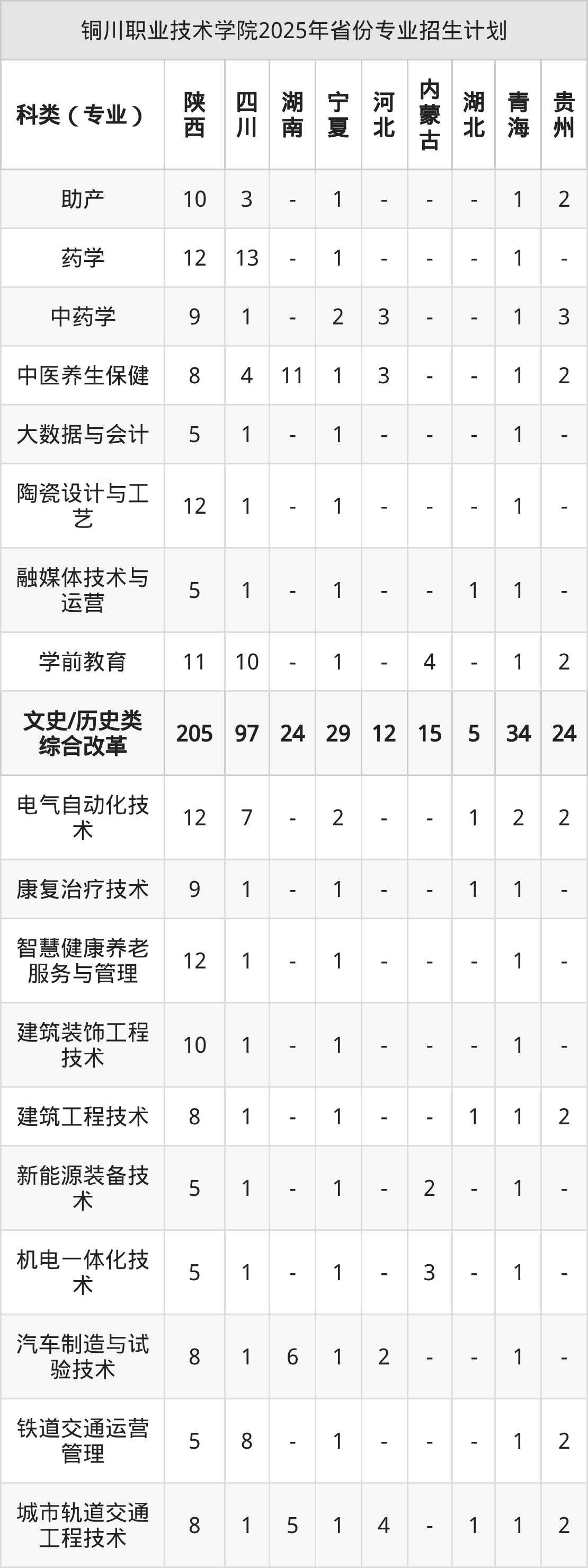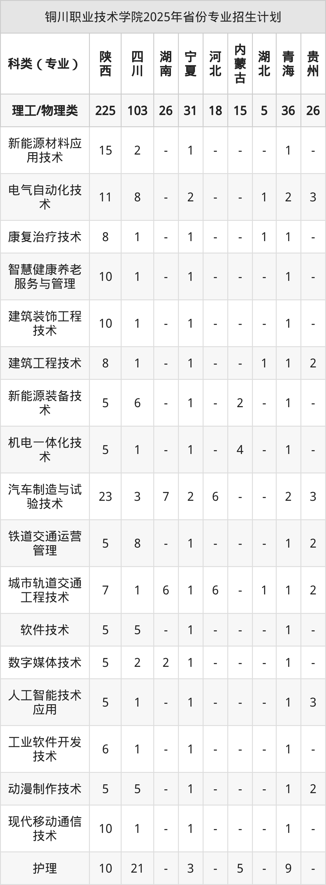 2026年铜川职业技术学院专科招生计划待公布,下面附上2025年数据,暂供参考: