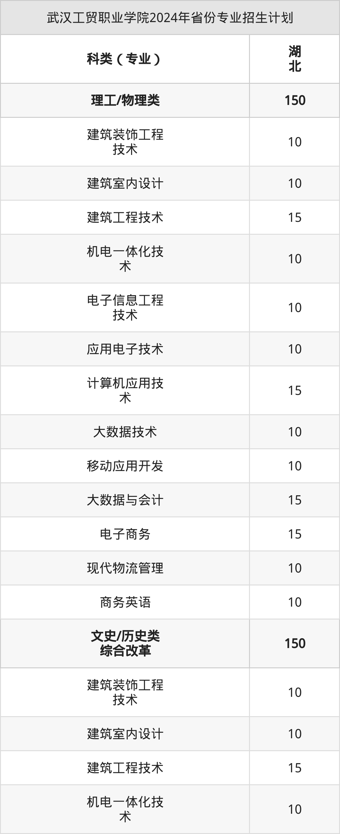 2025年武汉工贸职业学院专科招生计划待公布,下面附上2024年数据,暂供参考: