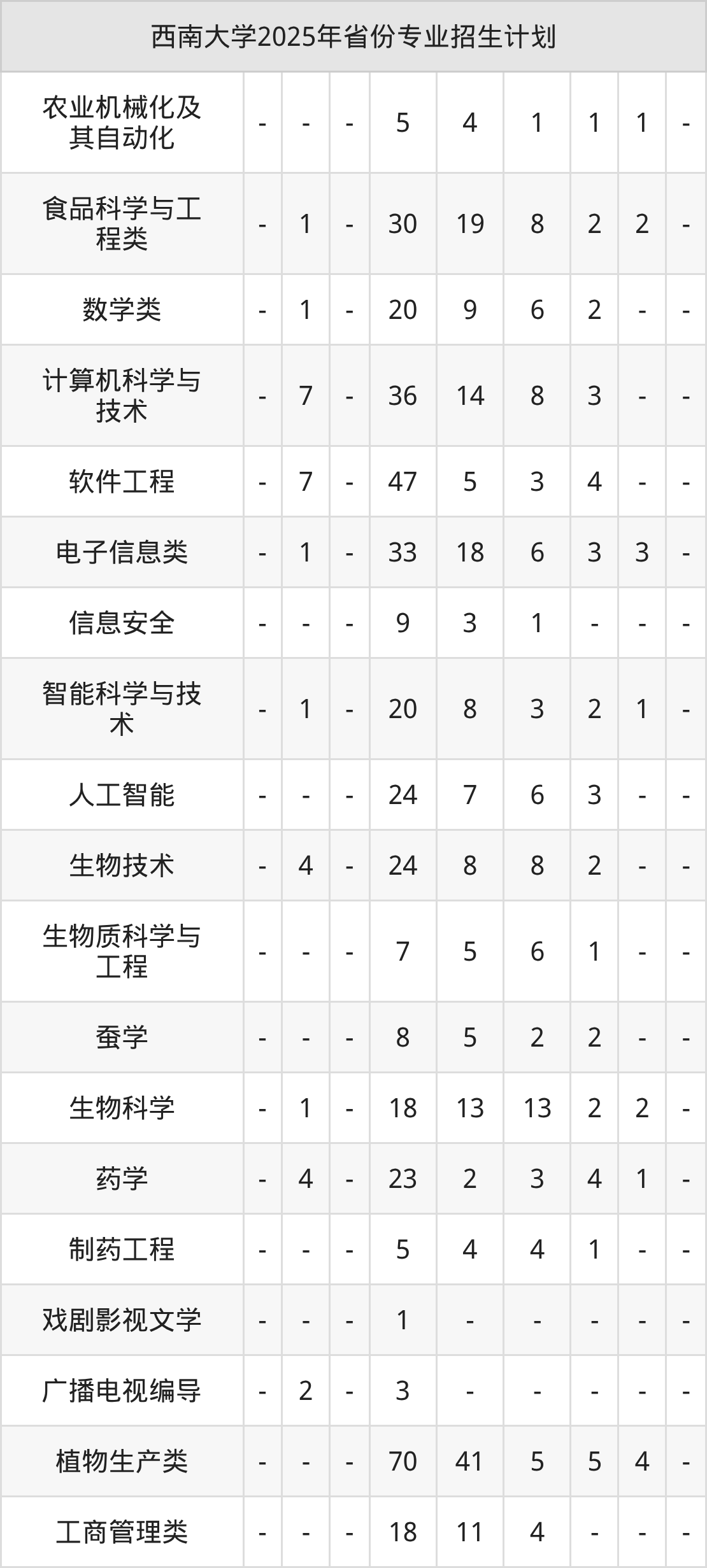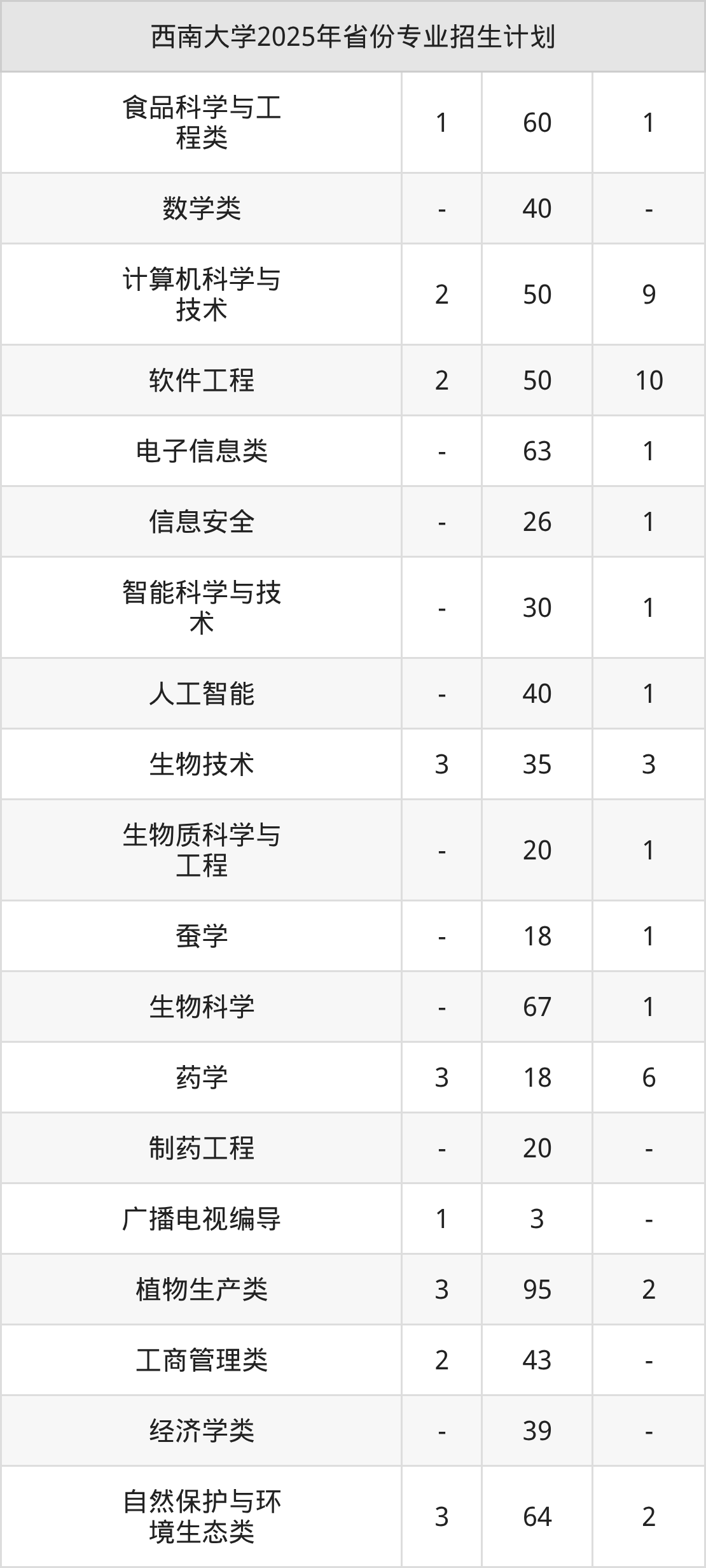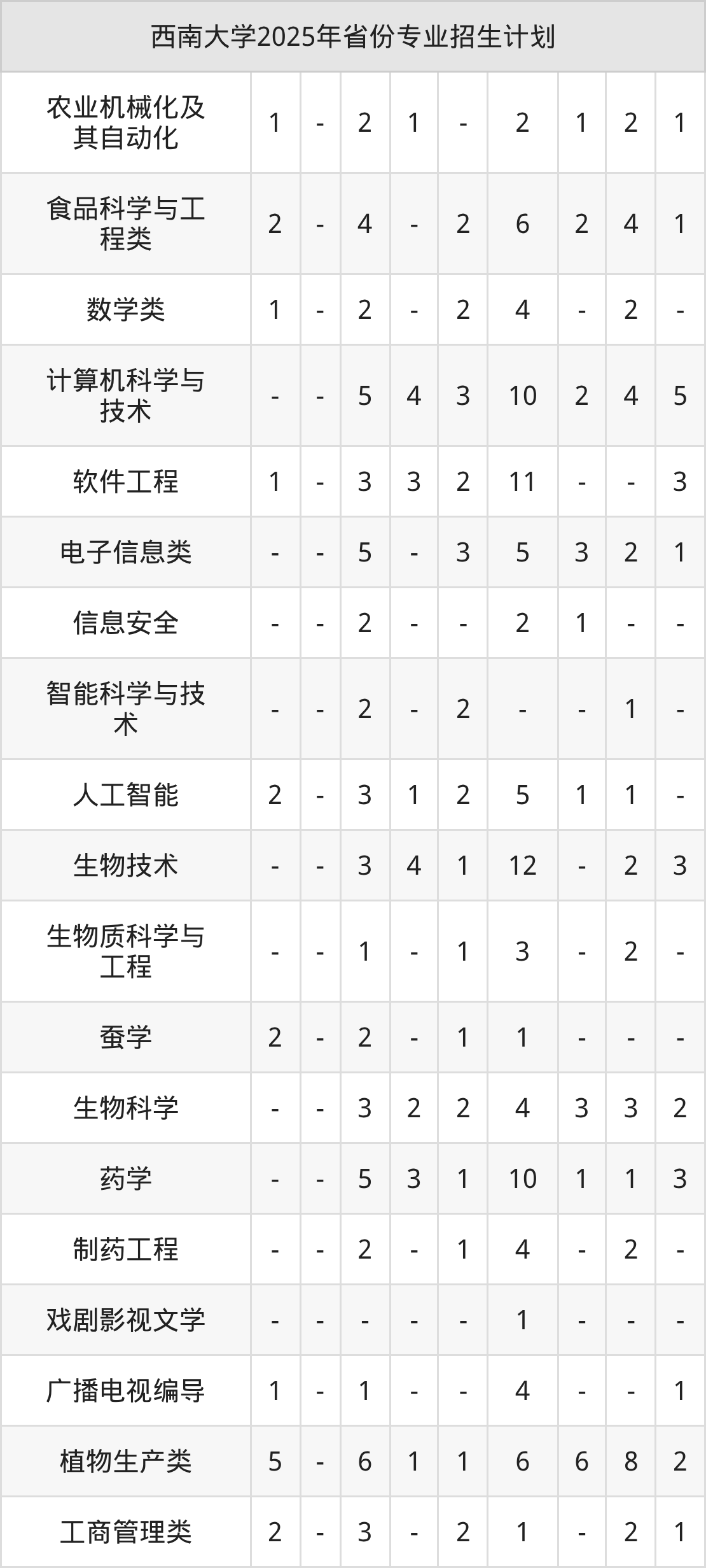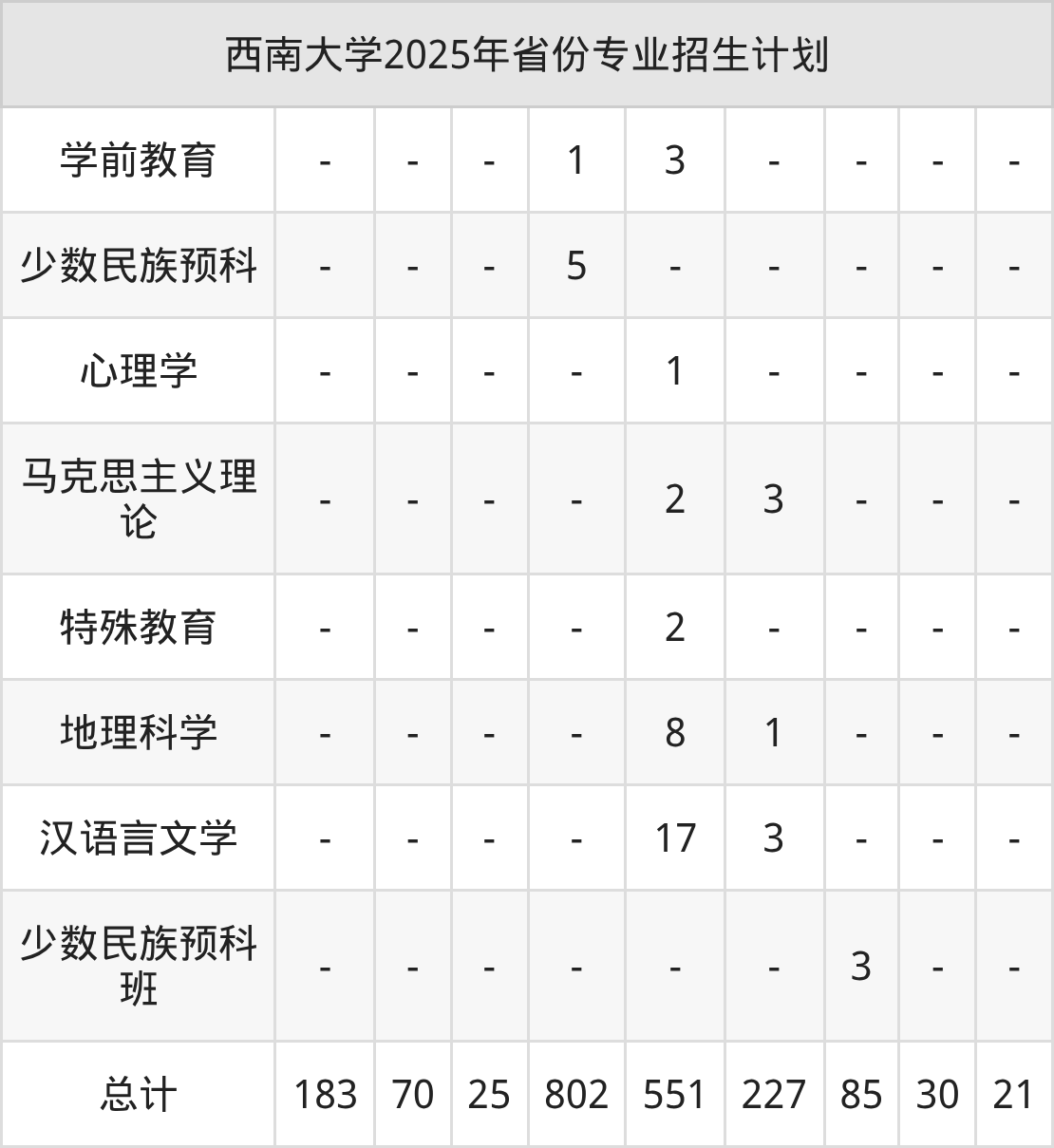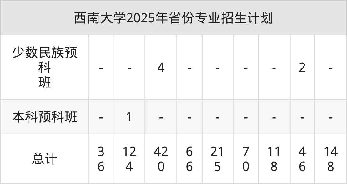 2026年西南大学本科招生计划待公布,下面附上2025年数据,暂供参考: