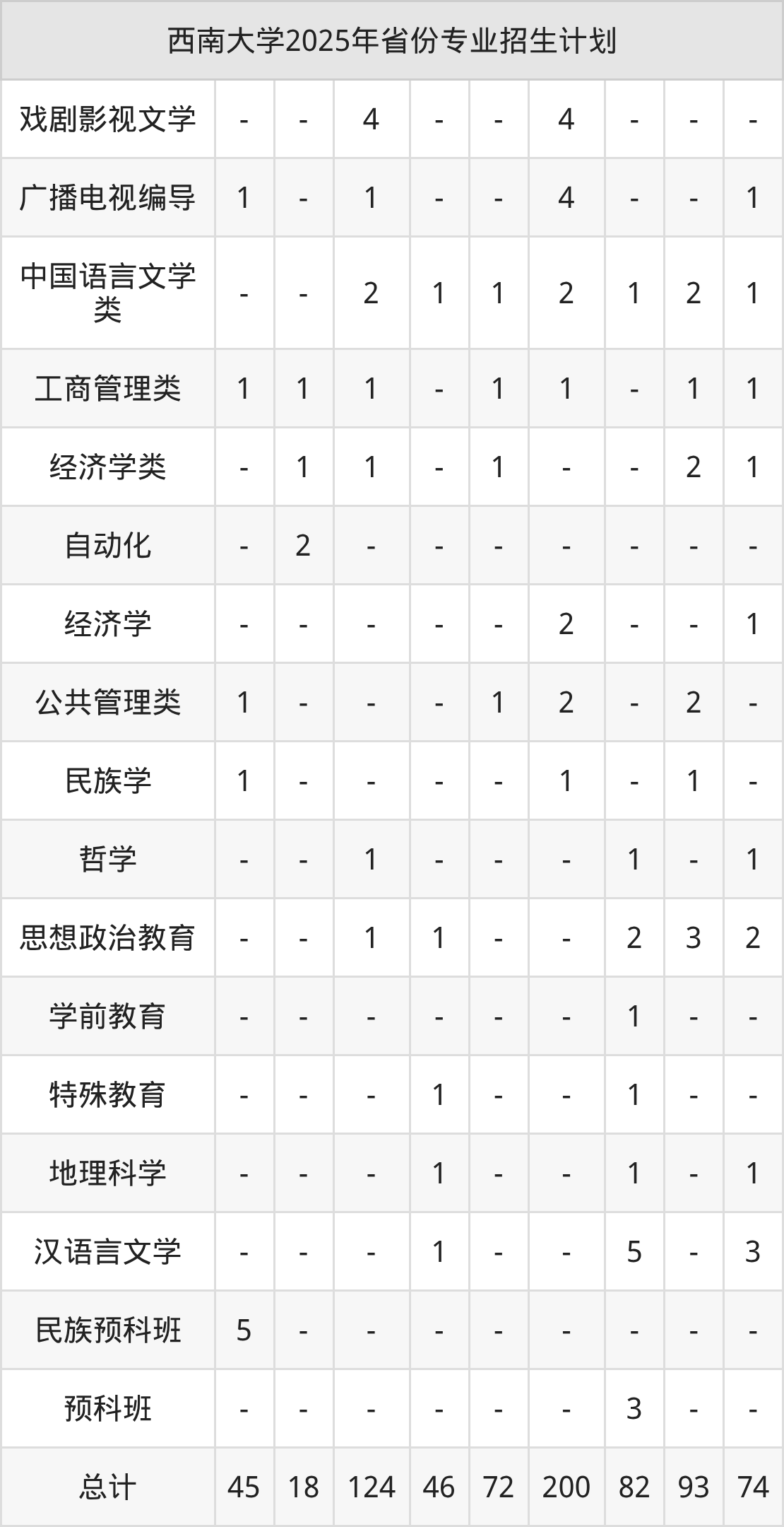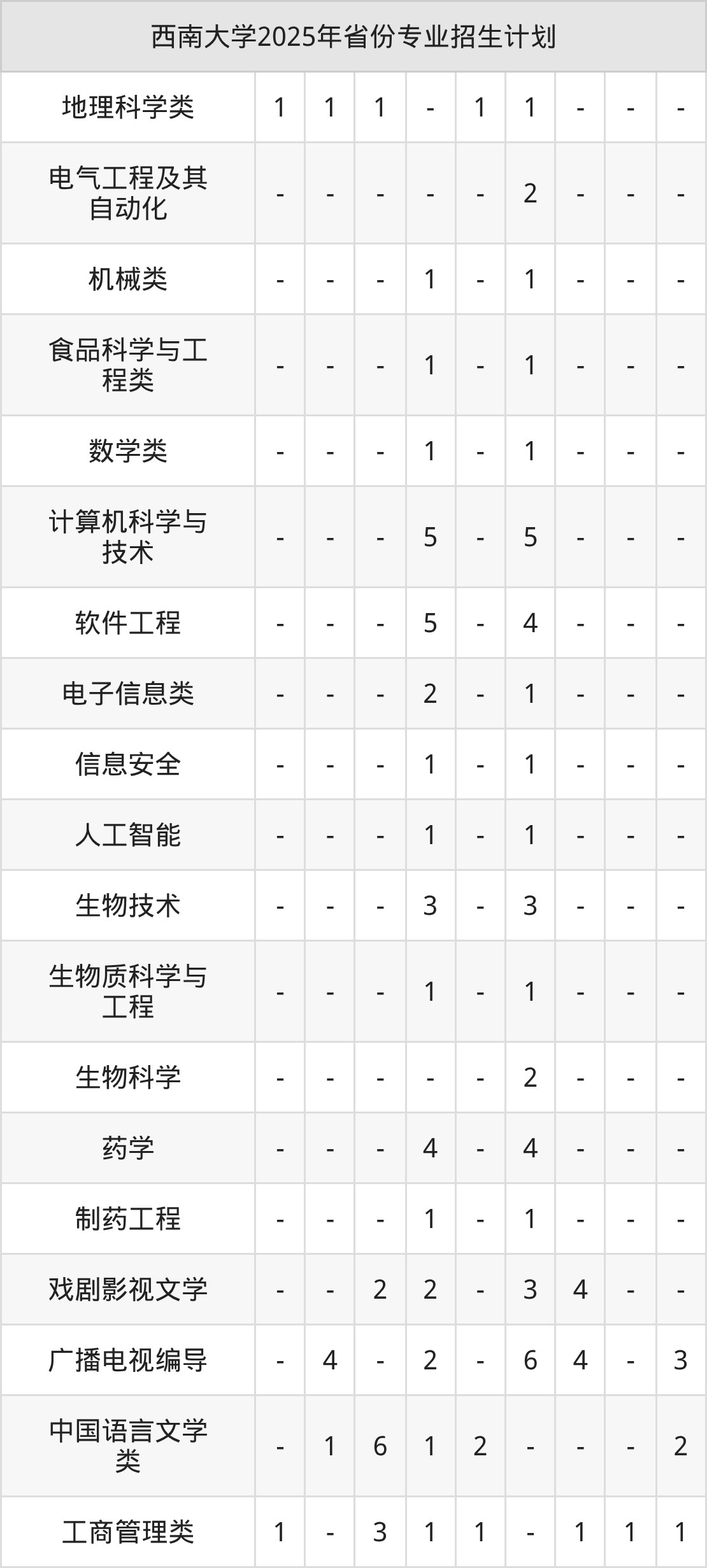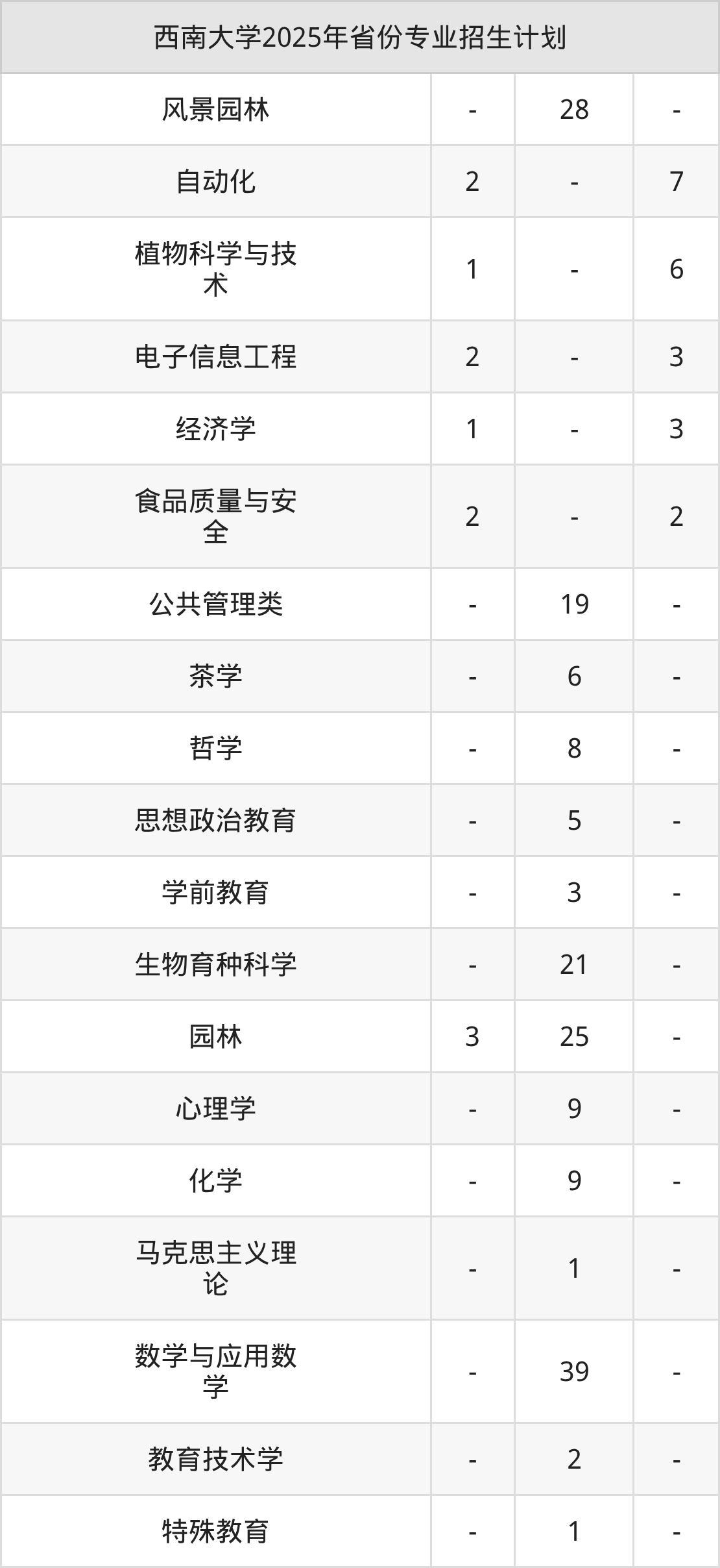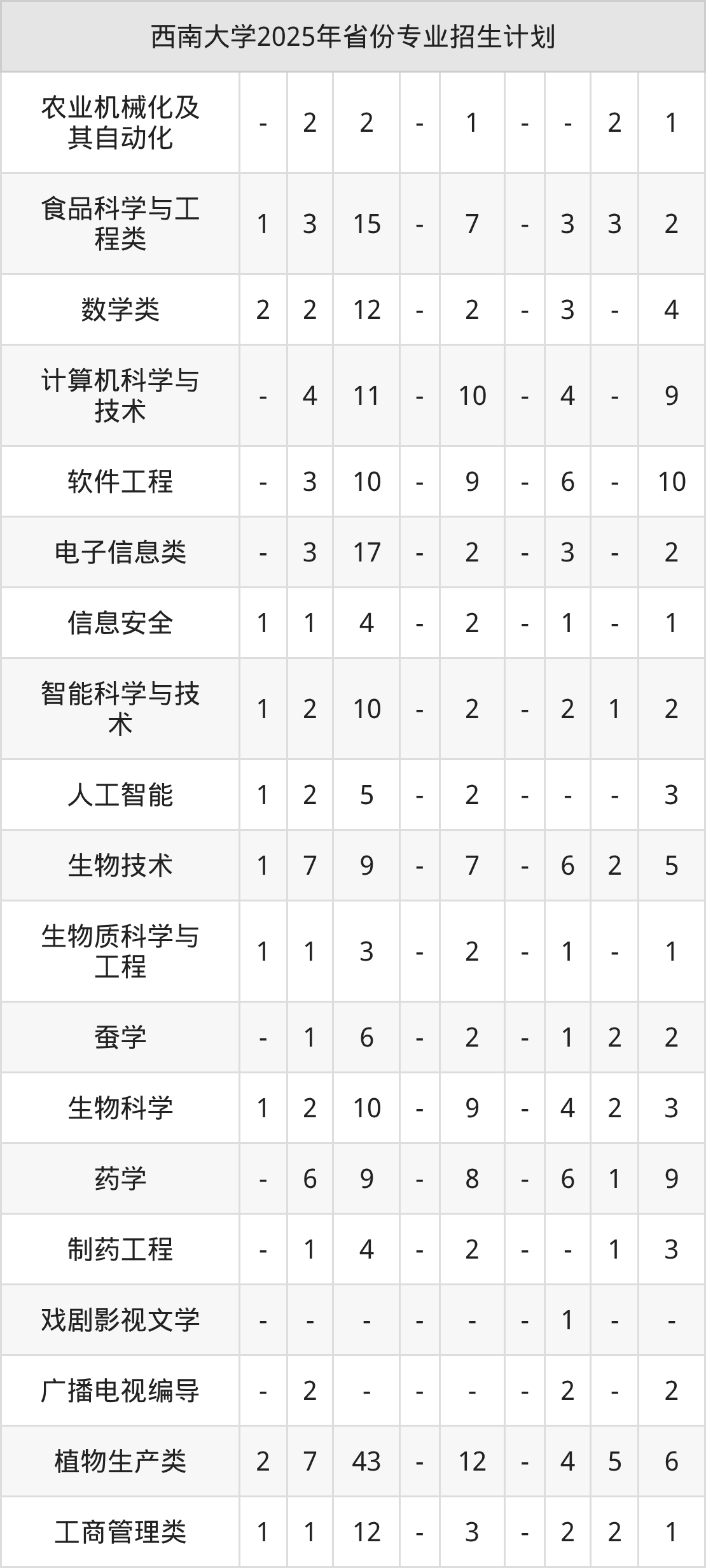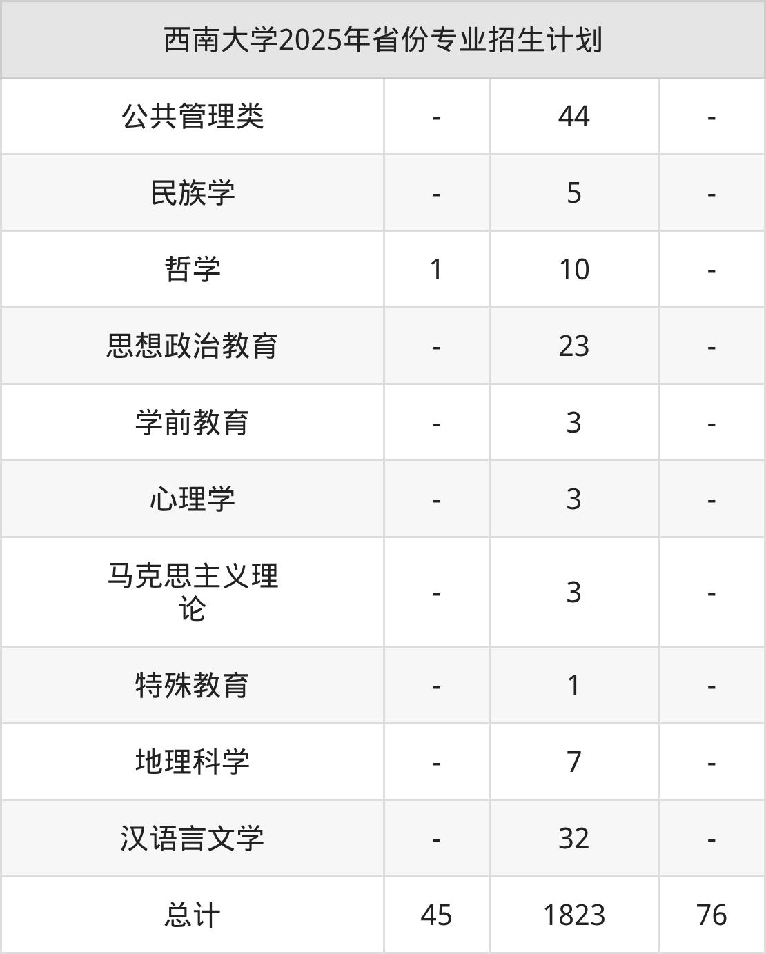2026年西南大学本科招生计划待公布,下面附上2025年数据,暂供参考: