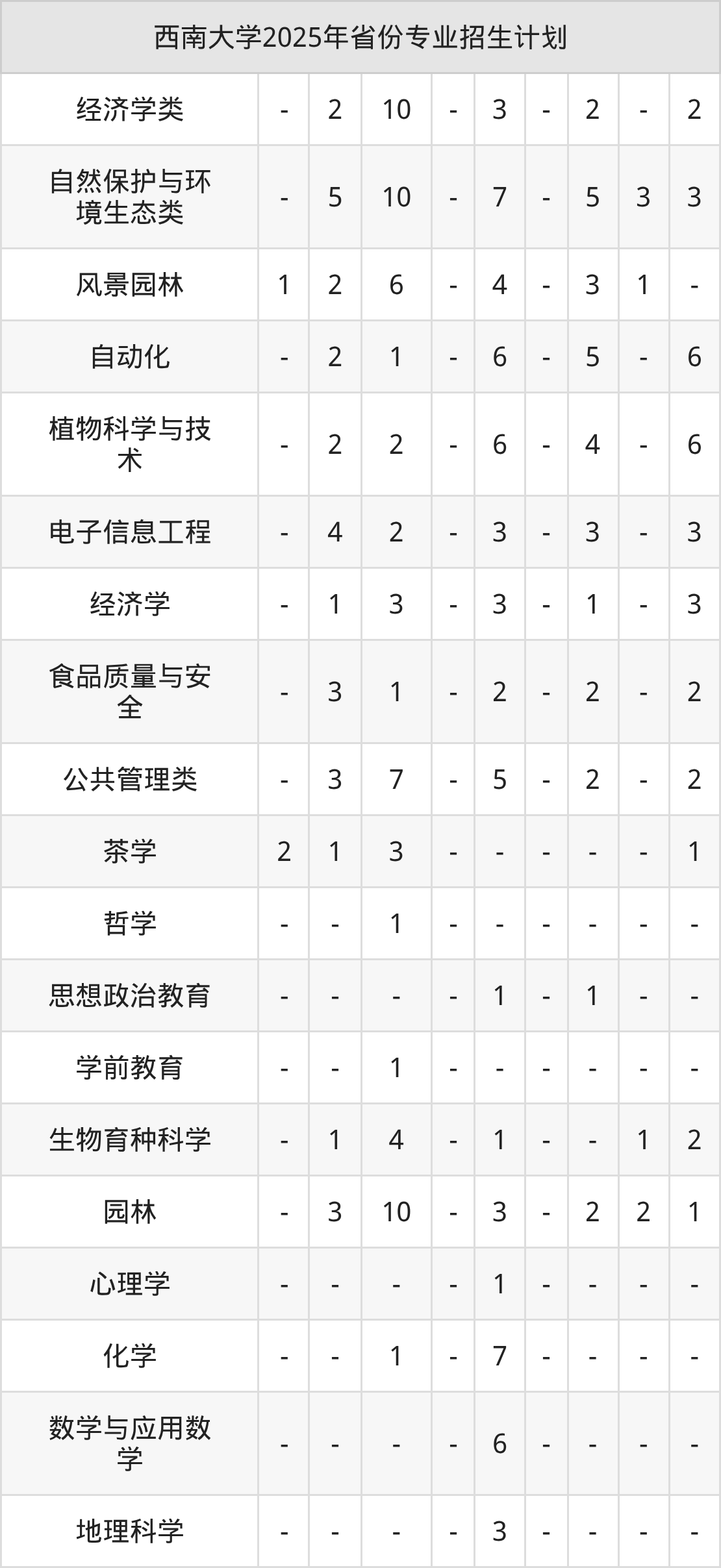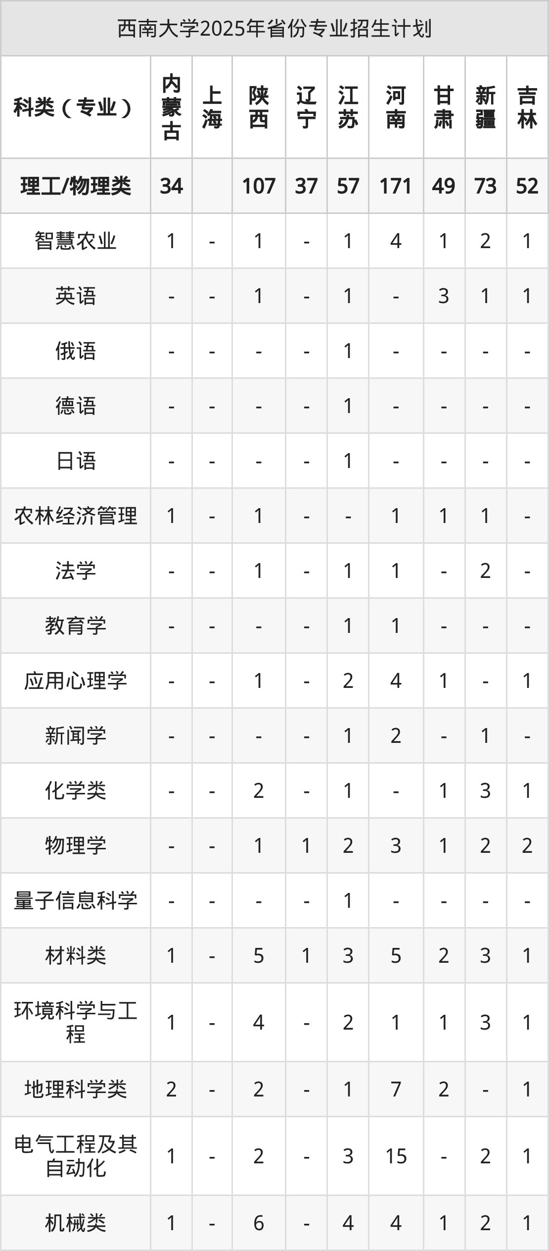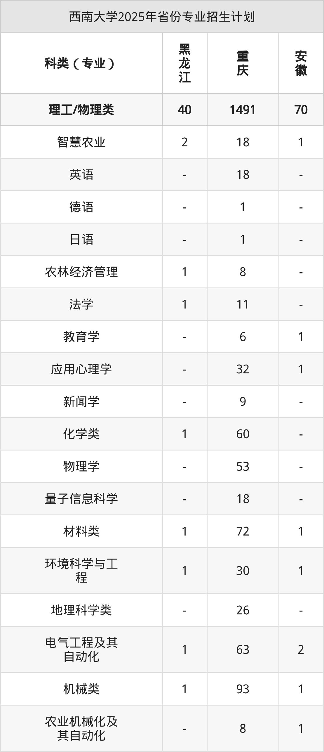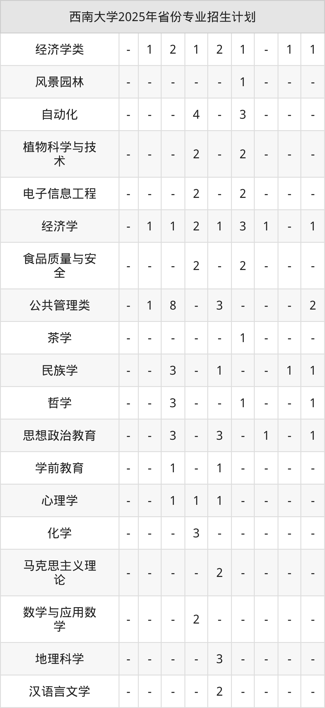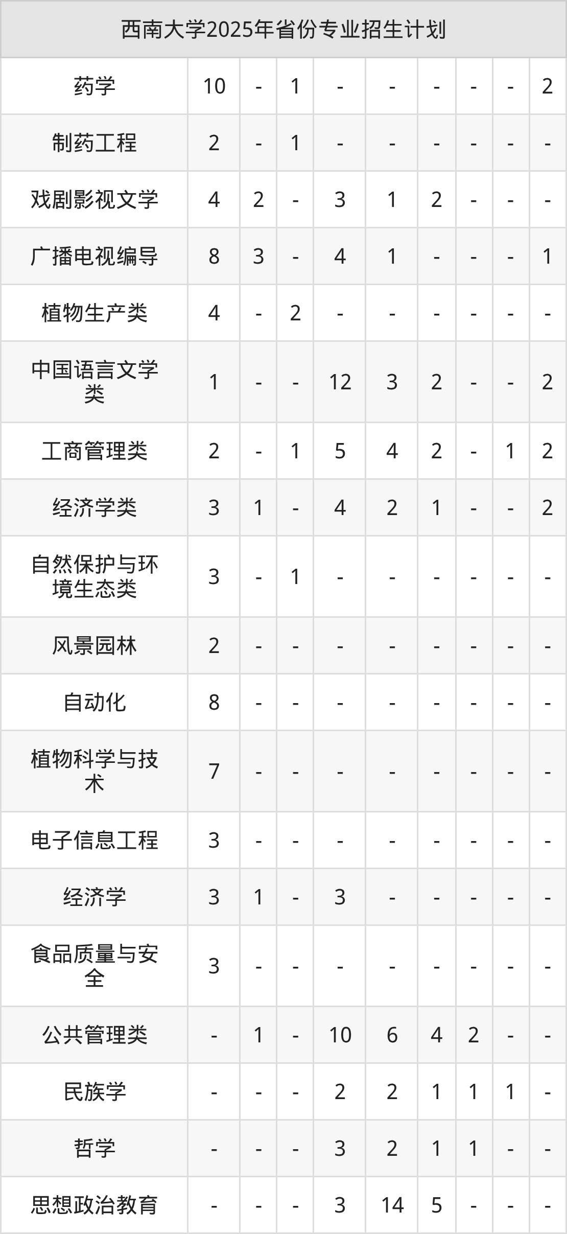 2026年西南大学本科招生计划待公布,下面附上2025年数据,暂供参考: