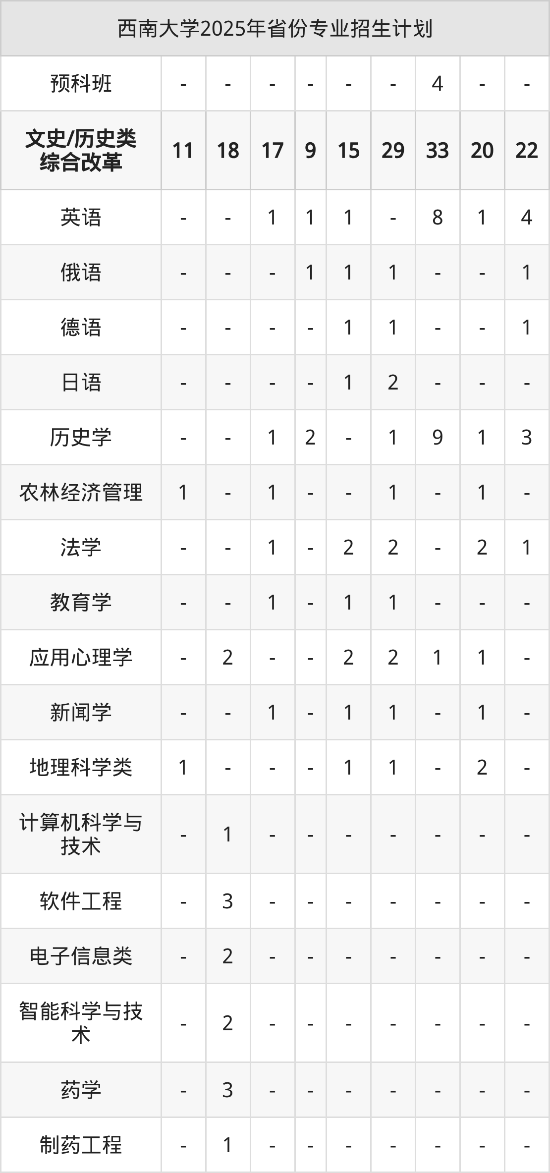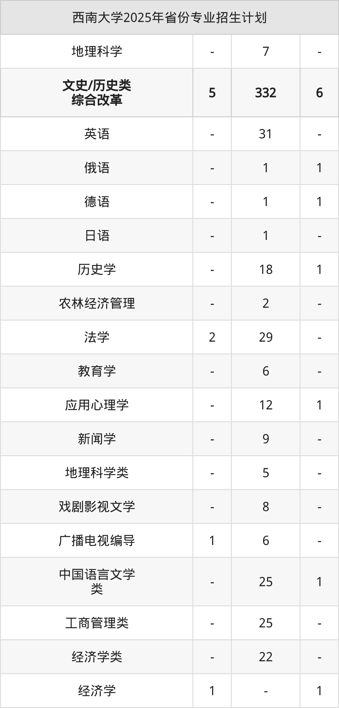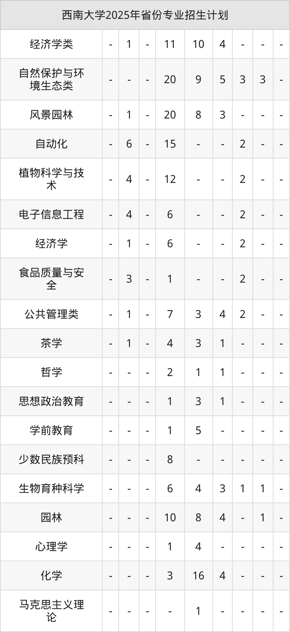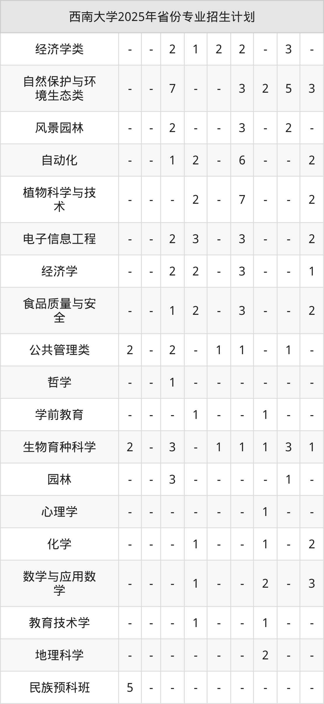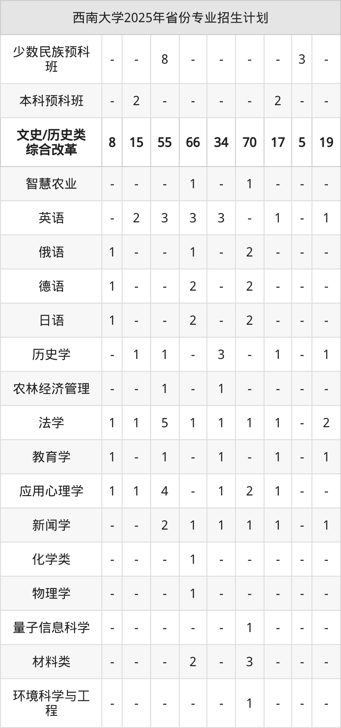 2026年西南大学本科招生计划待公布,下面附上2025年数据,暂供参考: