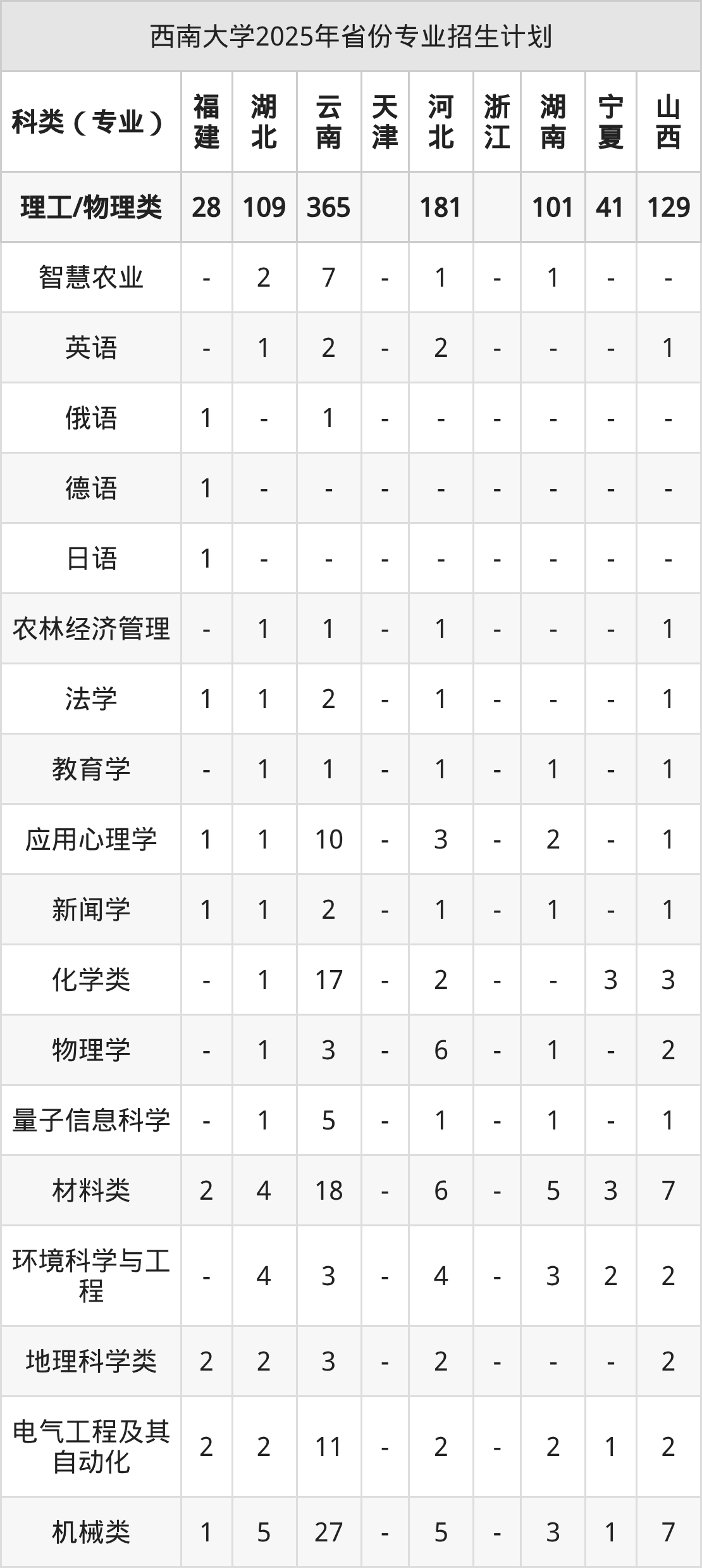 西南大学2026年招生简章预计在6月发布,目前同学们可以先参考2025年招生简章。信息显示,该校计划面向30个地区招收本科生5935人,其中智慧农业专业65人,英语专业159人。