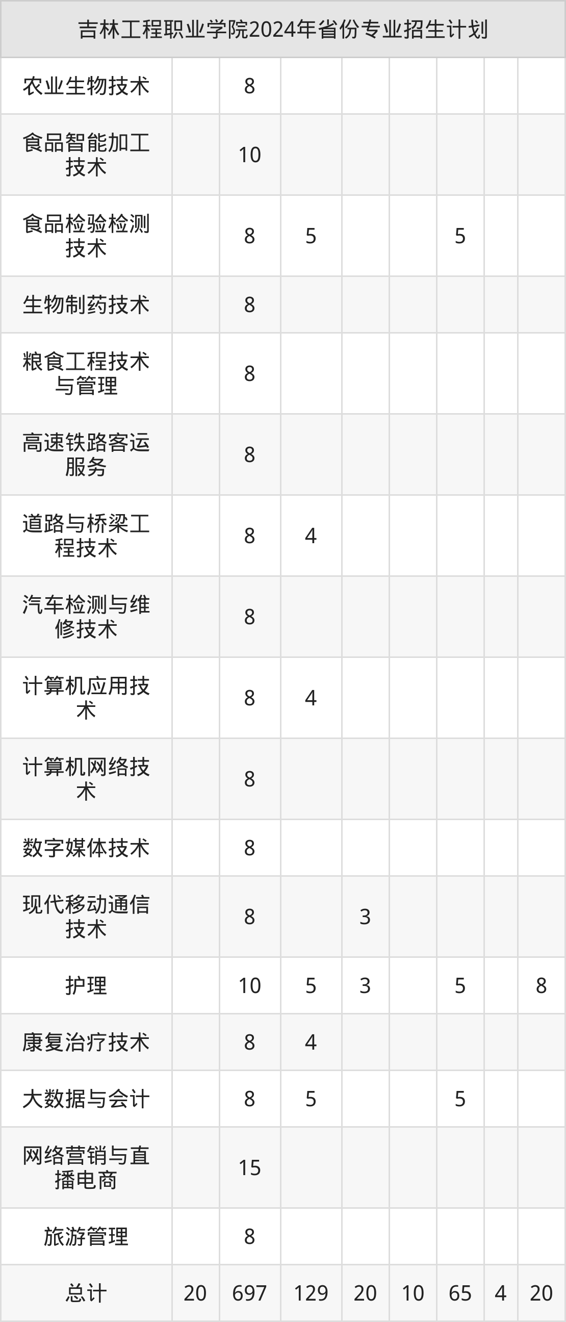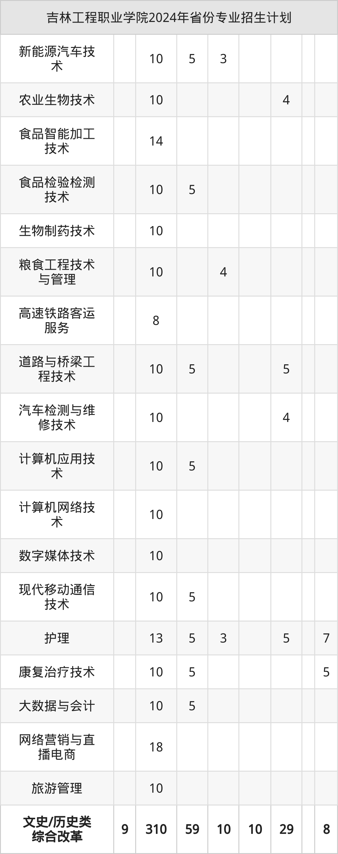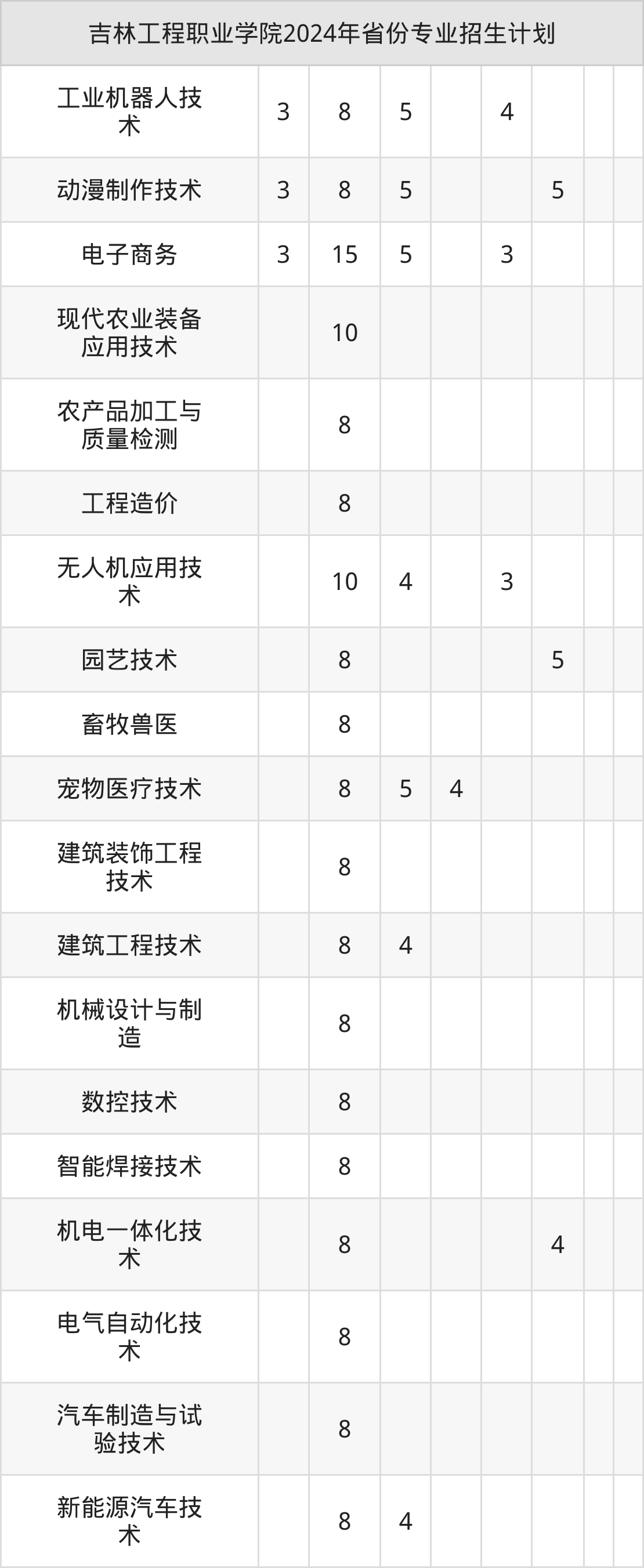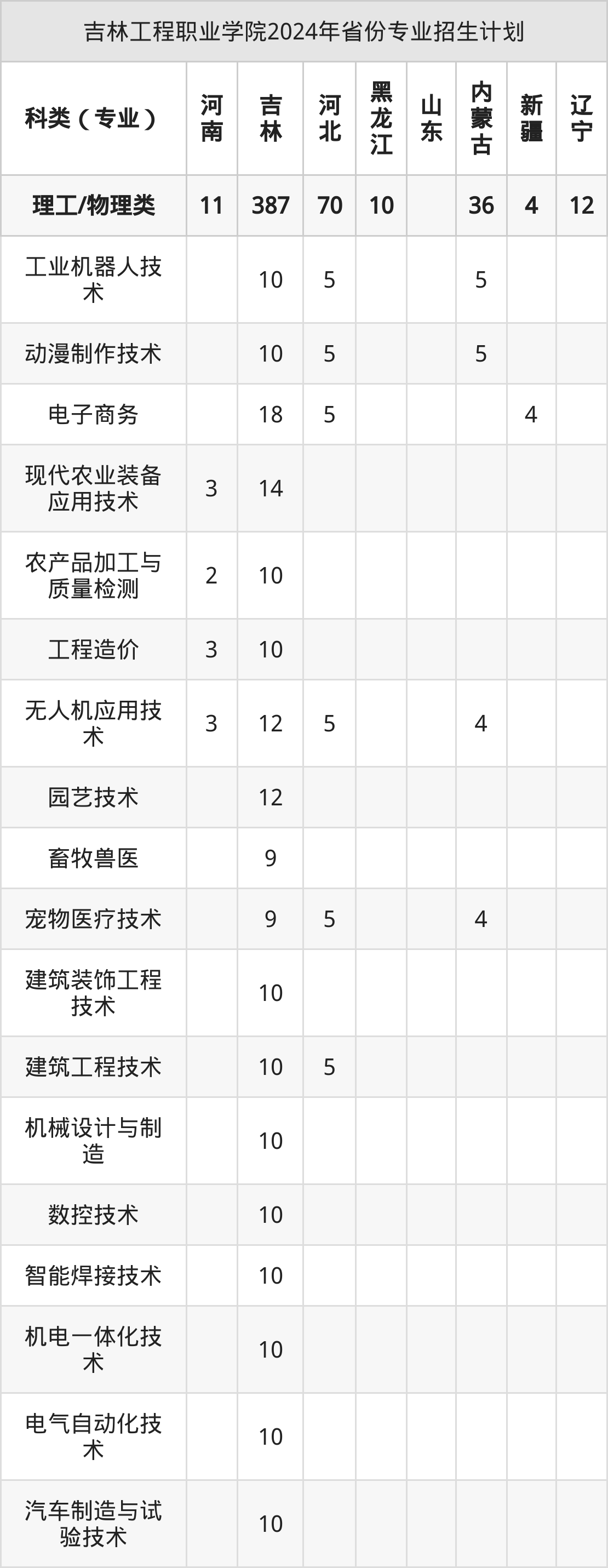 2025年吉林工程职业学院专科招生计划待公布,下面附上2024年数据,暂供参考: