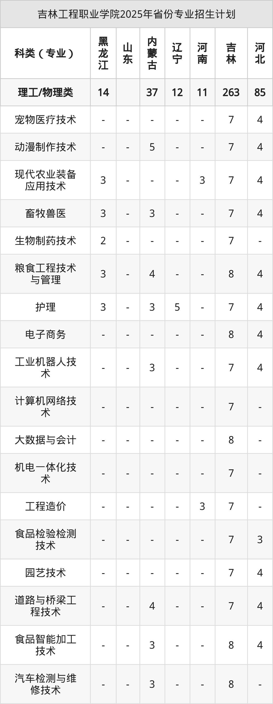 2026年吉林工程职业学院专科招生计划待公布,下面附上2025年数据,暂供参考: