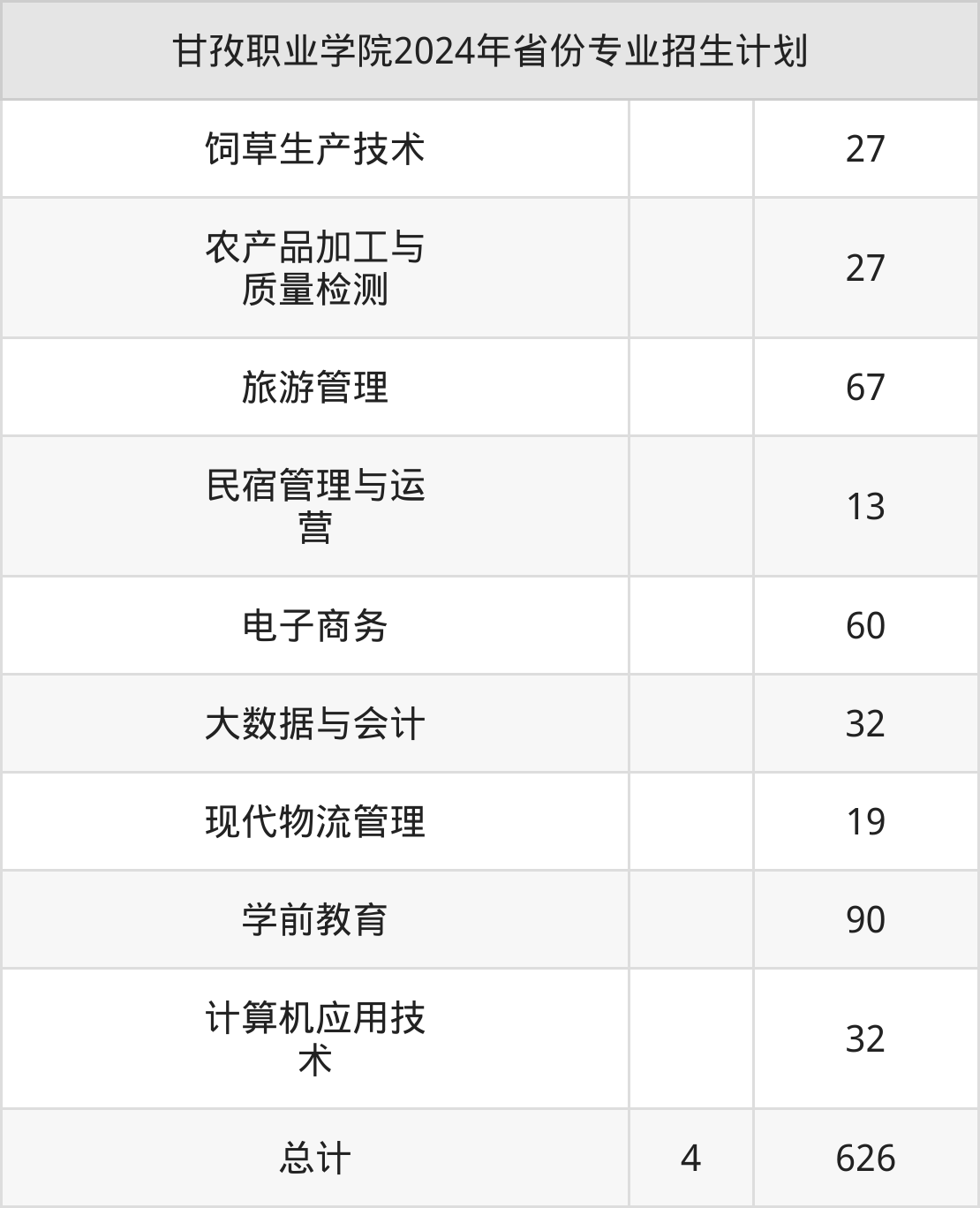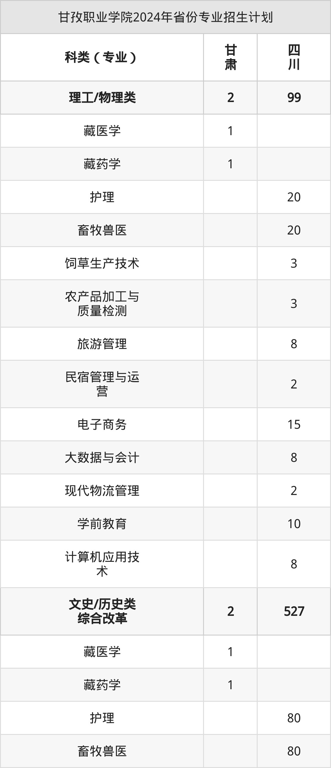 2025年甘孜职业学院专科招生计划待公布,下面附上2024年数据,暂供参考: