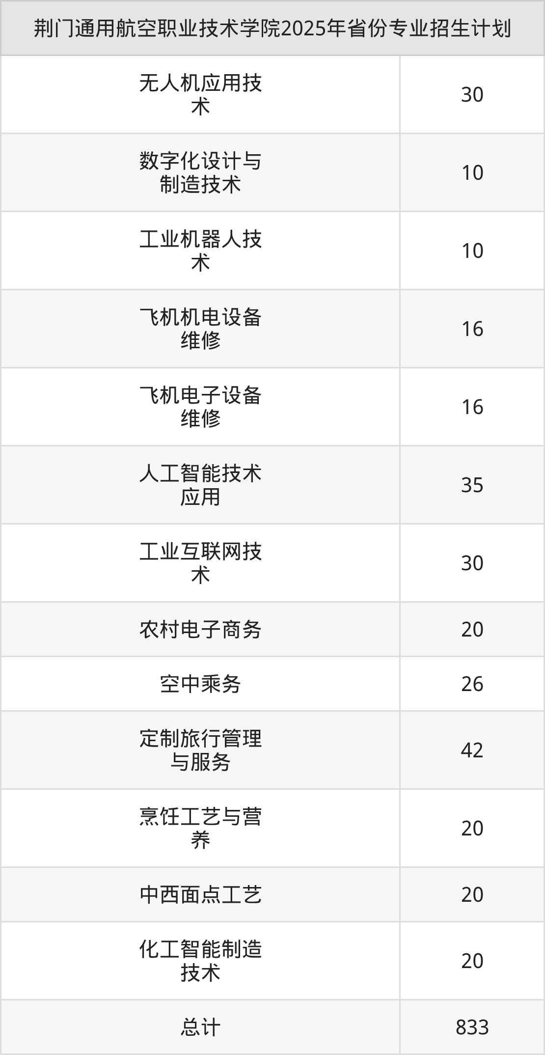 2026年荆门通用航空职业技术学院专科招生计划待公布,下面附上2025年数据,暂供参考: