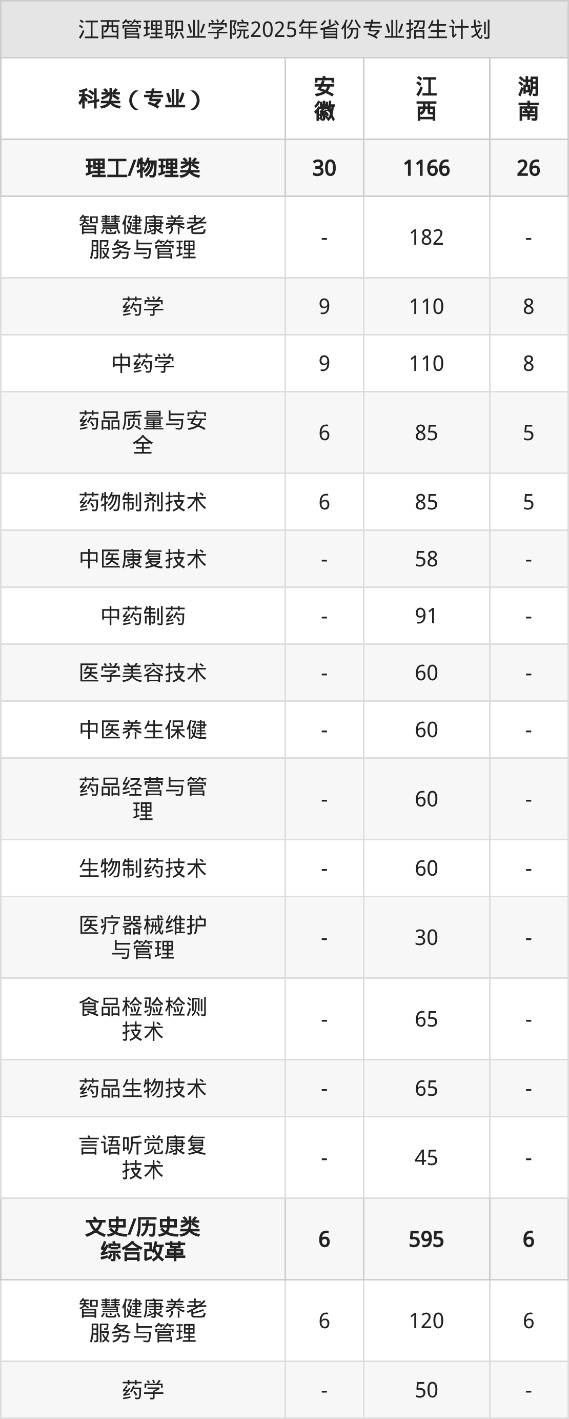 2026年江西管理职业学院专科招生计划待公布,下面附上2025年数据,暂供参考: