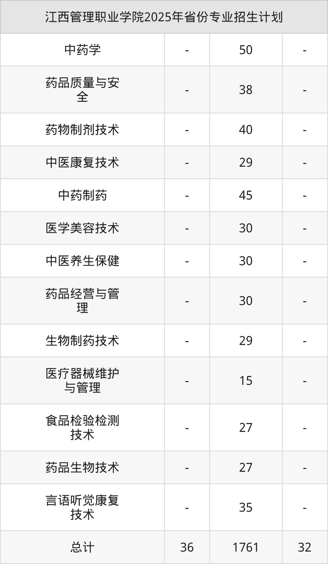 江西管理职业学院2026年招生简章预计在6月发布,目前同学们可以先参考2025年招生简章。信息显示,该校计划面向3个地区招收专科生1829人,其中药学专业177人,药物制剂技术专业136人。