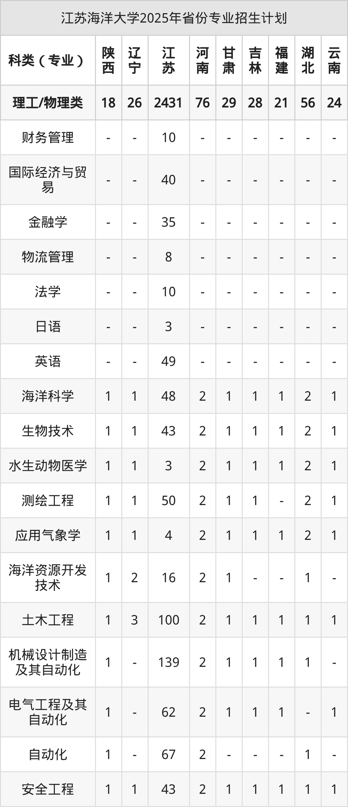 2026年江苏海洋大学本科招生计划待公布,下面附上2025年数据,暂供参考: