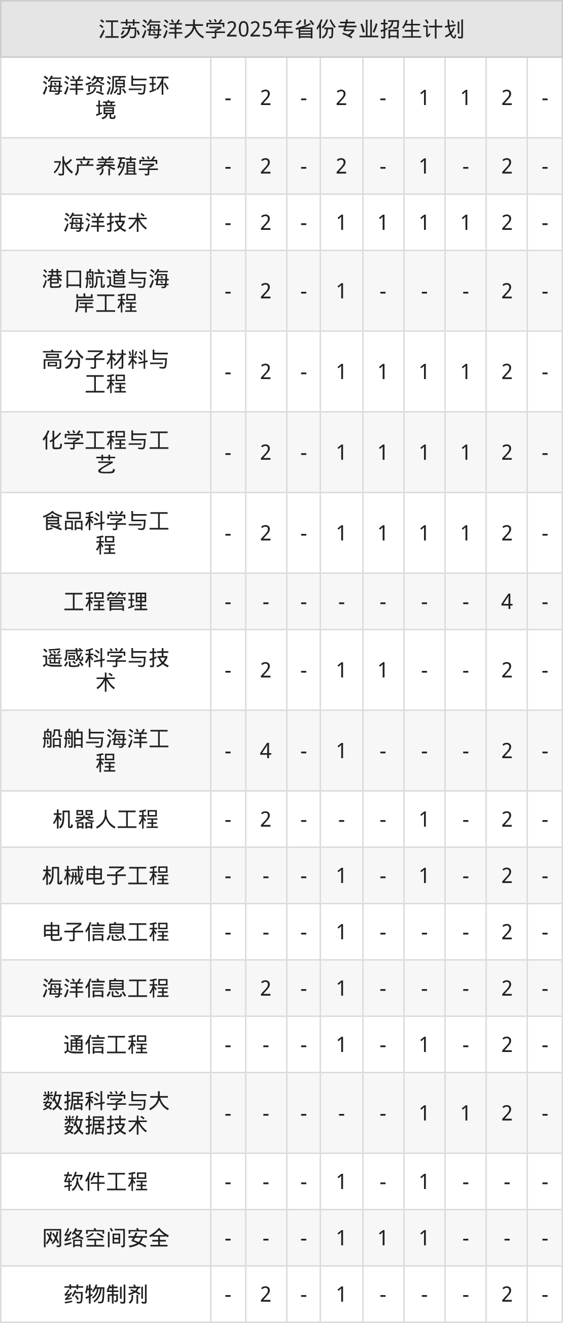 | 江苏海洋大学本科招生专业 | |