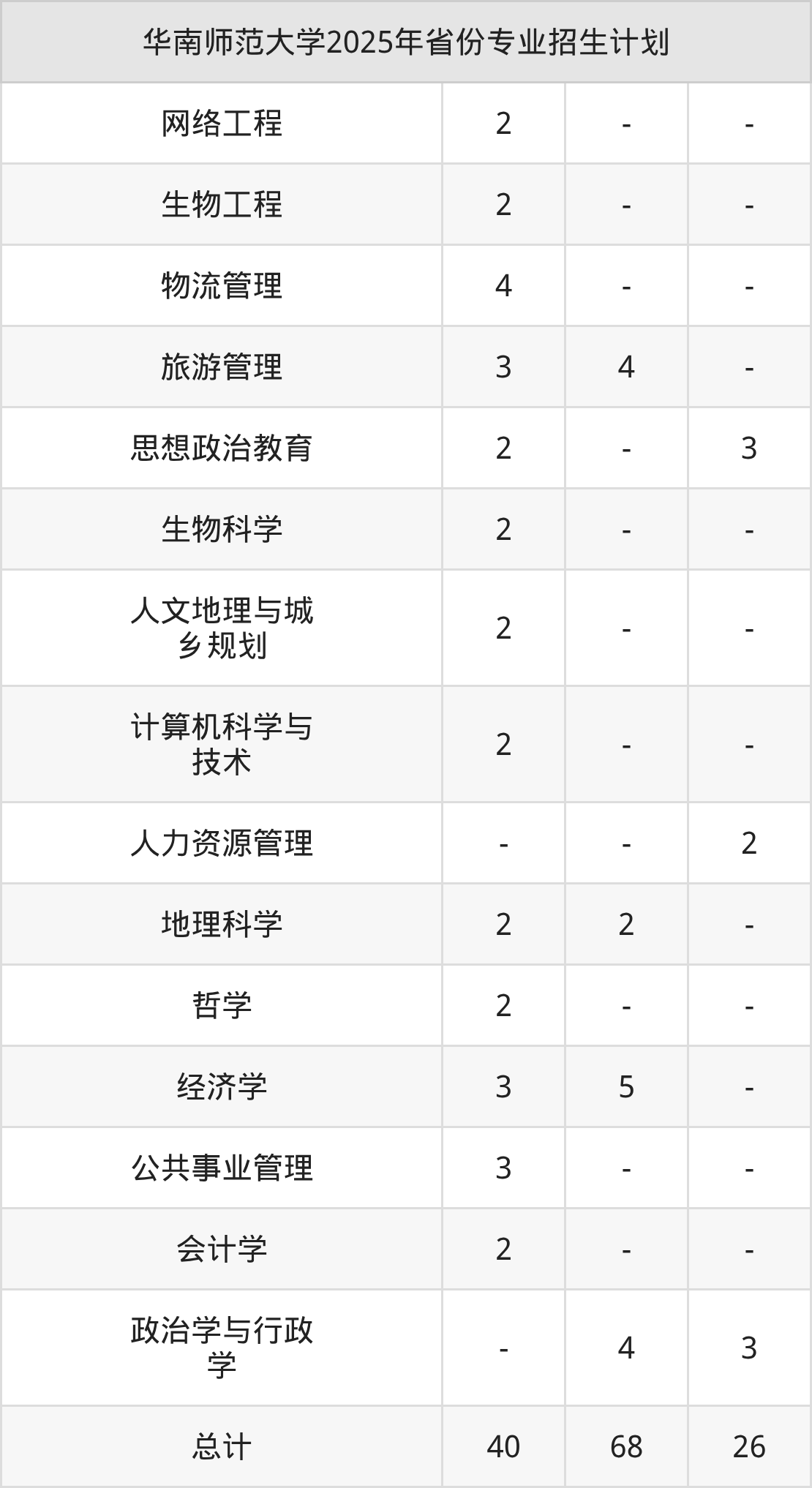2026年华南师范大学本科招生计划待公布,下面附上2025年数据,暂供参考: