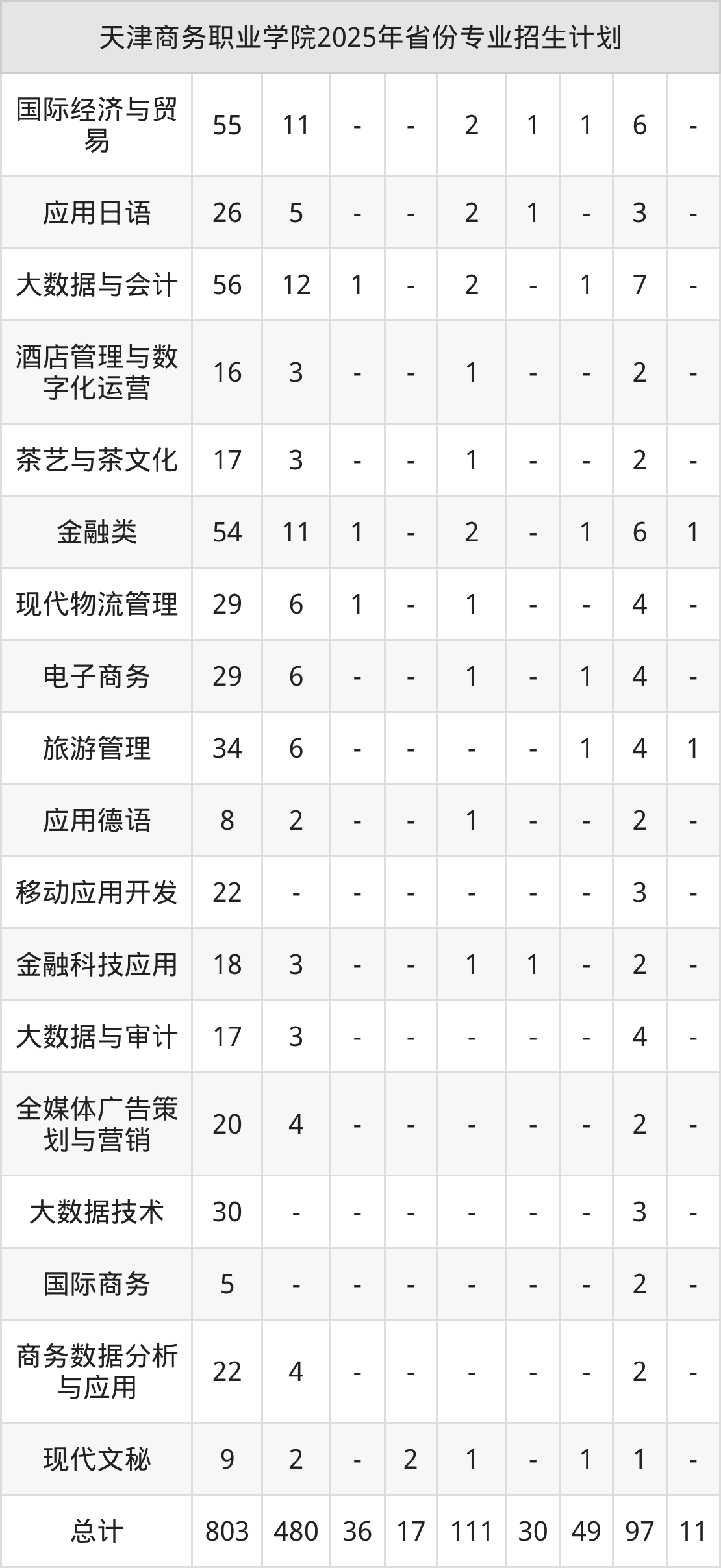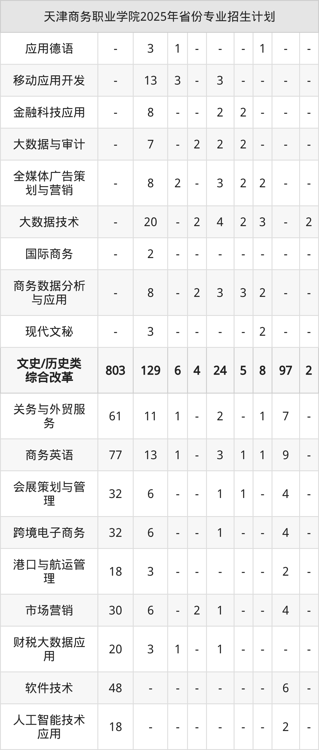 2026年天津商务职业学院专科招生计划待公布,下面附上2025年数据,暂供参考: