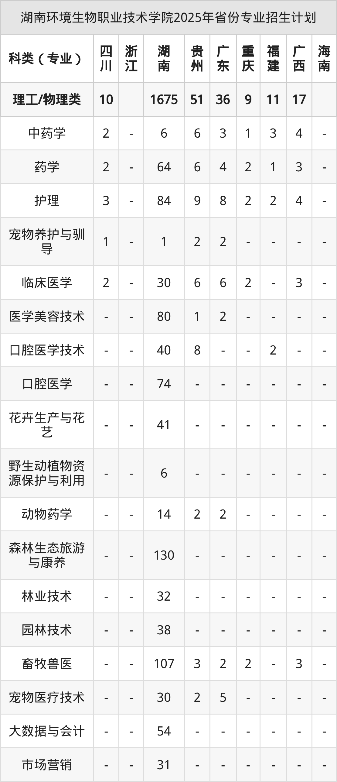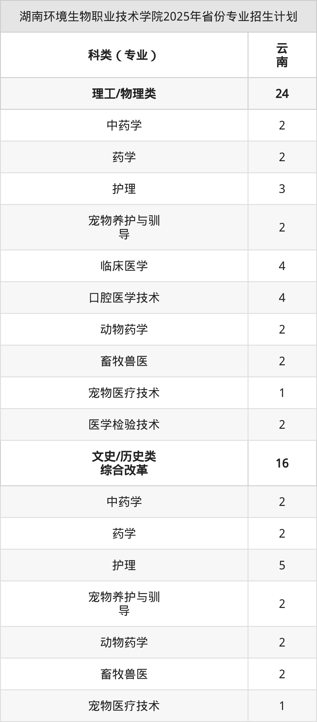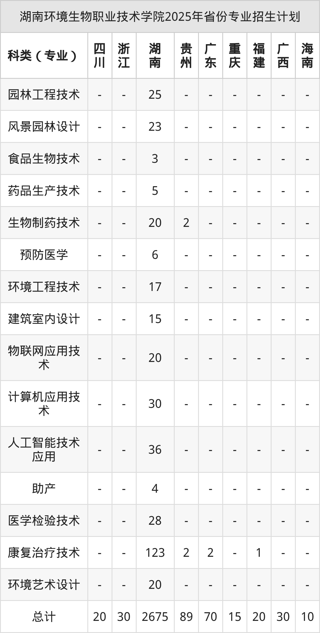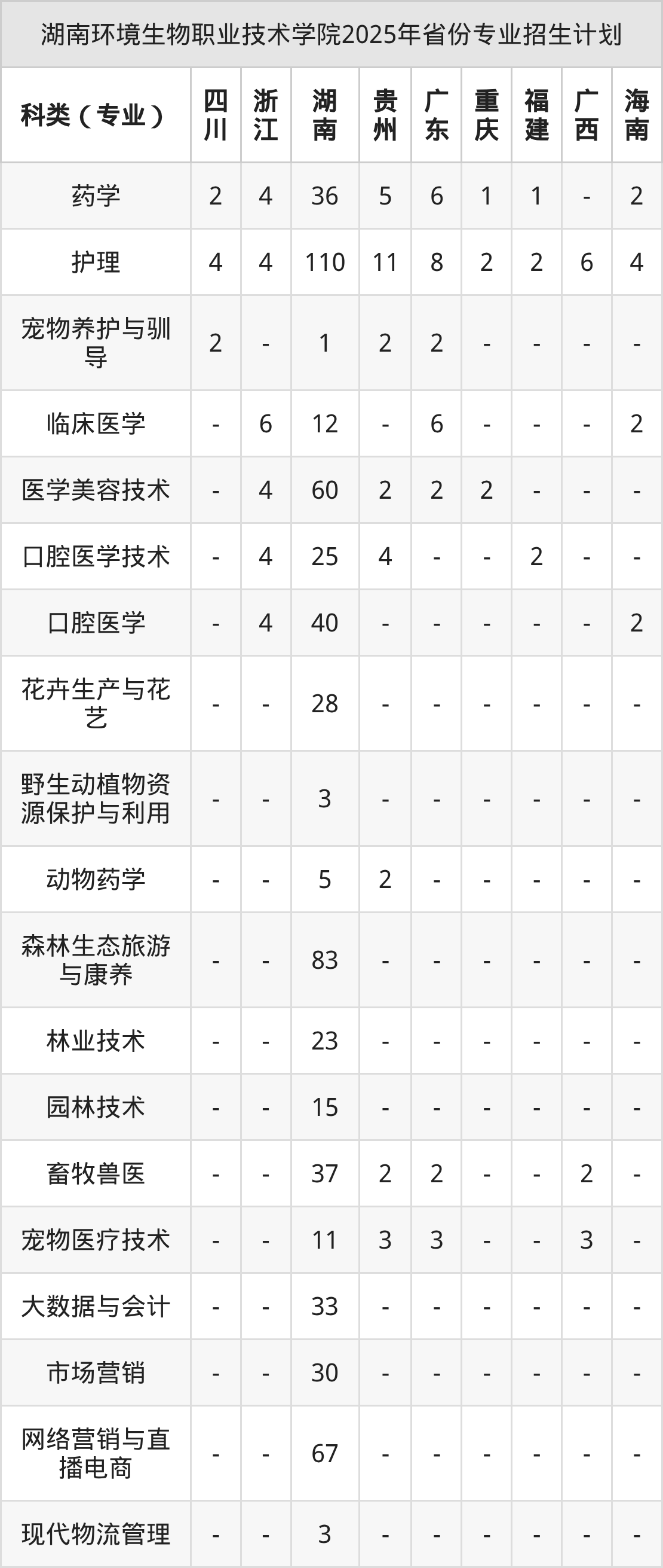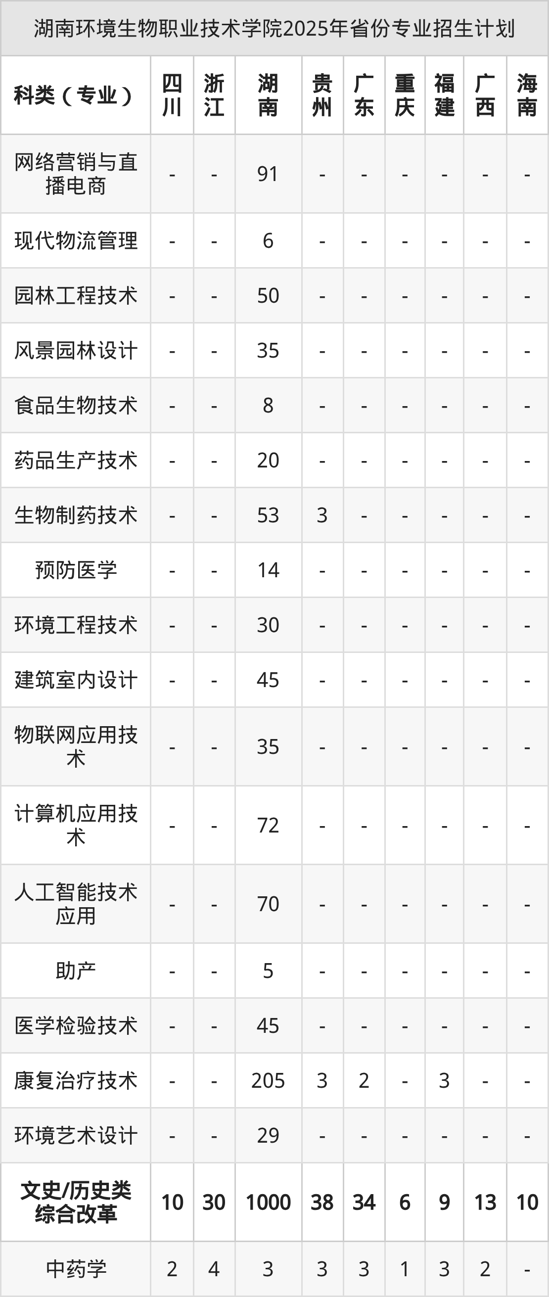 2026年湖南环境生物职业技术学院专科招生计划待公布,下面附上2025年数据,暂供参考:
