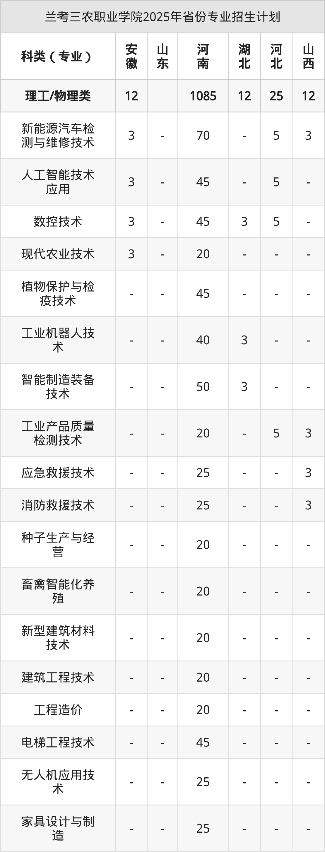 2026年兰考三农职业学院专科招生计划待公布,下面附上2025年数据,暂供参考: