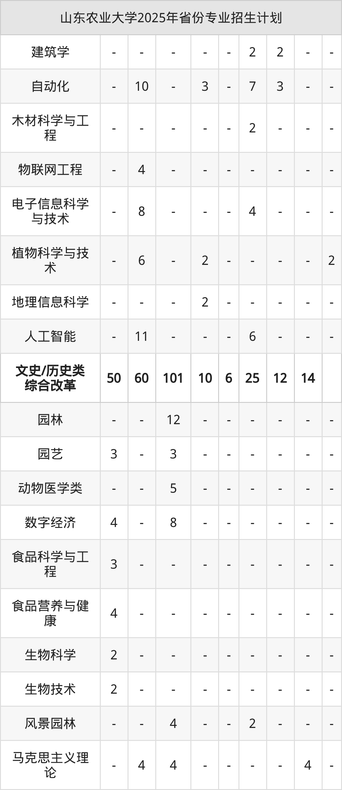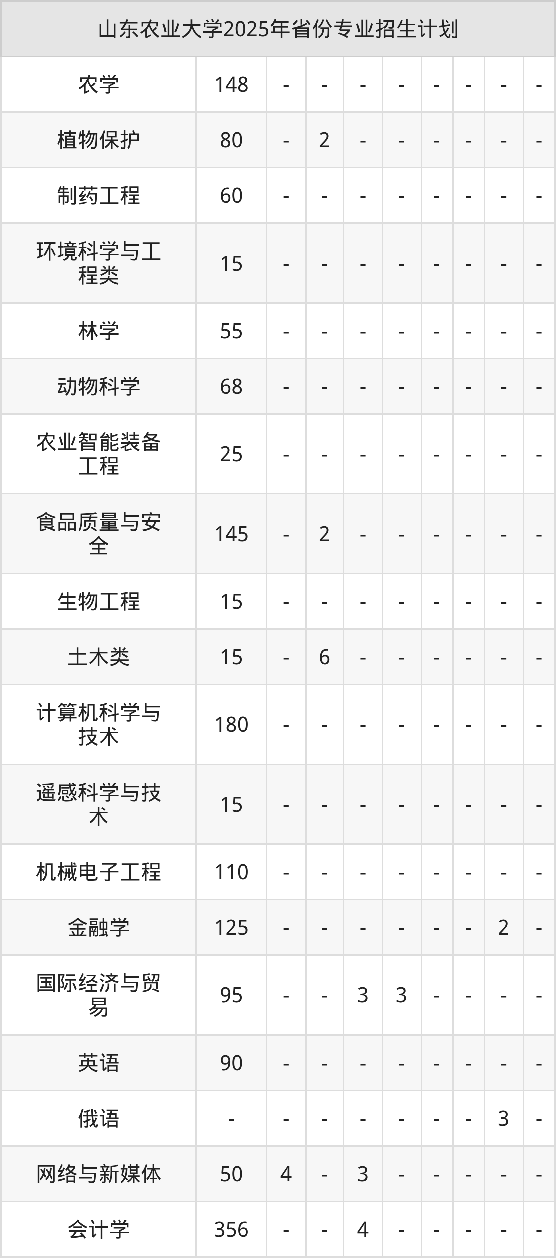 2026年山东农业大学本科招生计划待公布,下面附上2025年数据,暂供参考: