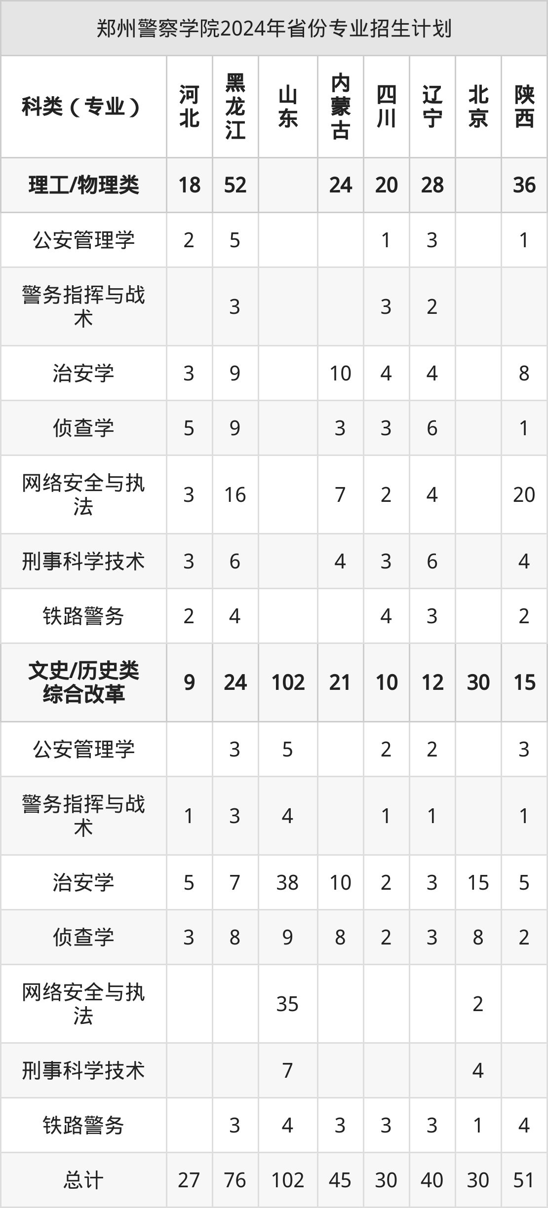 2025年郑州警察学院本科招生计划待公布,下面附上2024年数据,暂供参考: