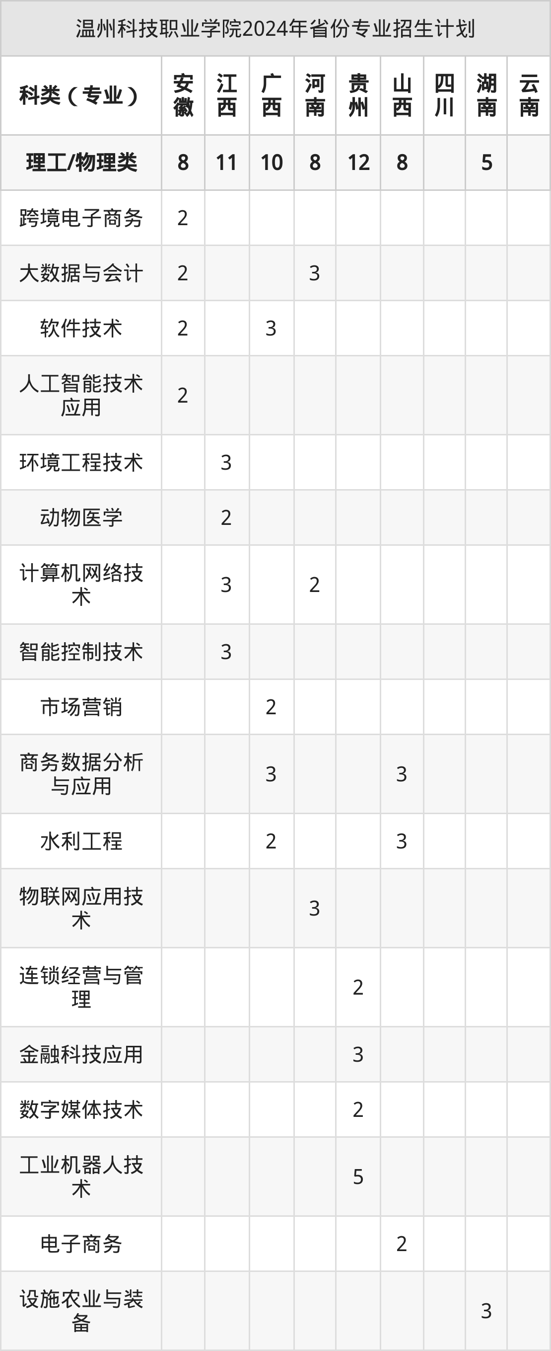 2025年温州科技职业学院专科招生计划待公布,下面附上2024年数据,暂供参考: