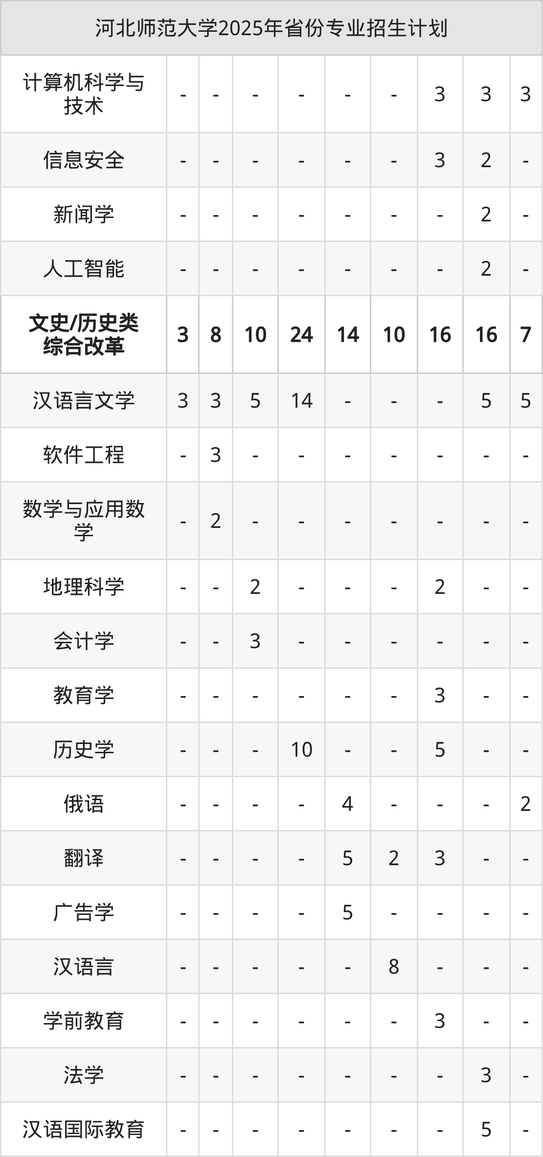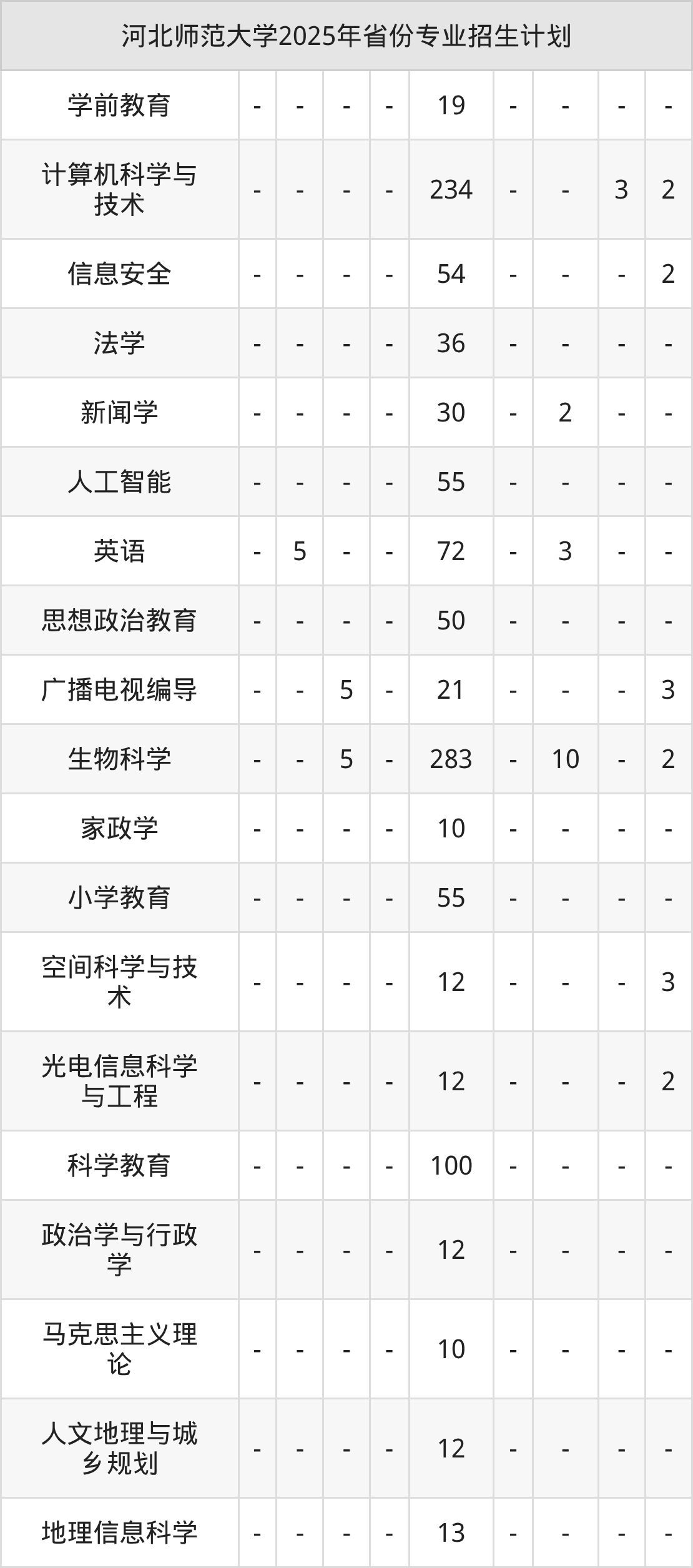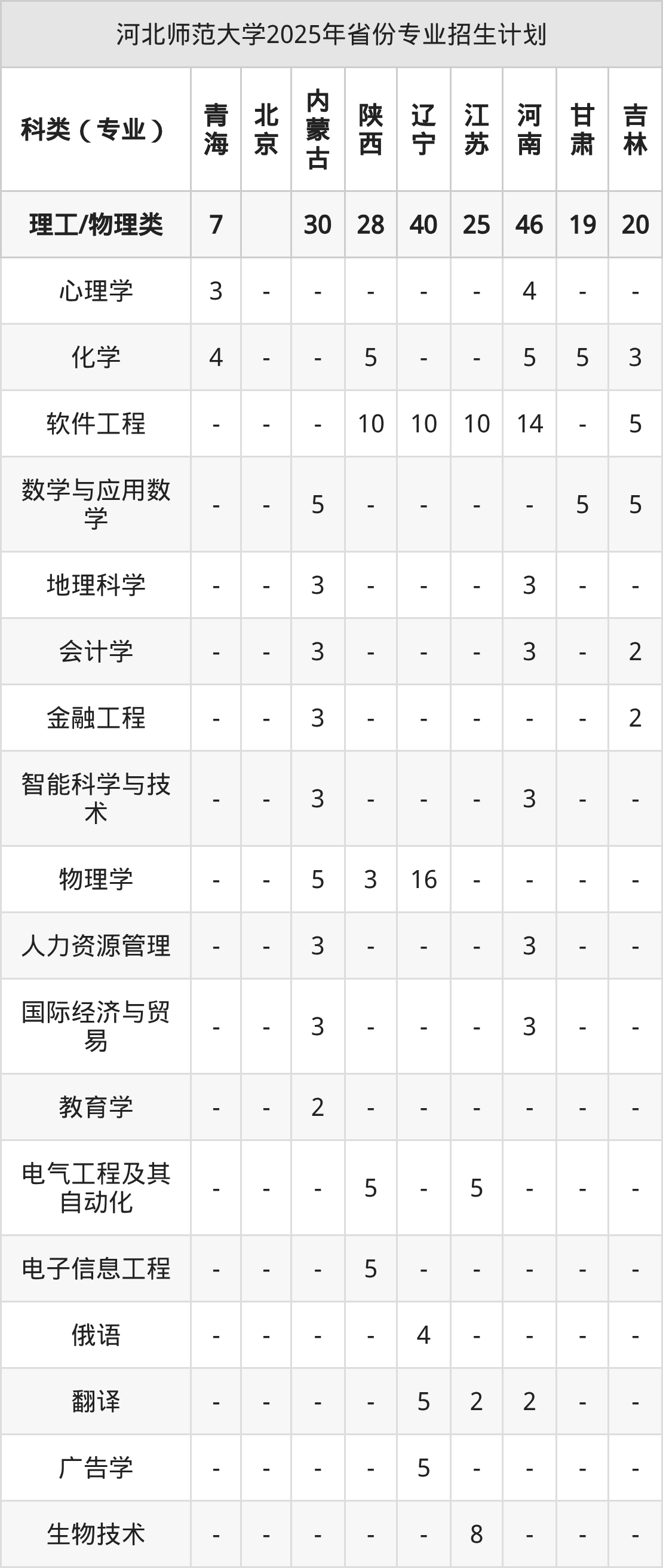 2026年河北师范大学本科招生计划待公布,下面附上2025年数据,暂供参考: