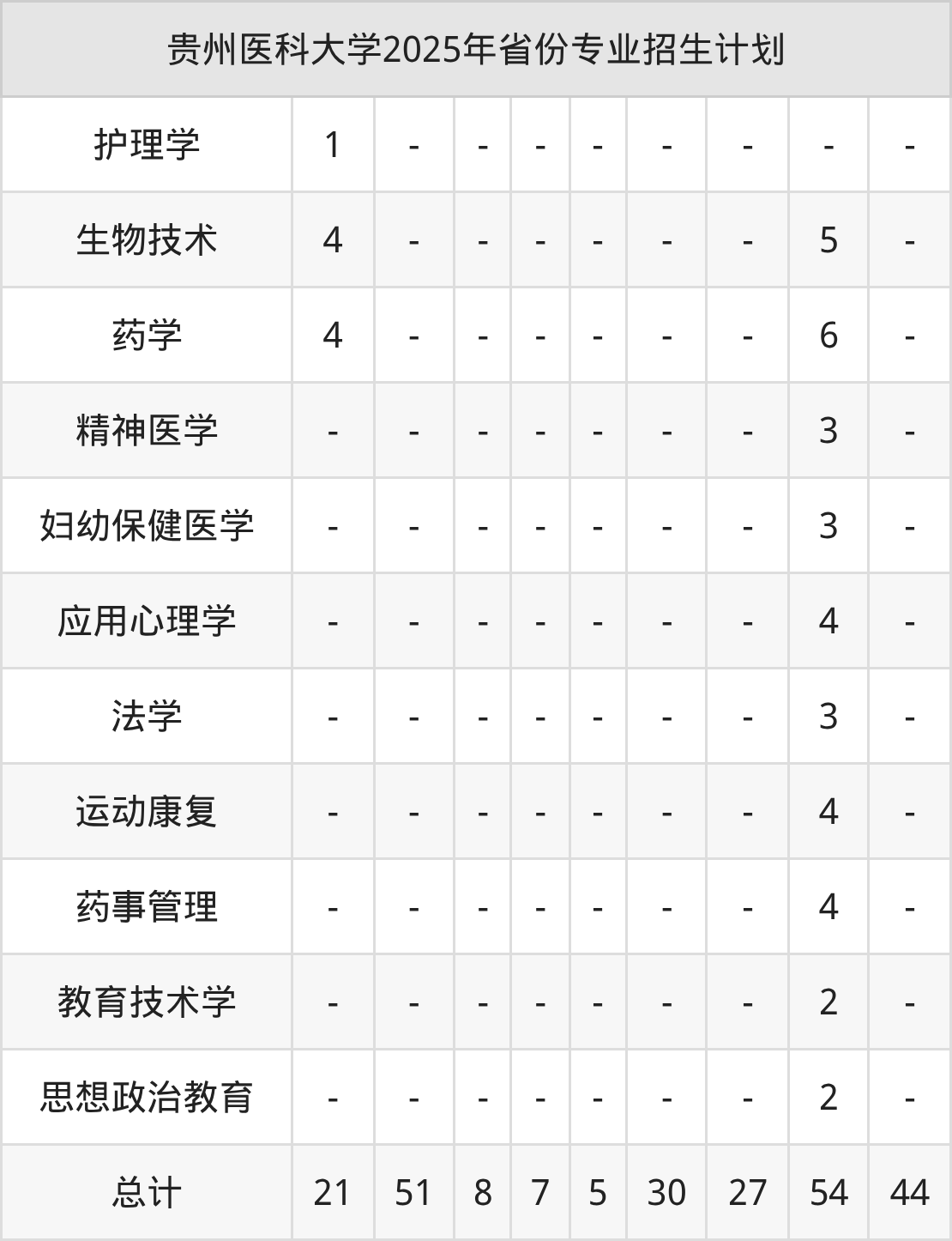而各省份的招生计划数为山西7人,福建11人,广东44人,贵州4541人,江苏6人等。