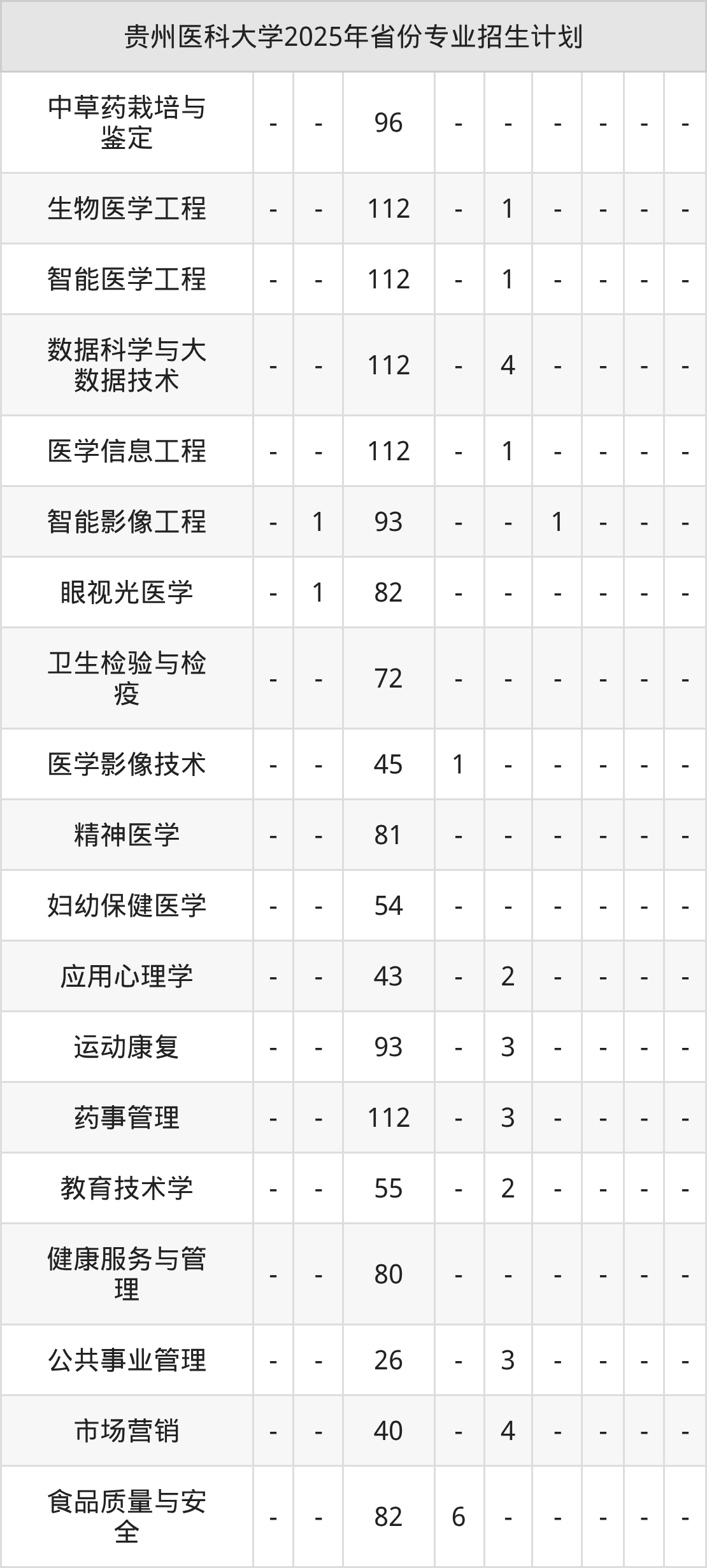 | 贵州医科大学本科招生专业 | |