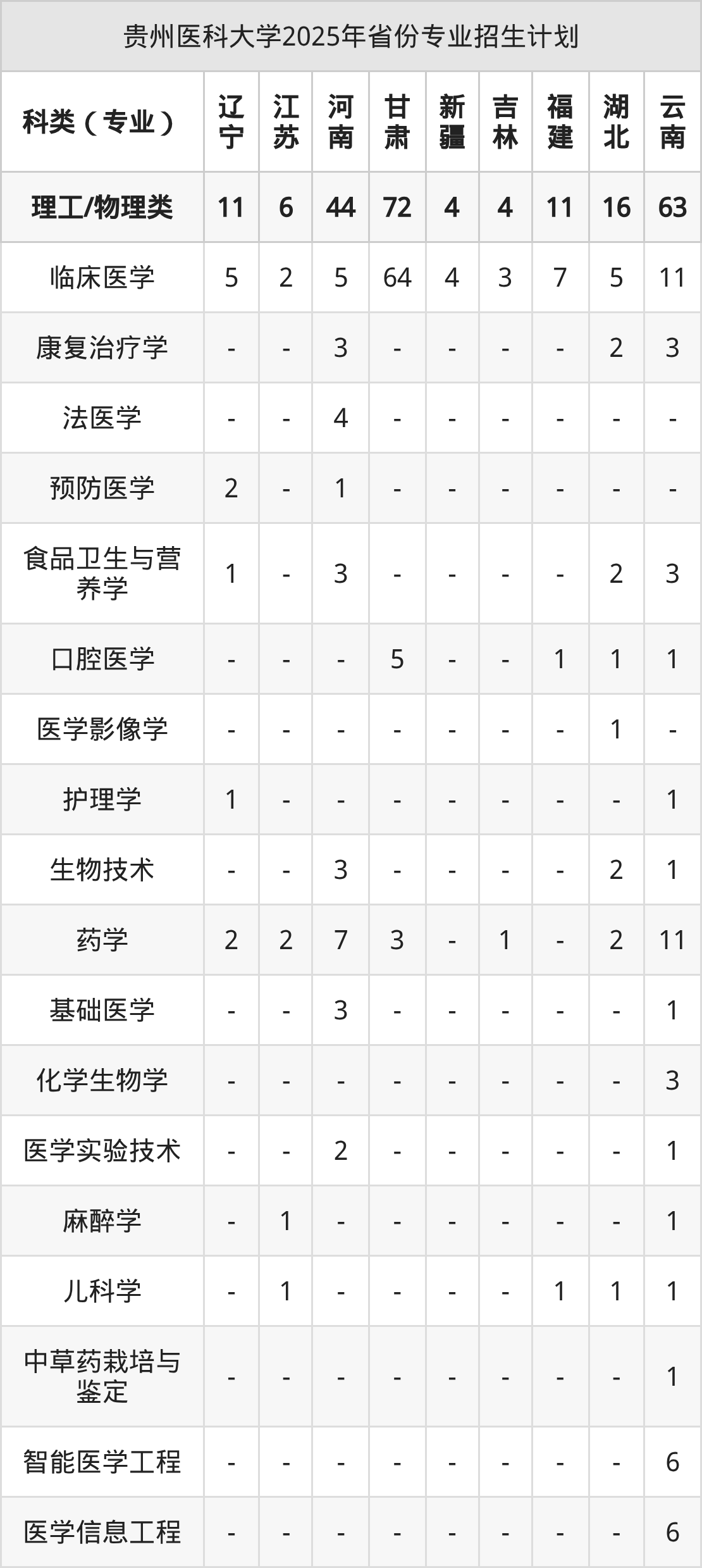 2026年贵州医科大学本科招生计划待公布,下面附上2025年数据,暂供参考: