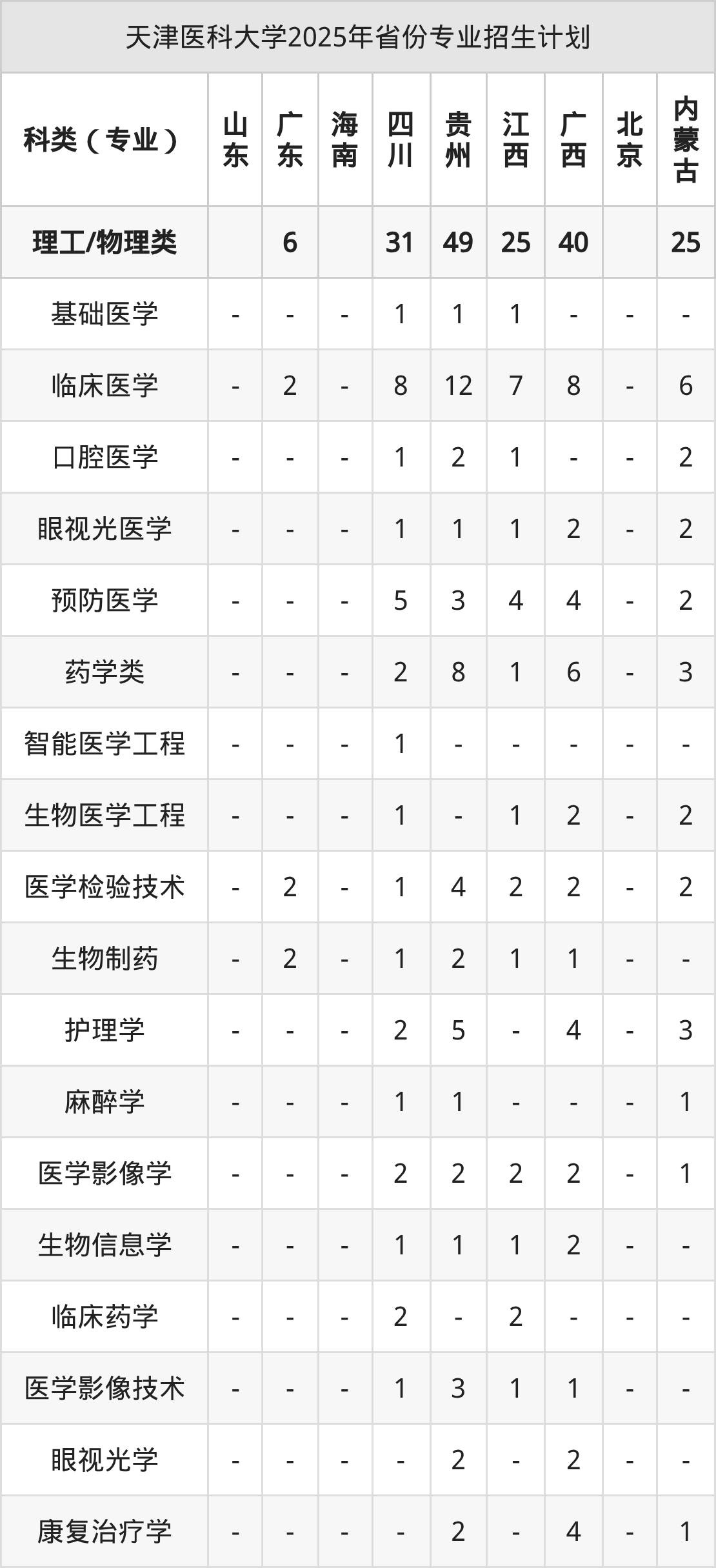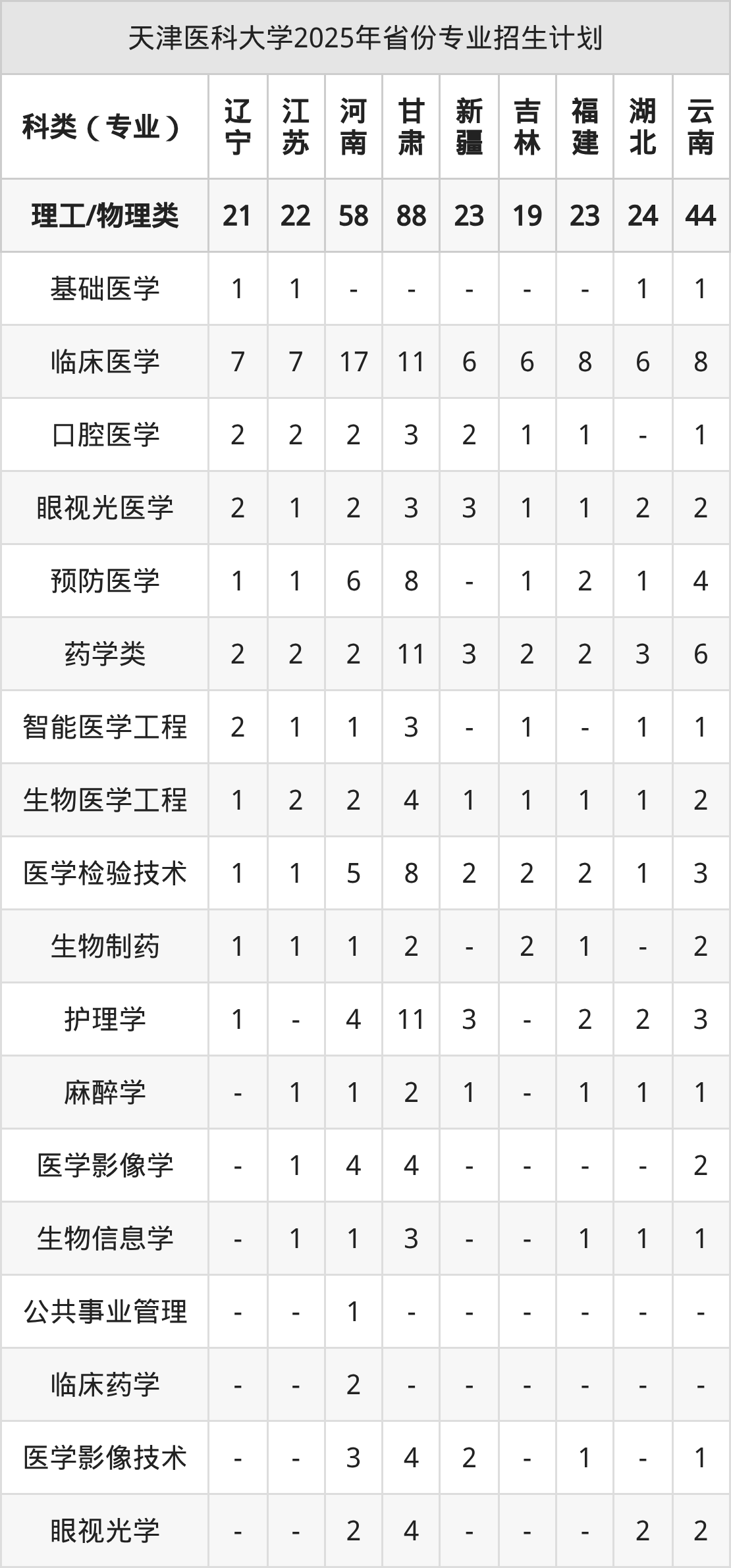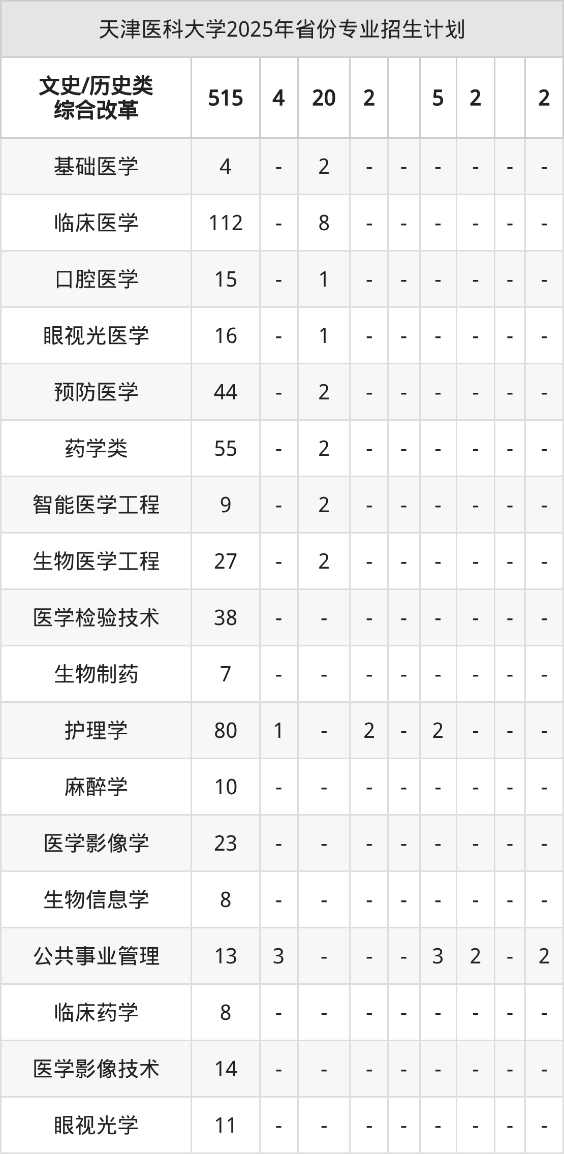 2026年天津医科大学本科招生计划待公布,下面附上2025年数据,暂供参考: