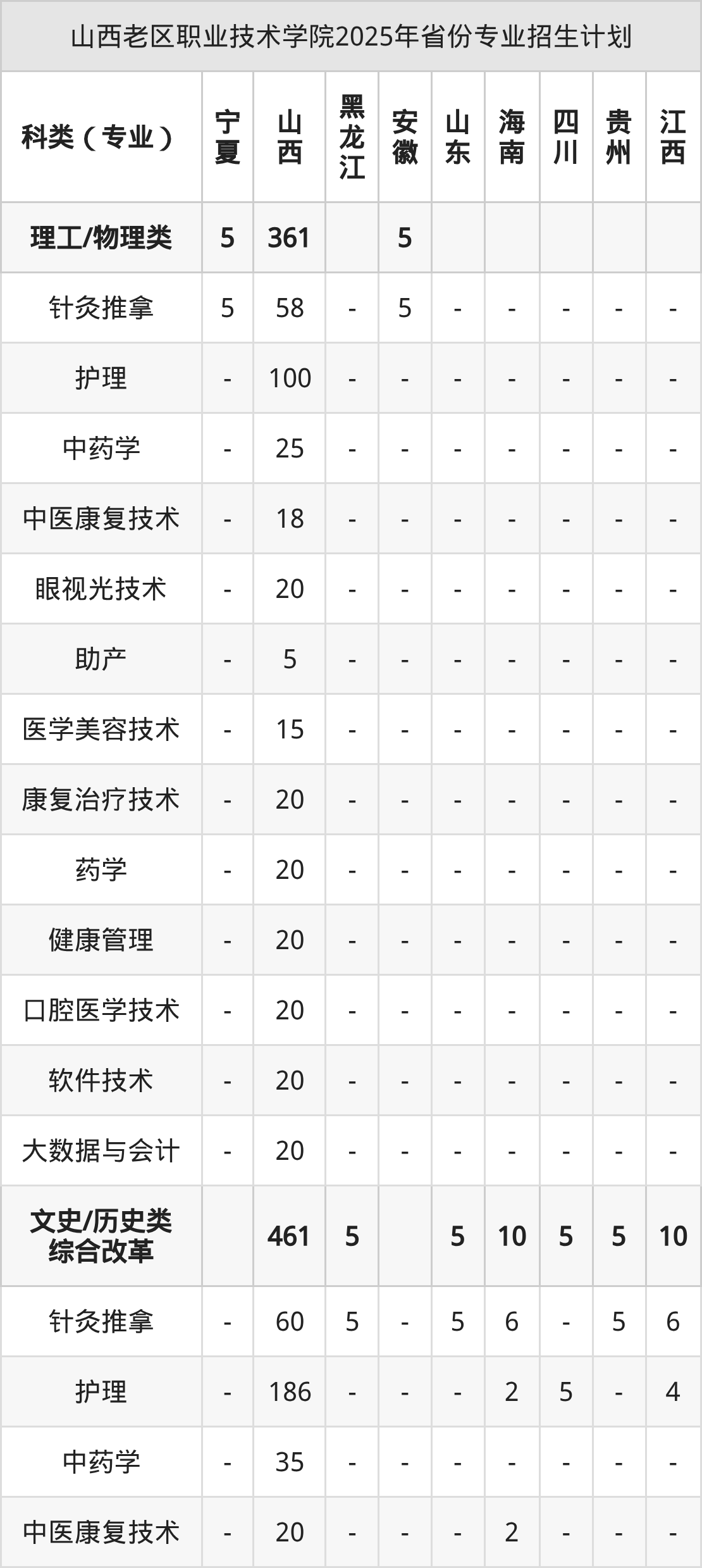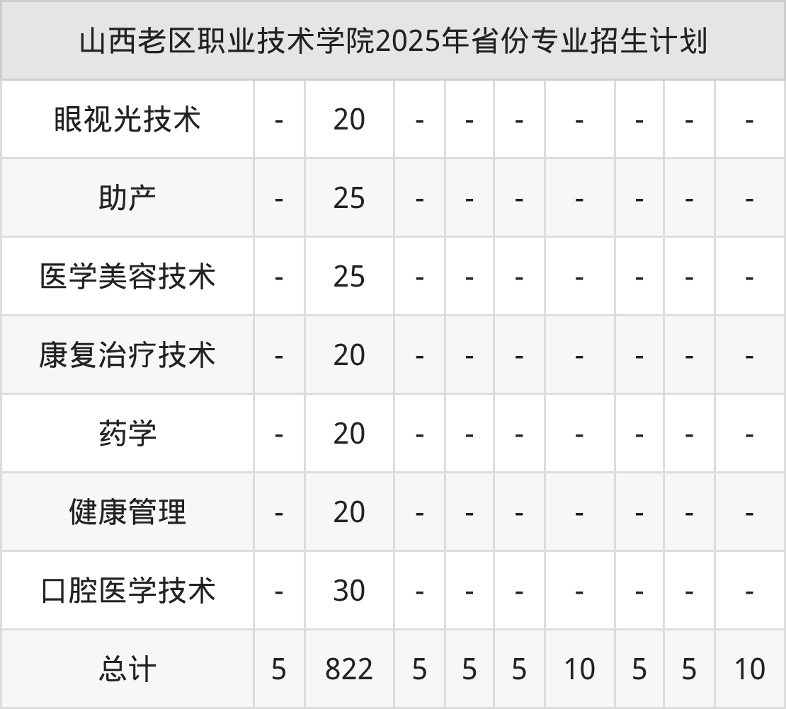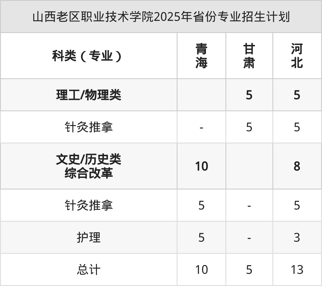 2026年山西老区职业技术学院专科招生计划待公布,下面附上2025年数据,暂供参考: