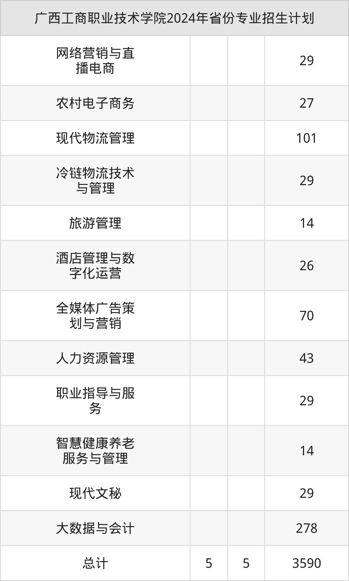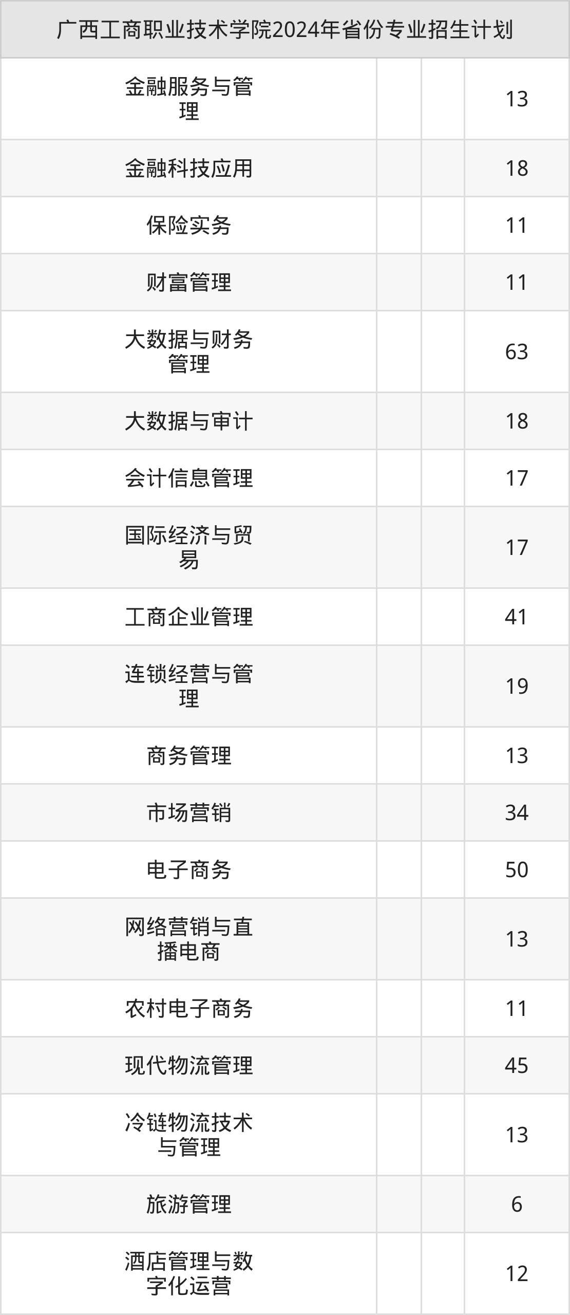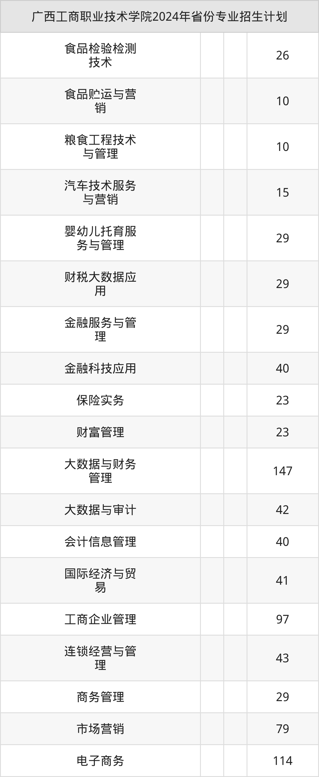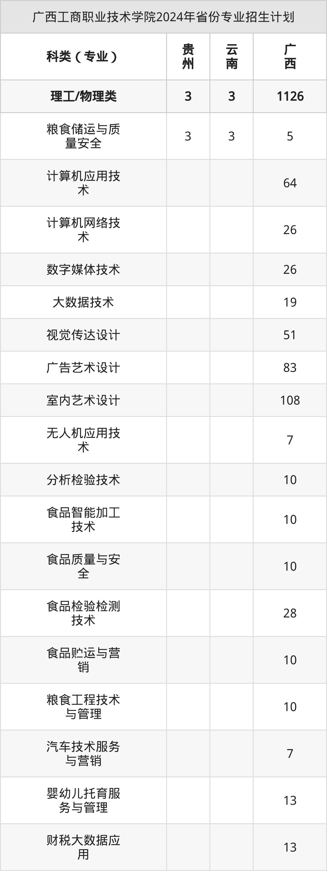 2025年广西工商职业技术学院专科招生计划待公布,下面附上2024年数据,暂供参考: