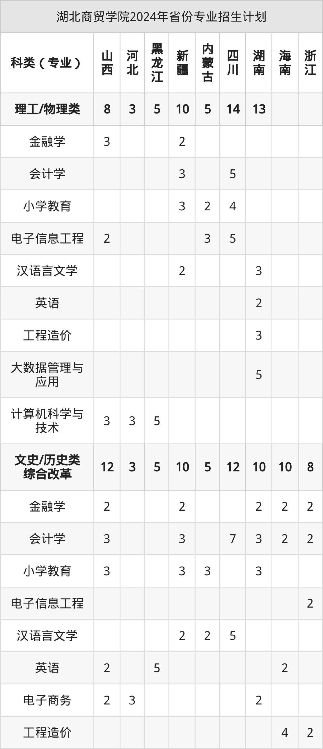 2025年湖北商贸学院本科招生计划待公布,下面附上2024年数据,暂供参考: