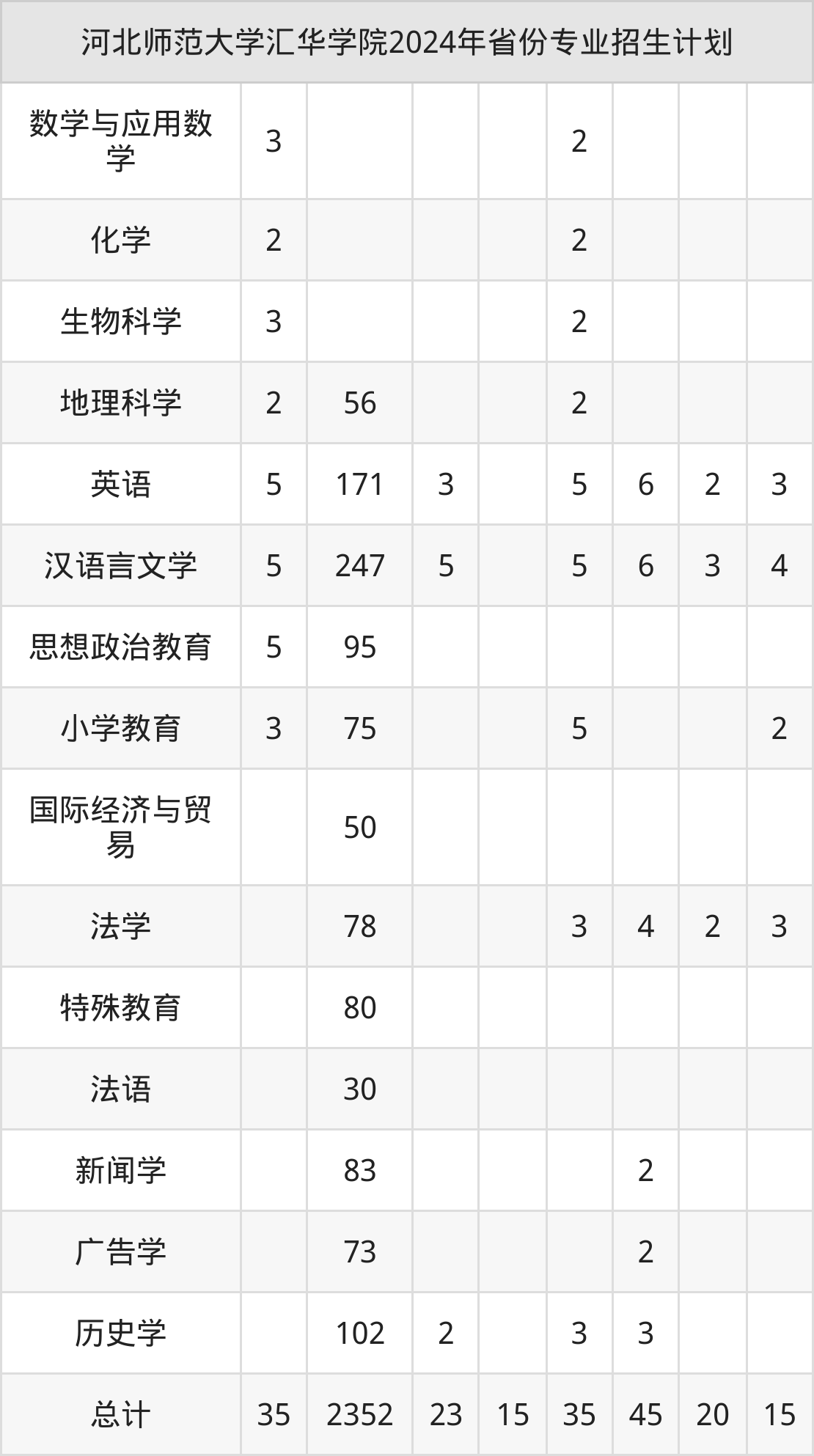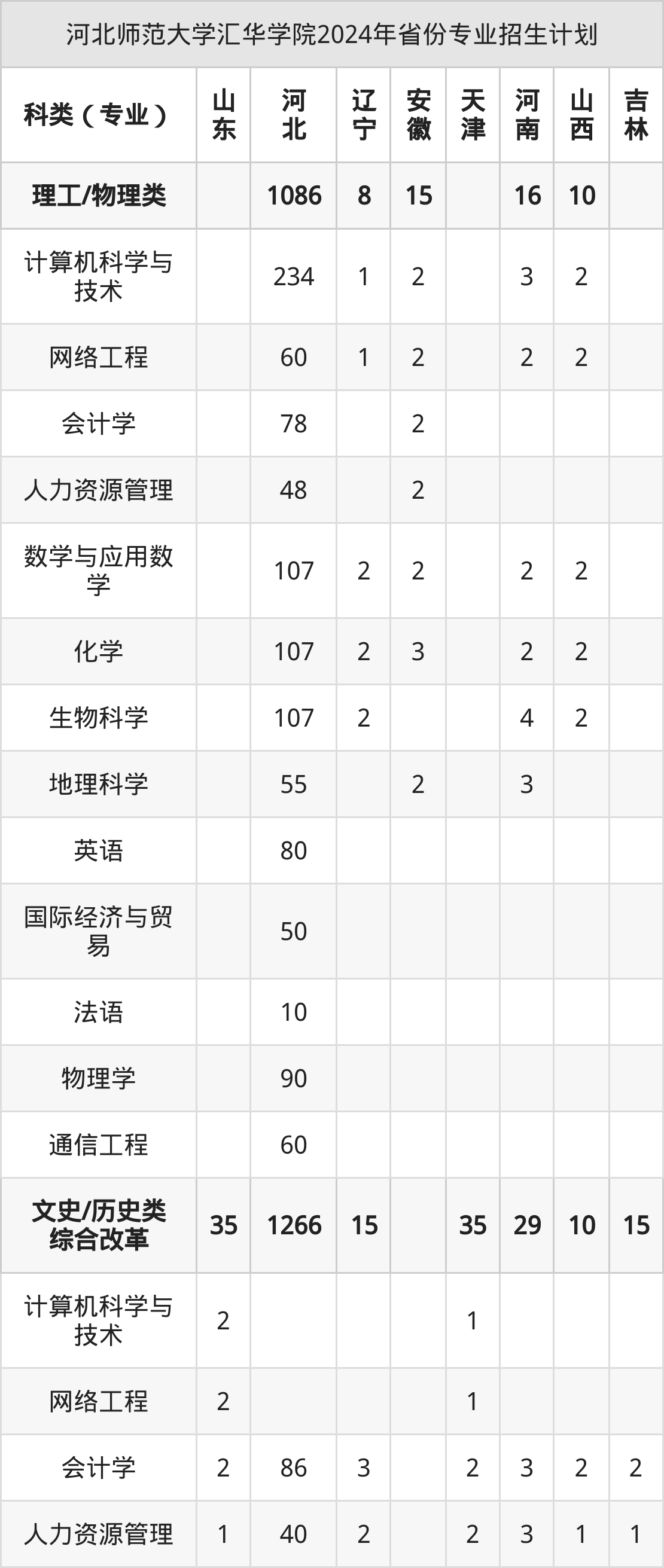2025年河北师范大学汇华学院本科招生计划待公布,下面附上2024年数据,暂供参考: