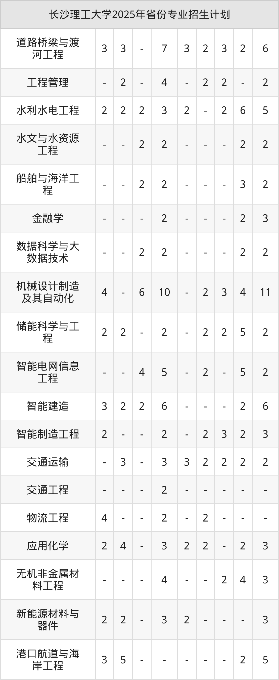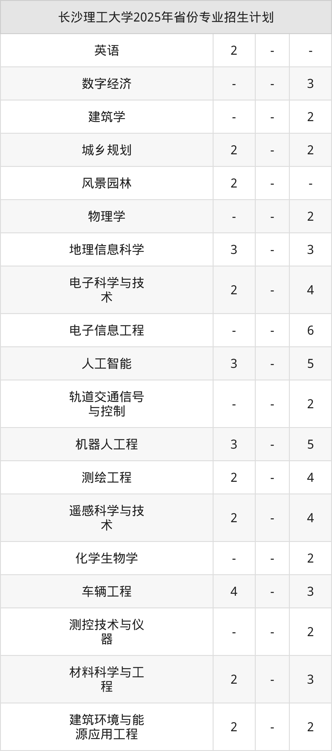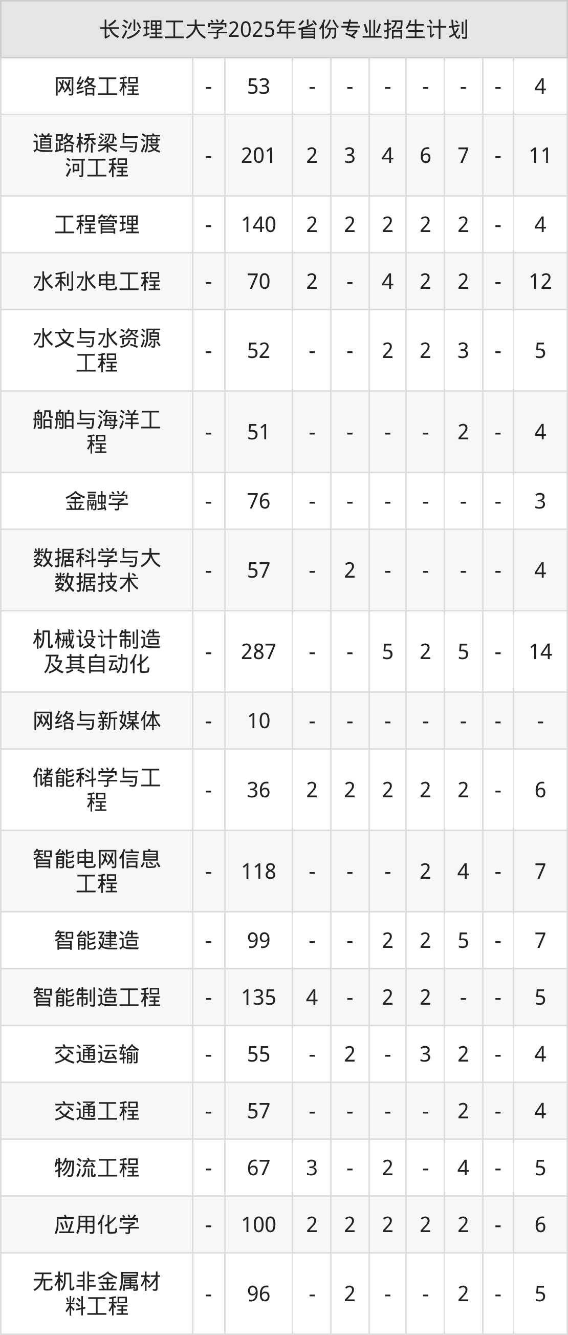 2026年长沙理工大学本科招生计划待公布,下面附上2025年数据,暂供参考: