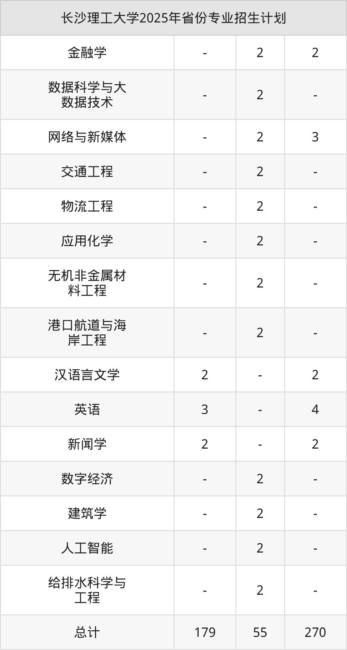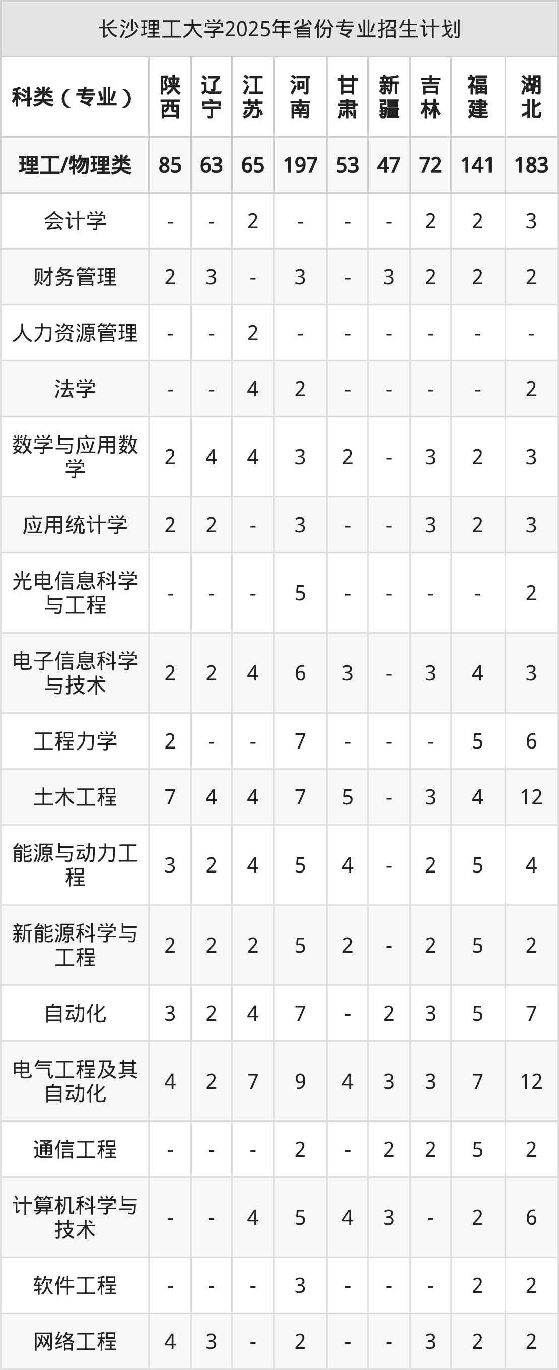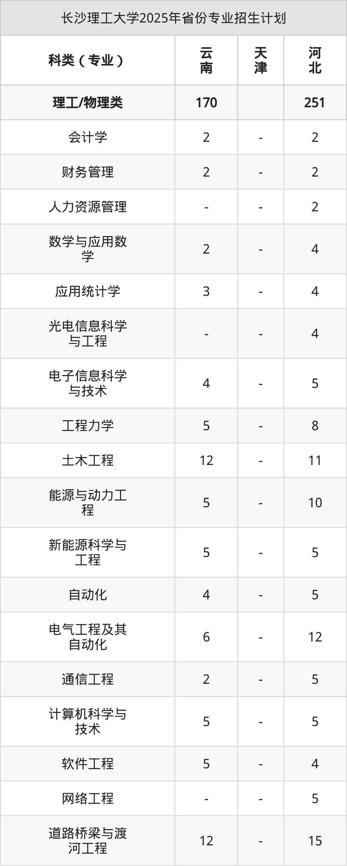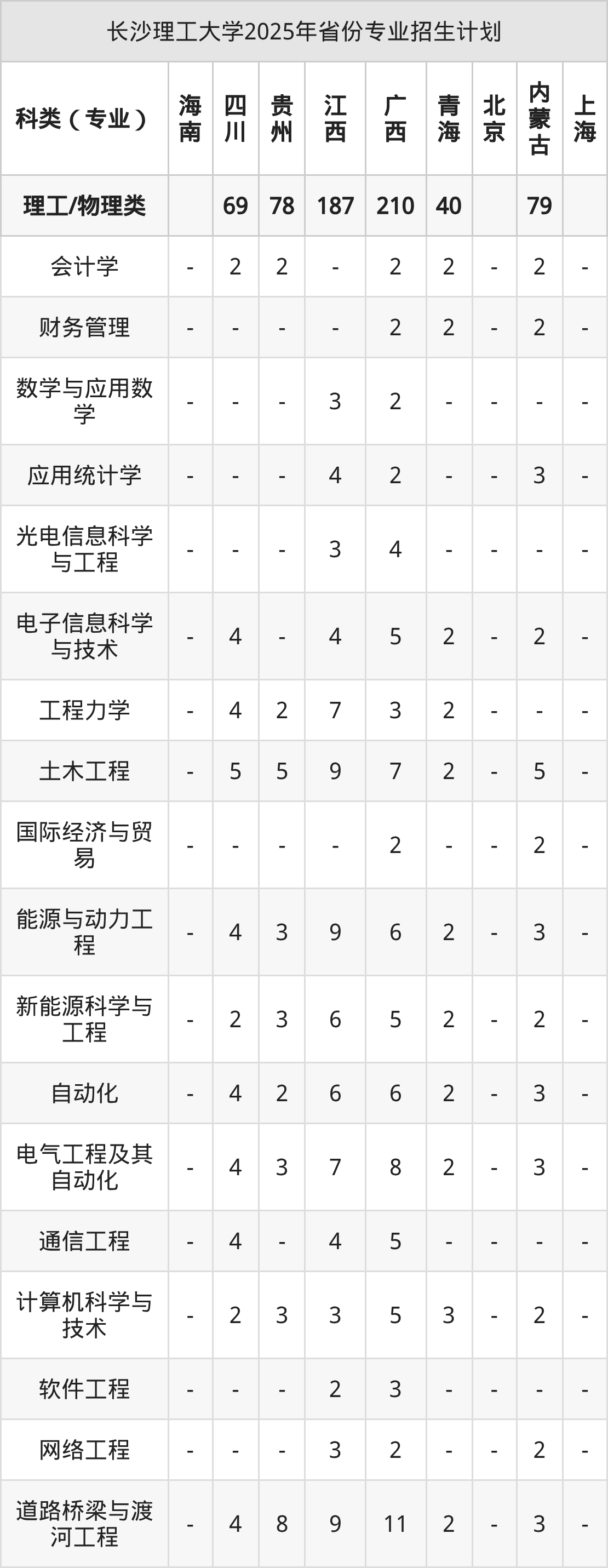 2026年长沙理工大学本科招生计划待公布,下面附上2025年数据,暂供参考: