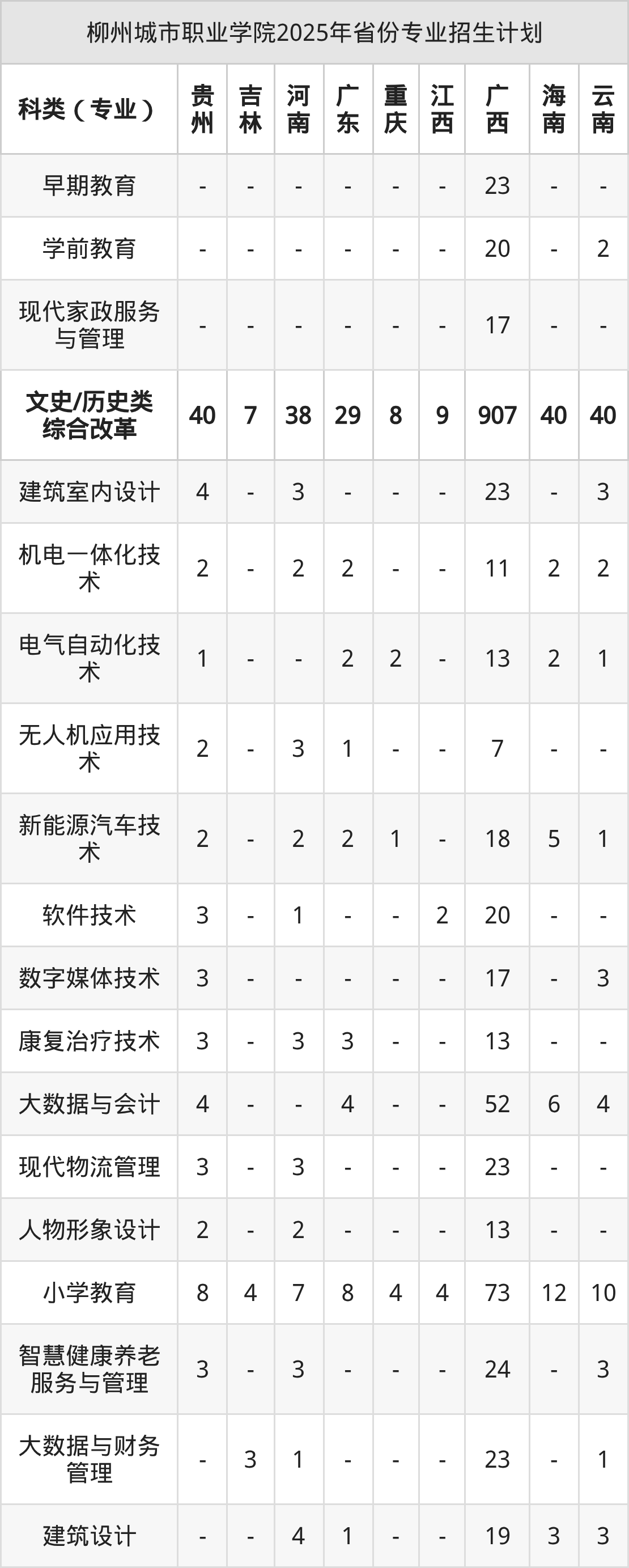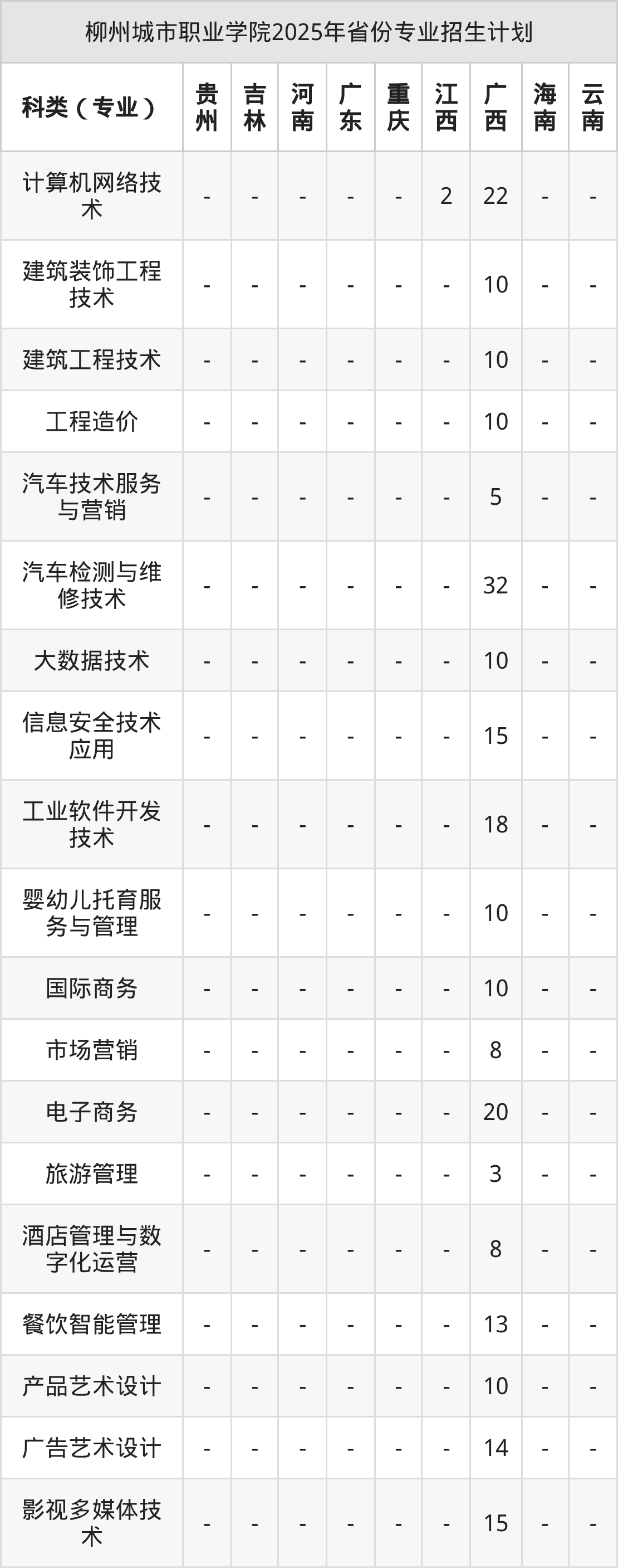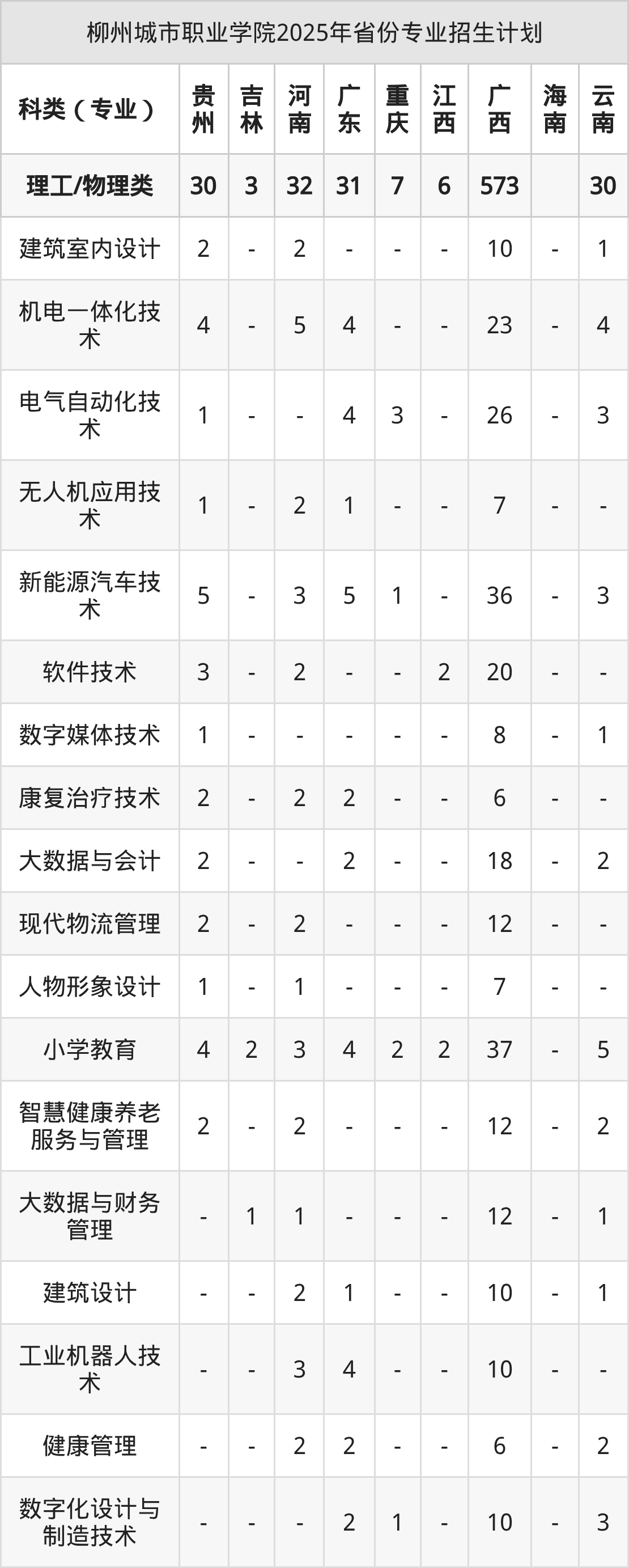 2026年柳州城市职业学院专科招生计划待公布,下面附上2025年数据,暂供参考: