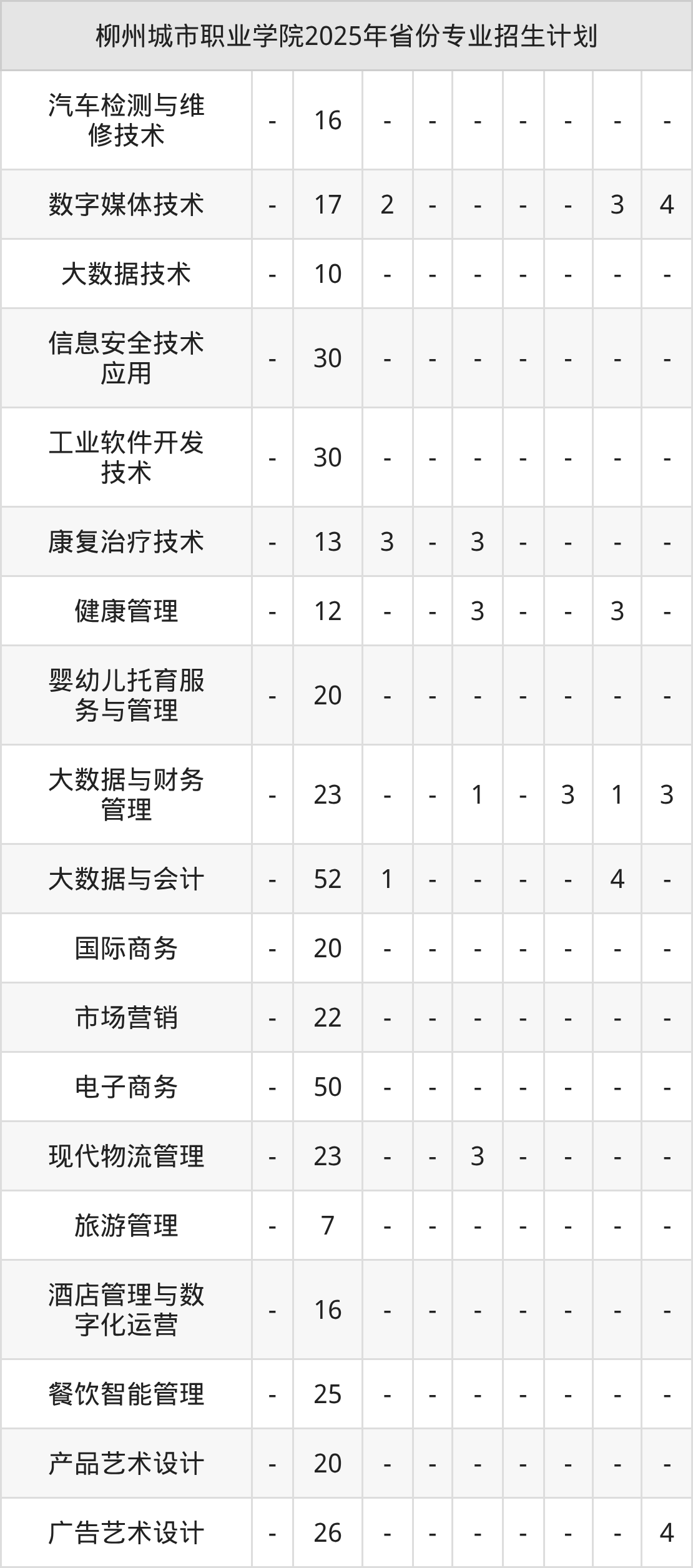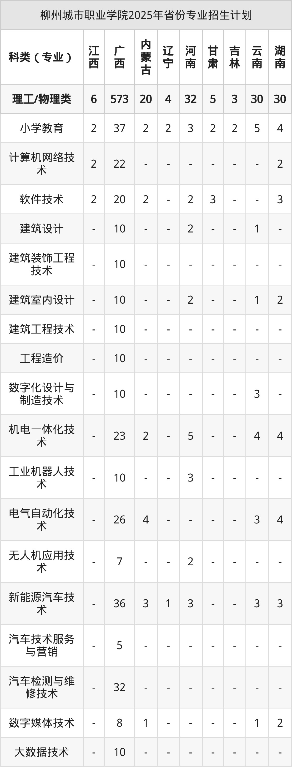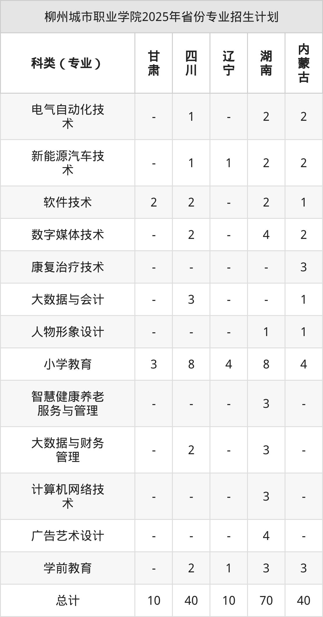 2026年柳州城市职业学院专科招生计划待公布,下面附上2025年数据,暂供参考: