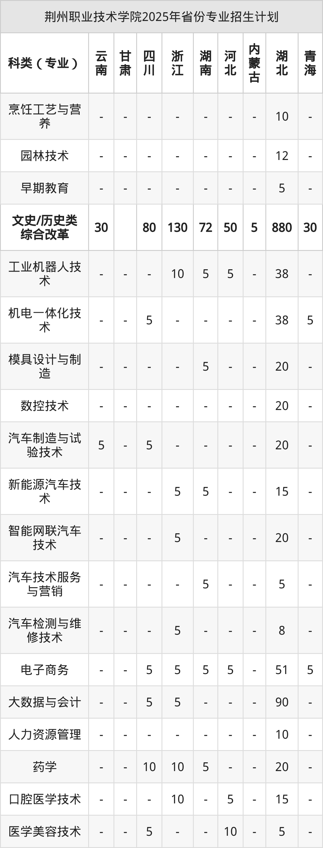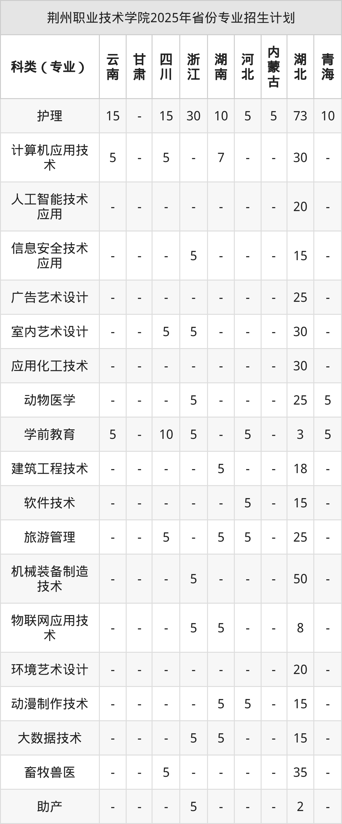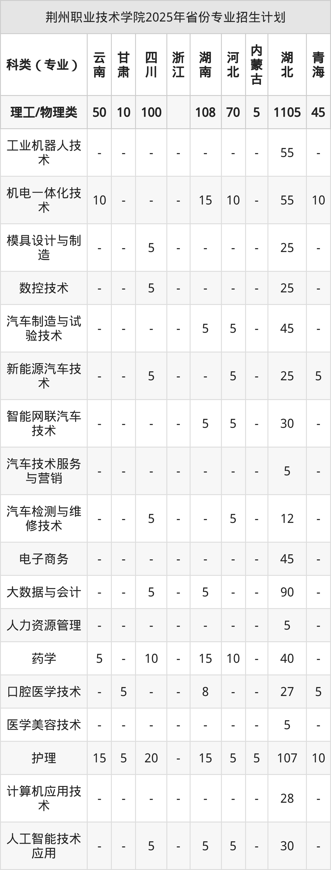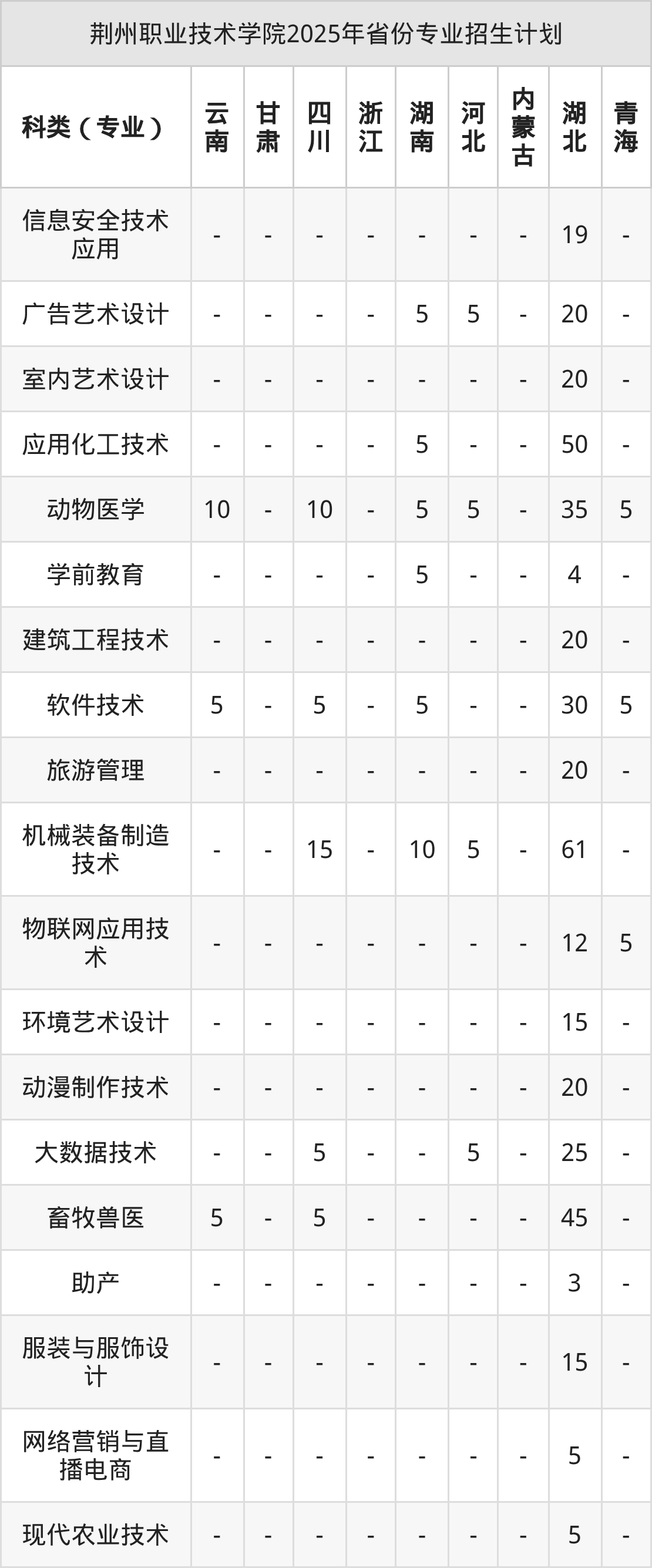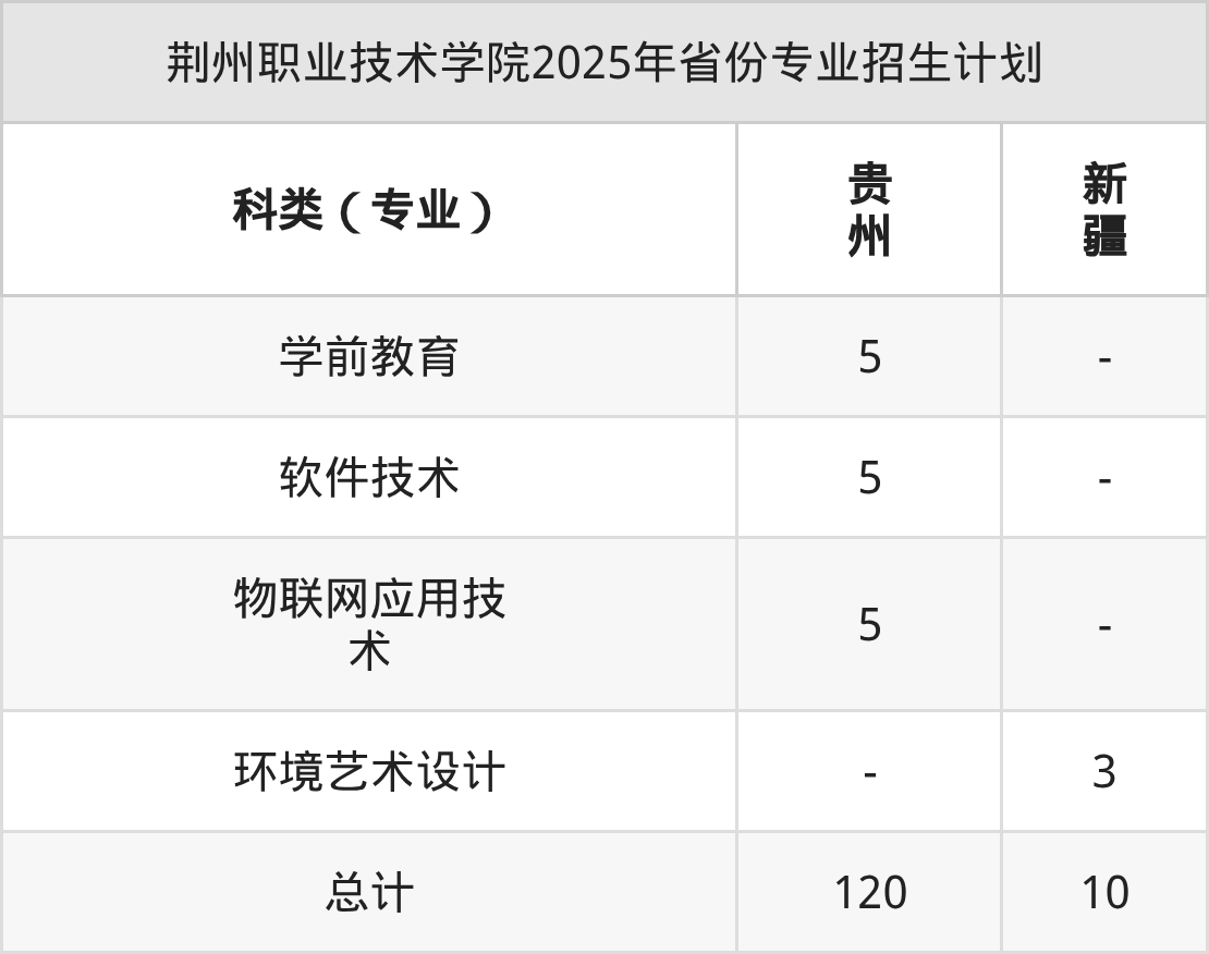 2026年荆州职业技术学院专科招生计划待公布,下面附上2025年数据,暂供参考:
