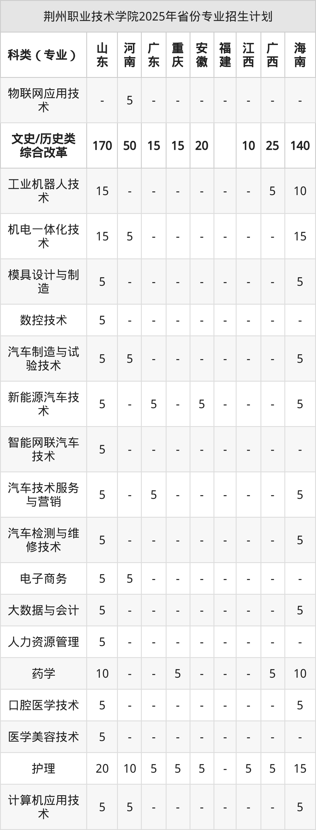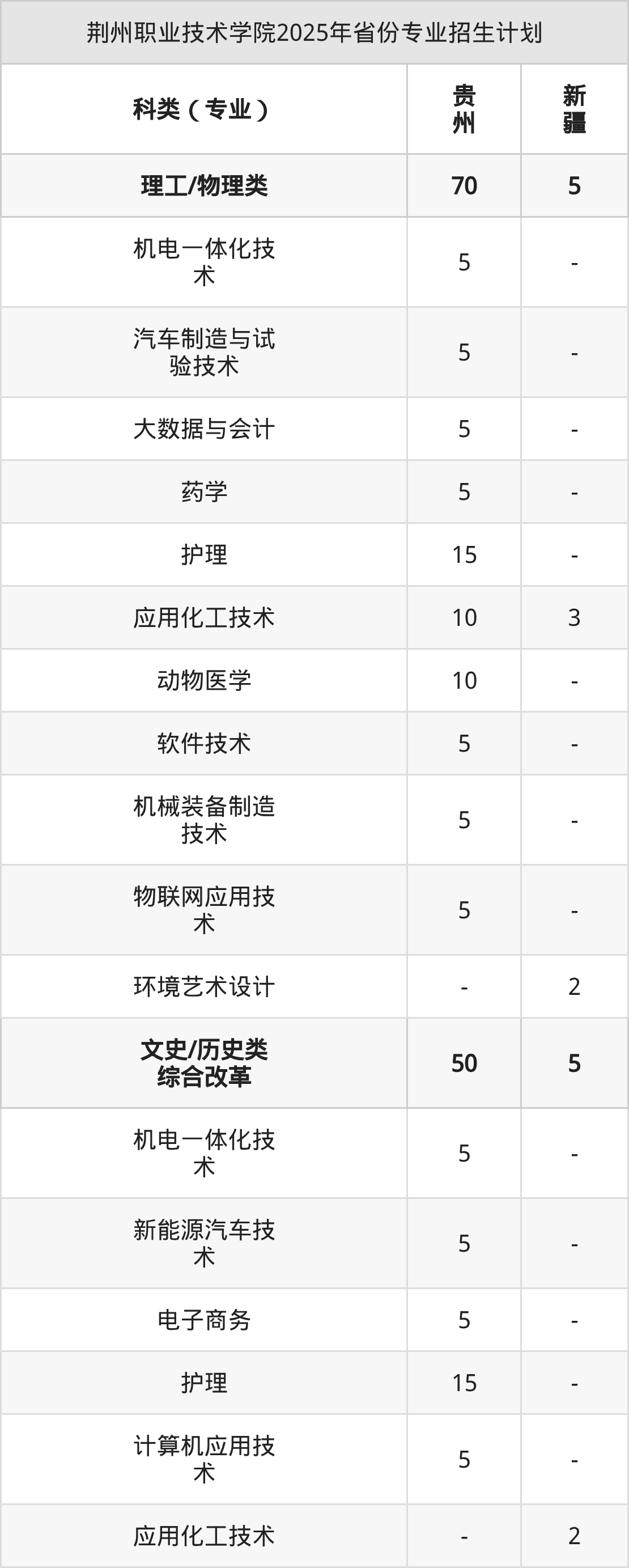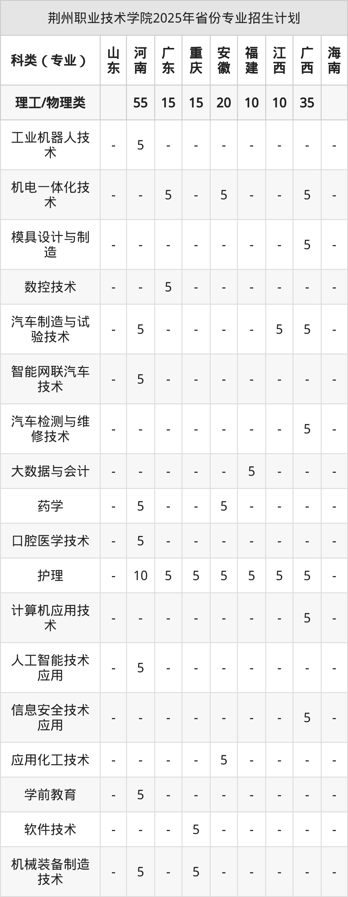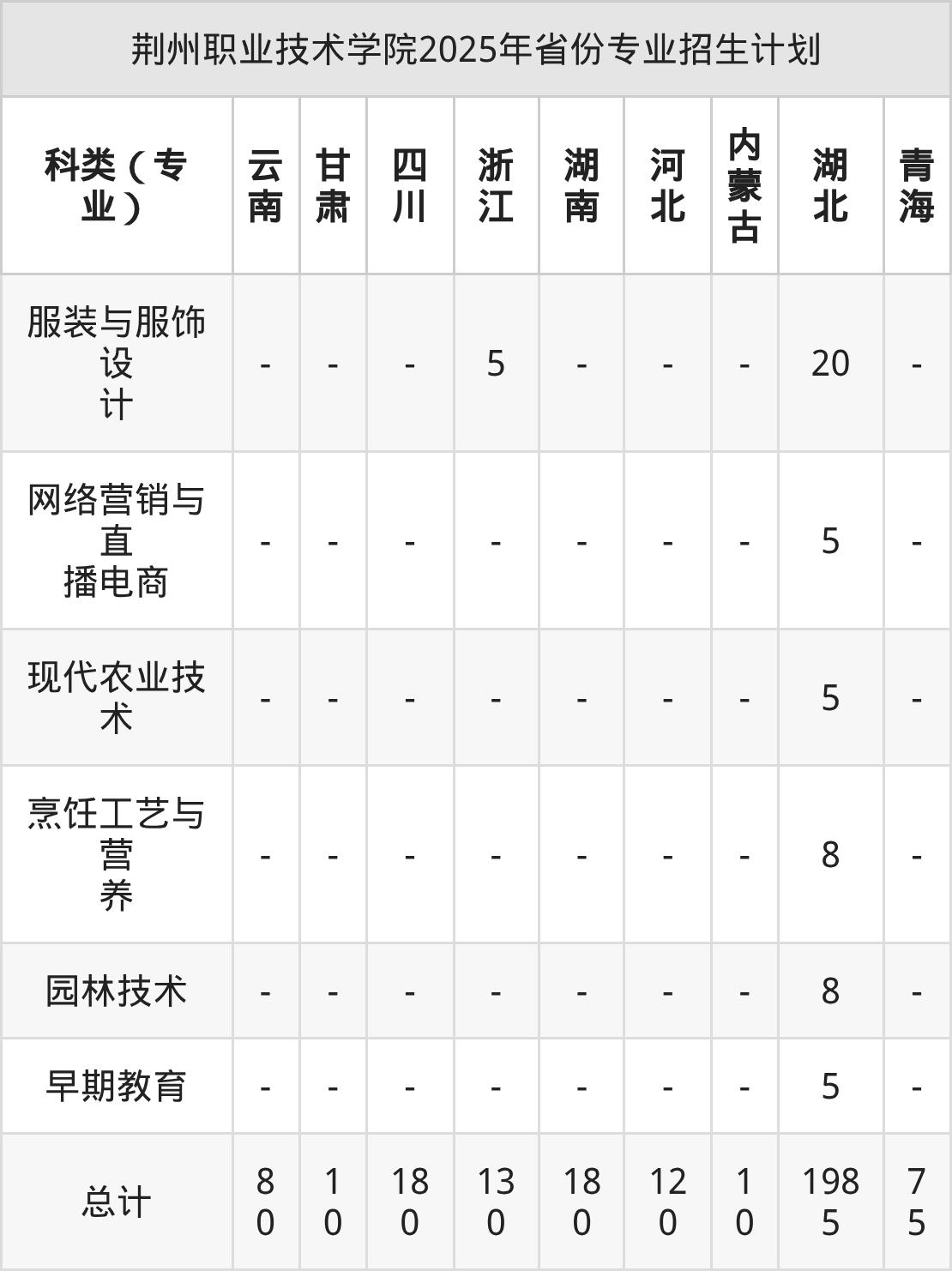 2026年荆州职业技术学院专科招生计划待公布,下面附上2025年数据,暂供参考: