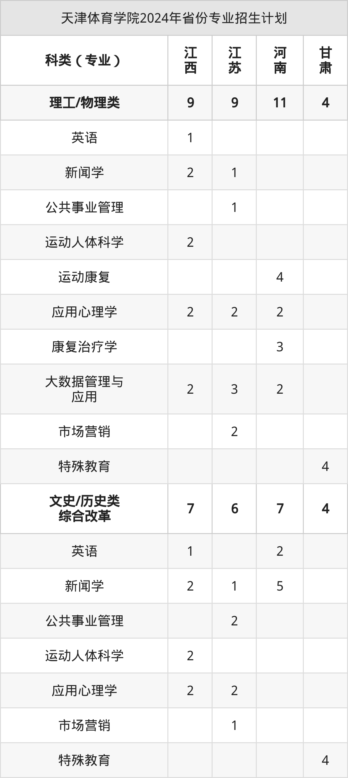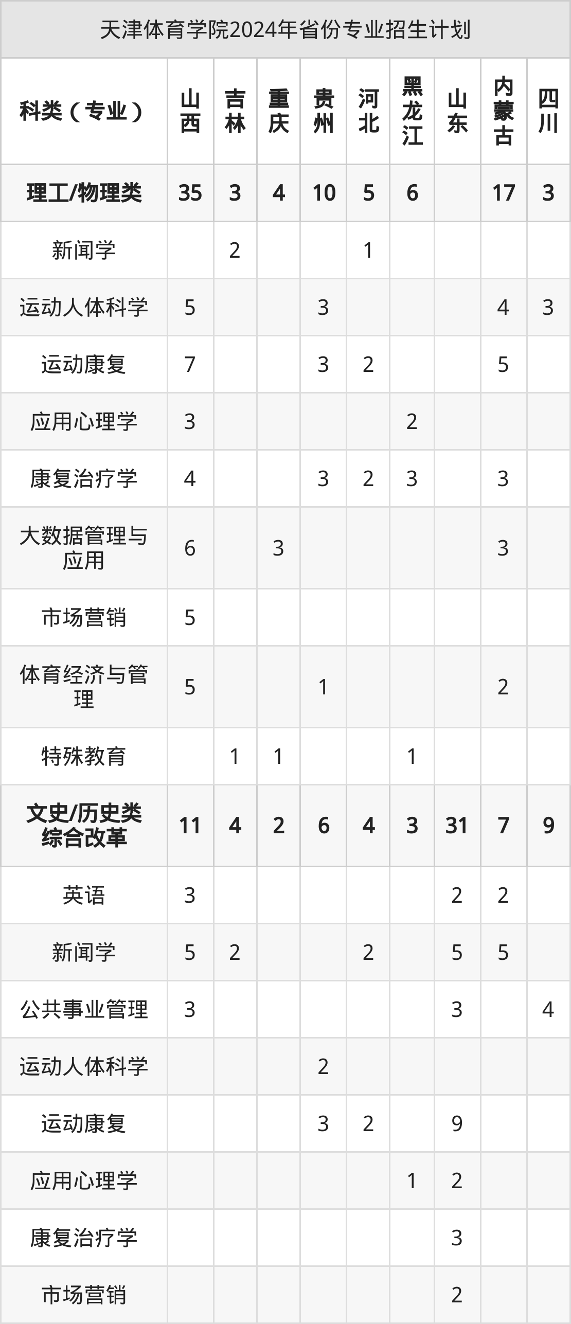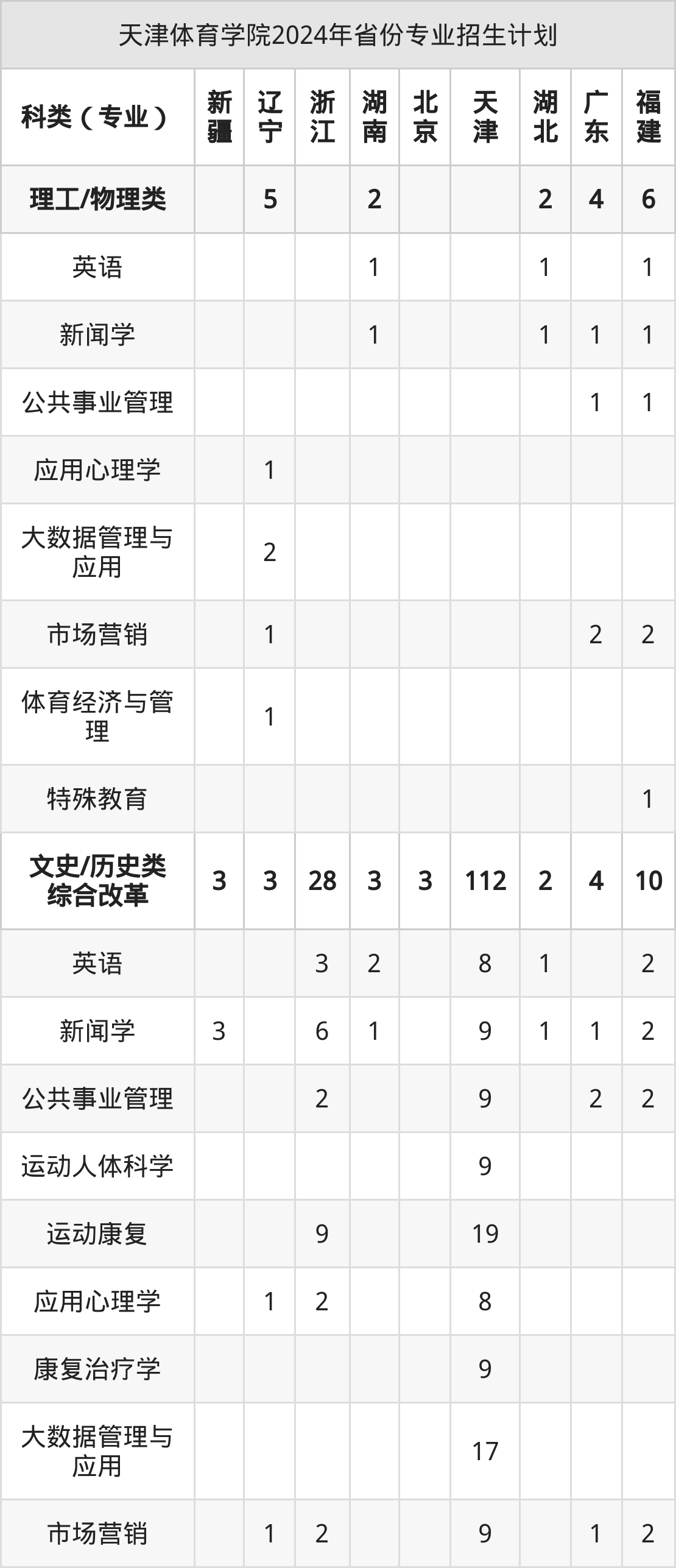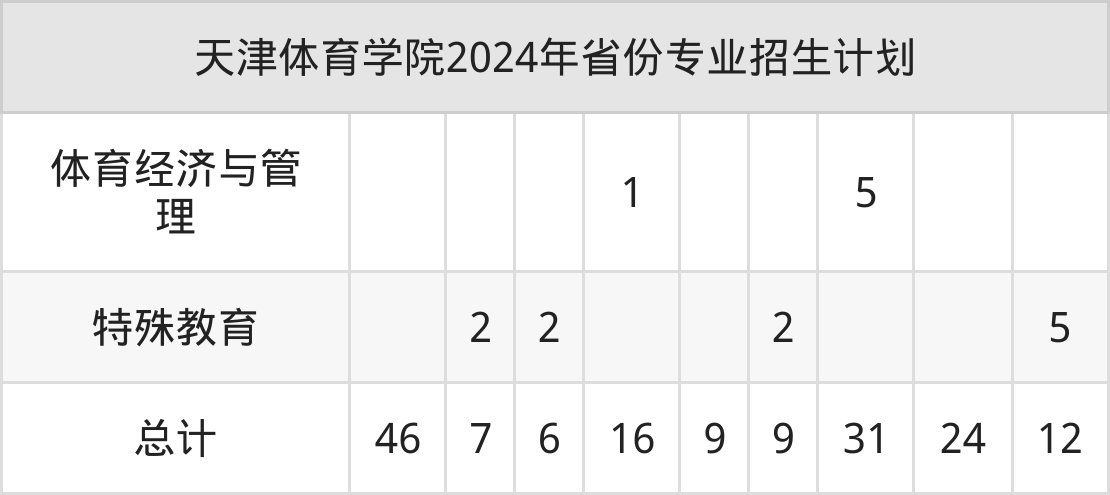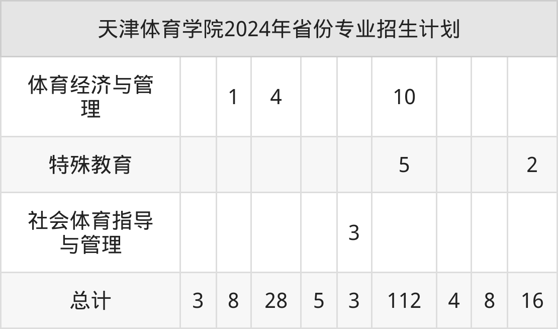 2025年天津体育学院本科招生计划待公布,下面附上2024年数据,暂供参考:
