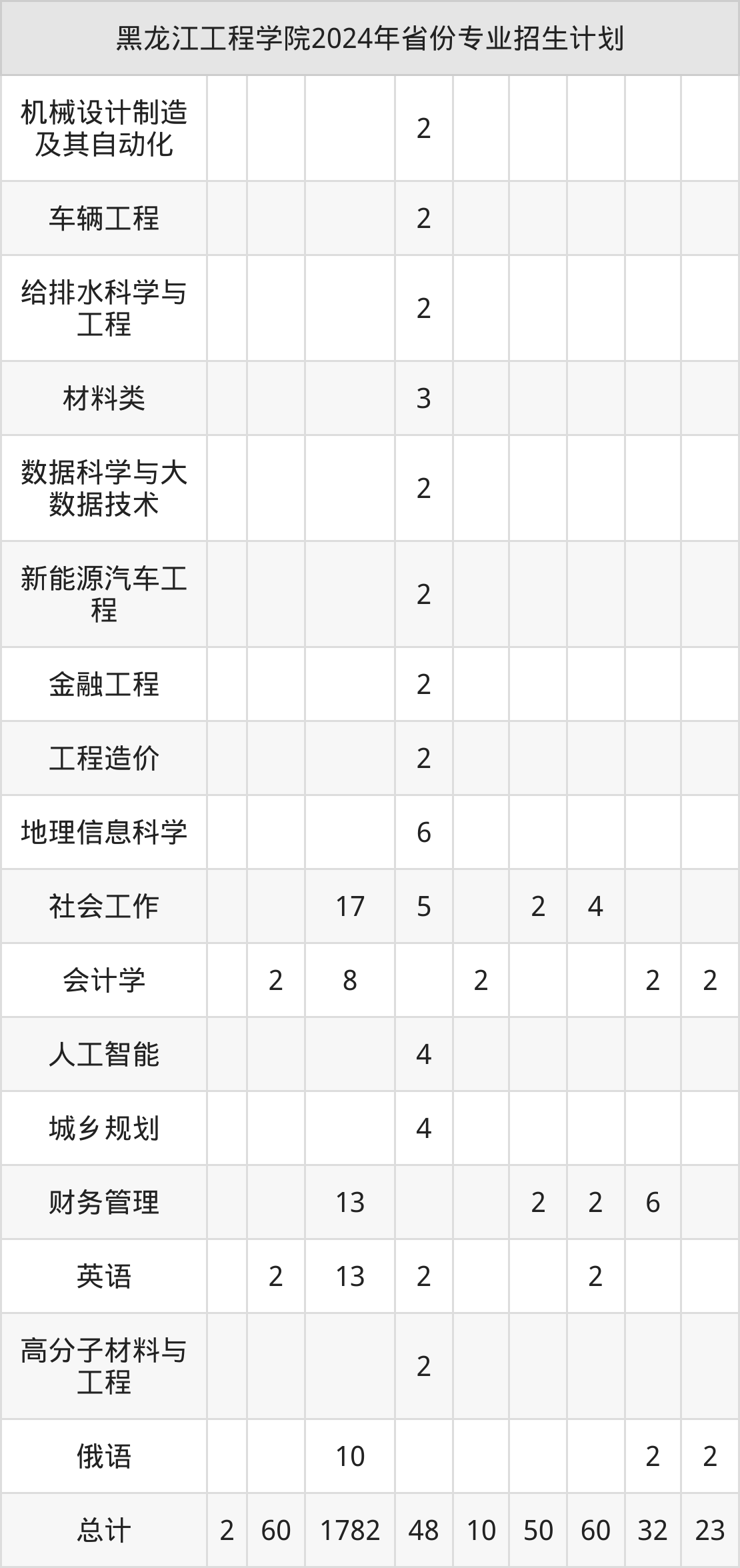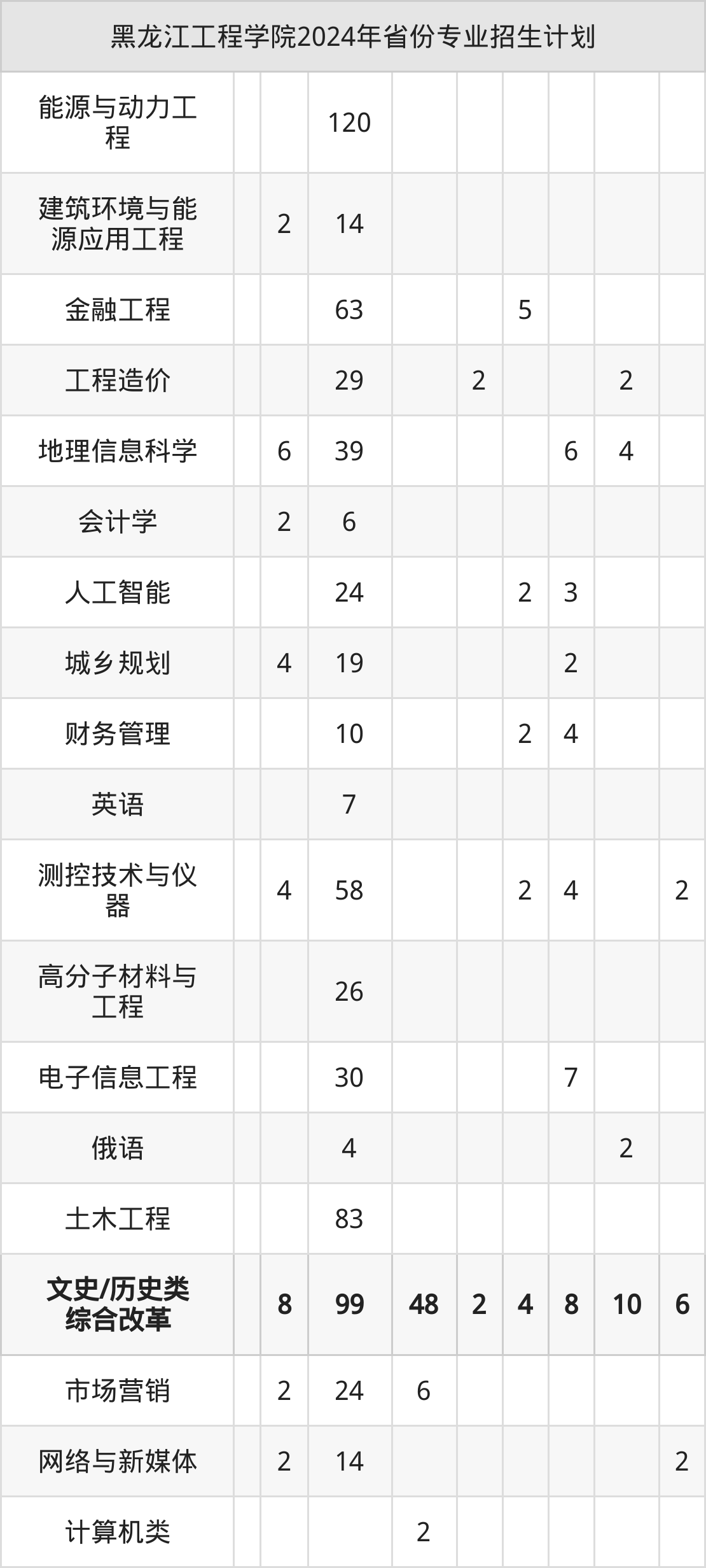 2025年黑龙江工程学院本科招生计划待公布,下面附上2024年数据,暂供参考:
