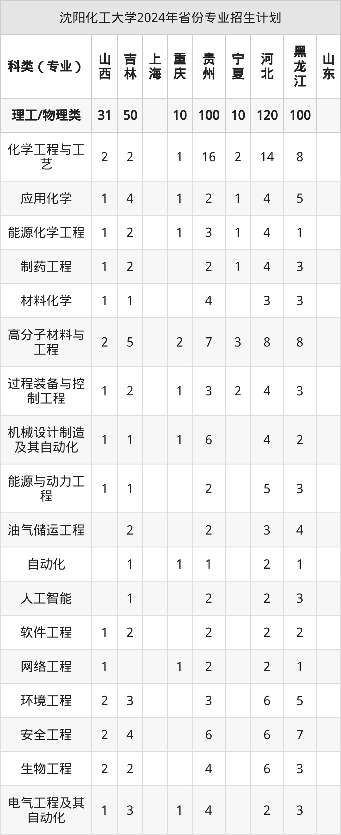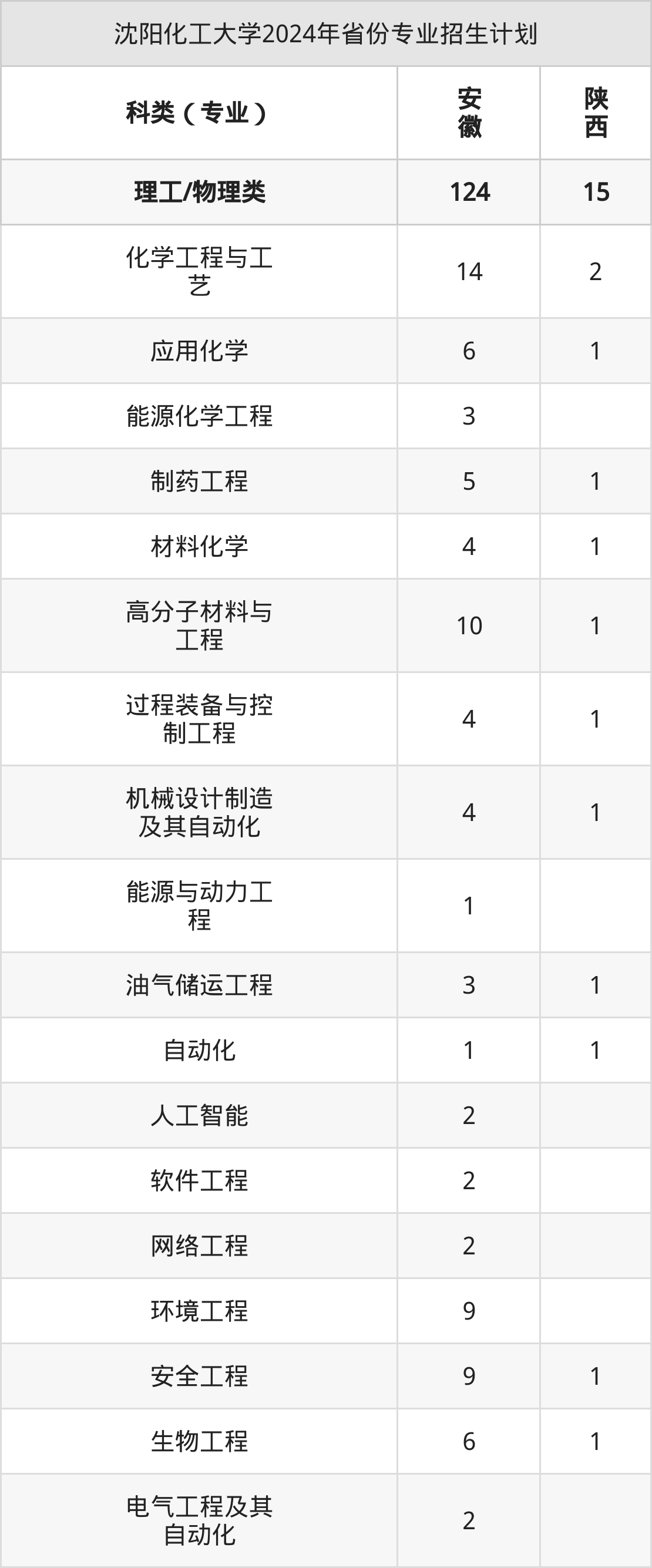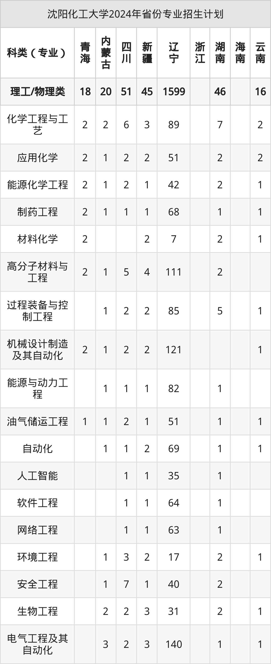 2025年沈阳化工大学本科招生计划待公布,下面附上2024年数据,暂供参考: