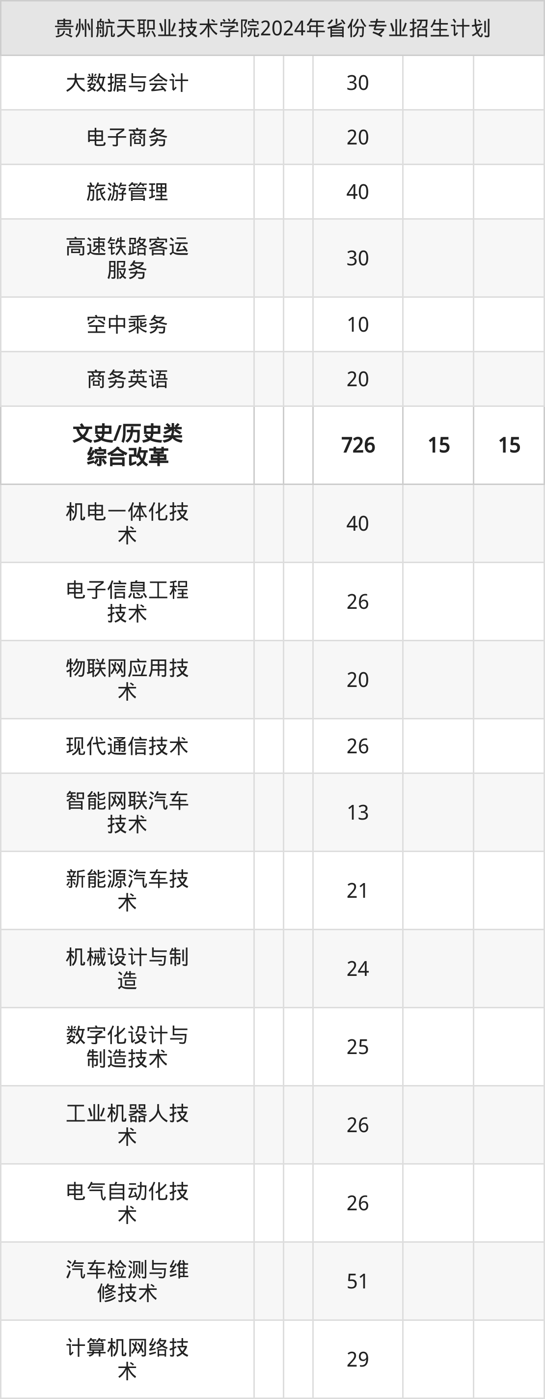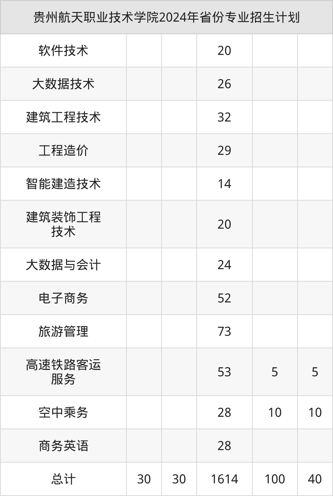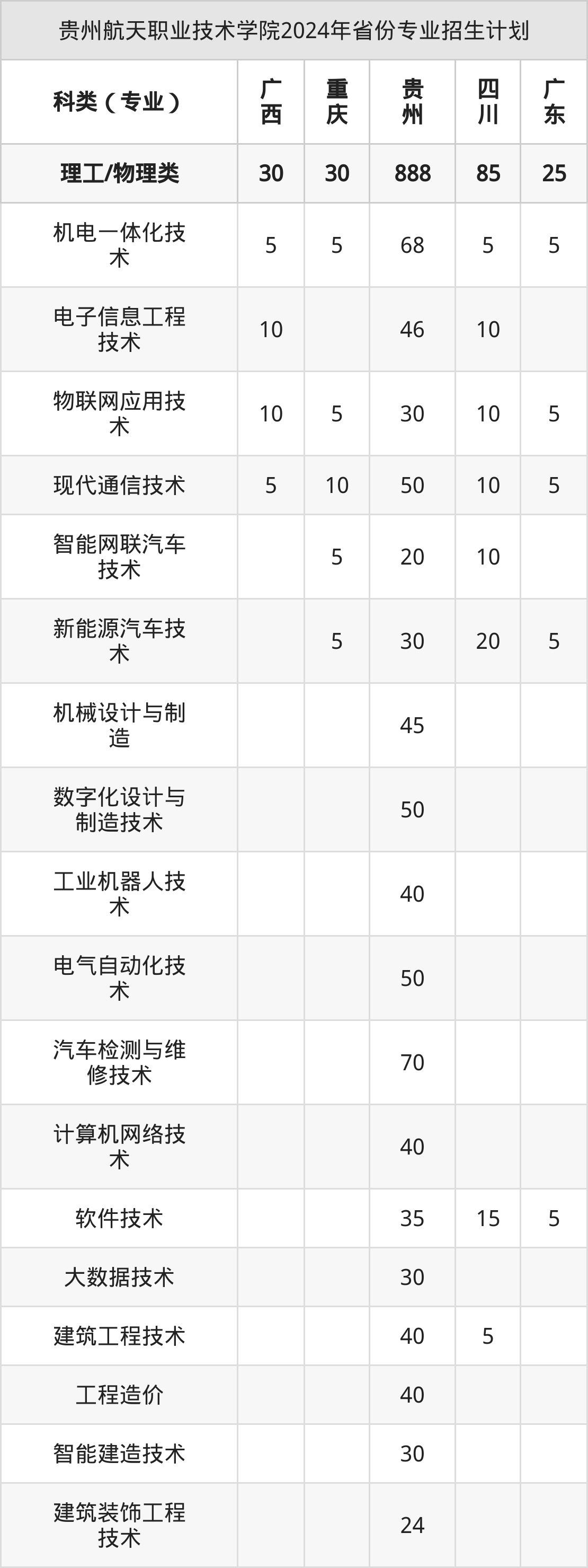 2025年贵州航天职业技术学院专科招生计划待公布,下面附上2024年数据,暂供参考: