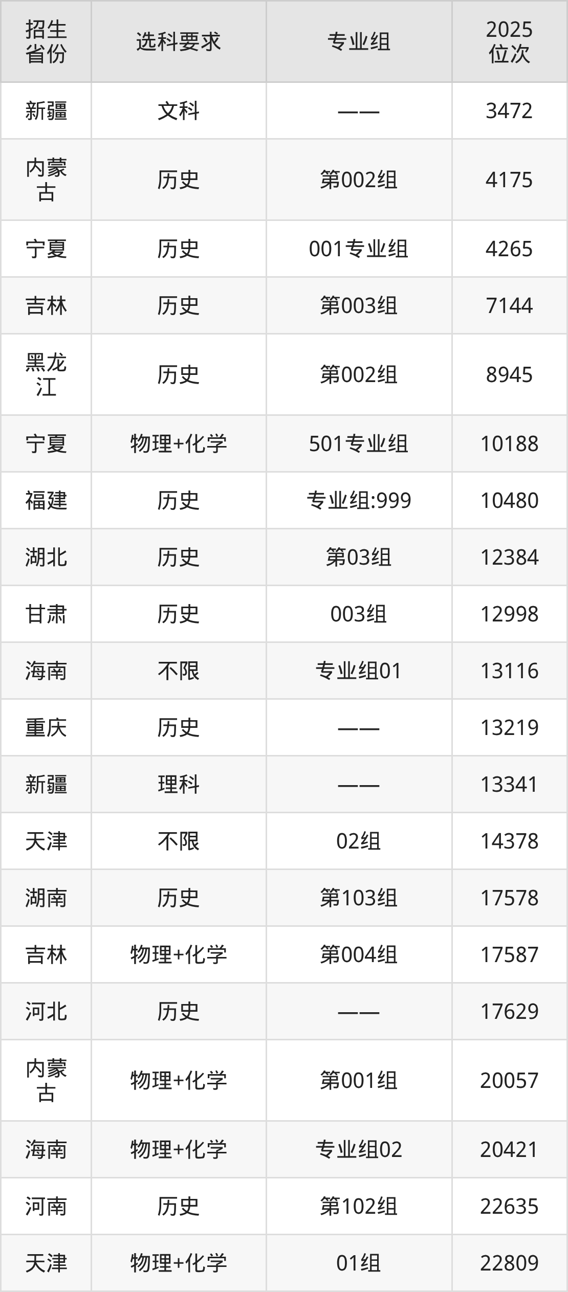 青岛科技大学2025年在全国各省的位次差异较大,最高位次是3472位(新疆文科)、最低位次是267410位(山东)。各省具体位次请看下图: