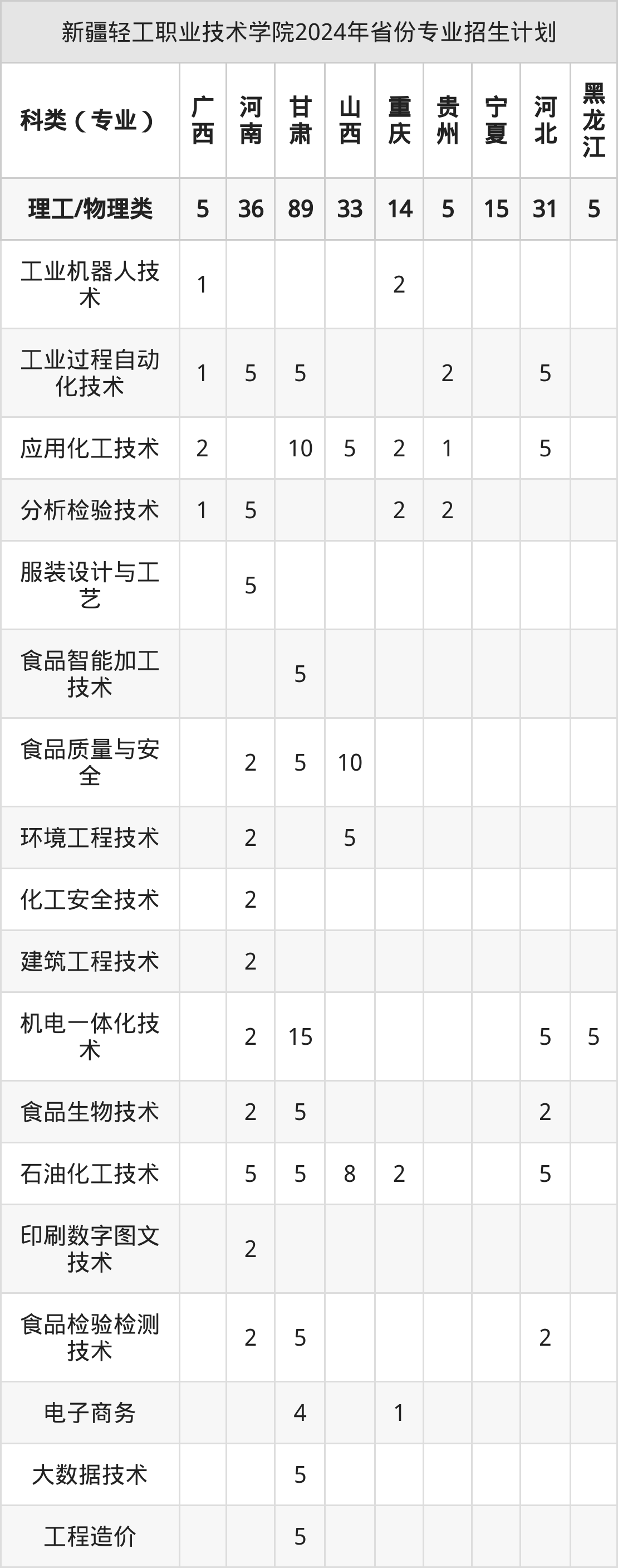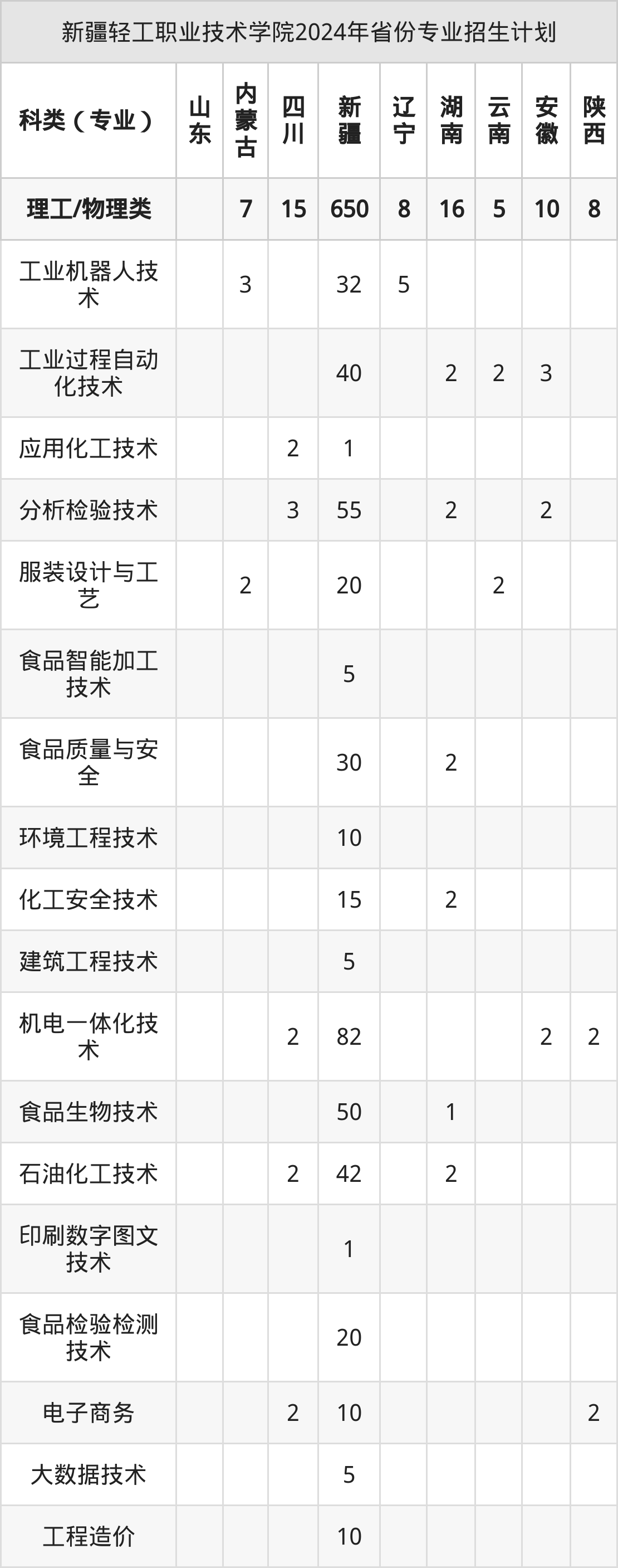 2025年新疆轻工职业技术学院专科招生计划待公布,下面附上2024年数据,暂供参考: