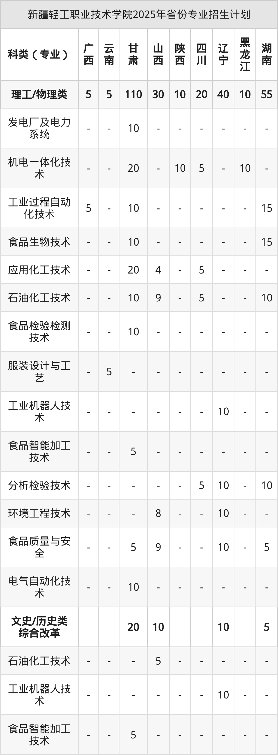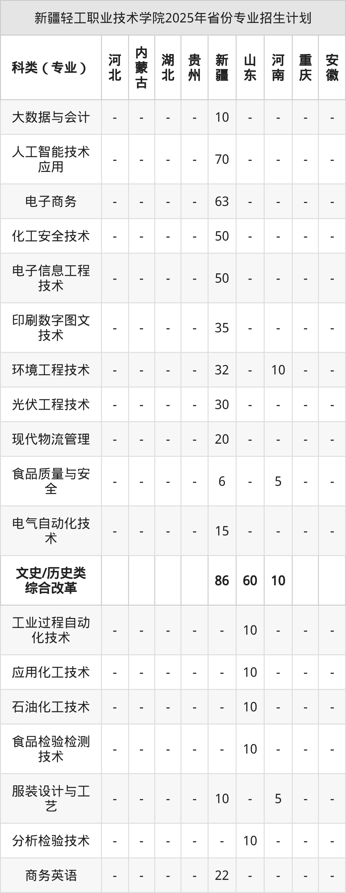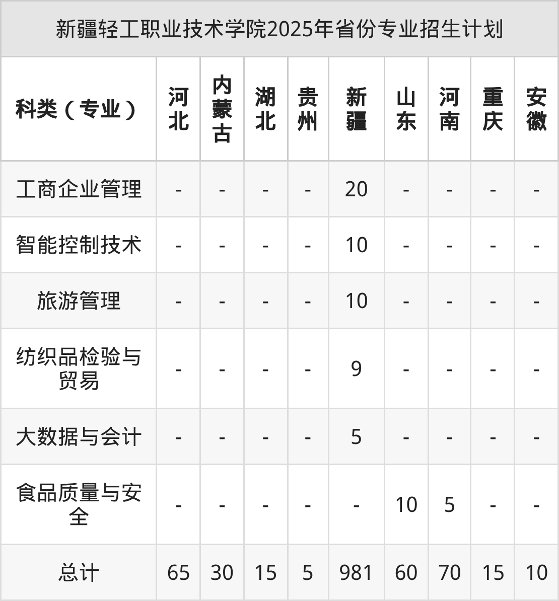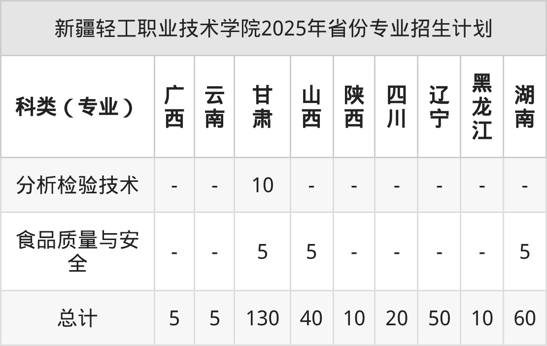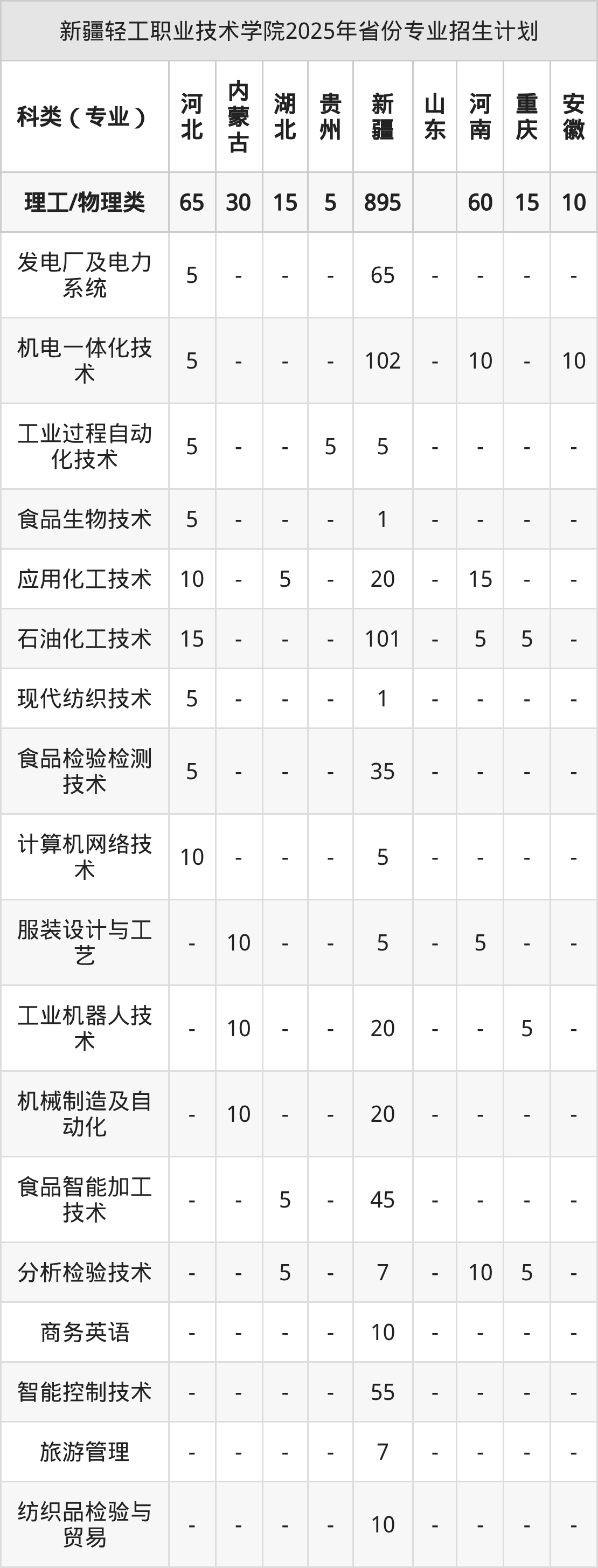 2026年新疆轻工职业技术学院专科招生计划待公布,下面附上2025年数据,暂供参考: