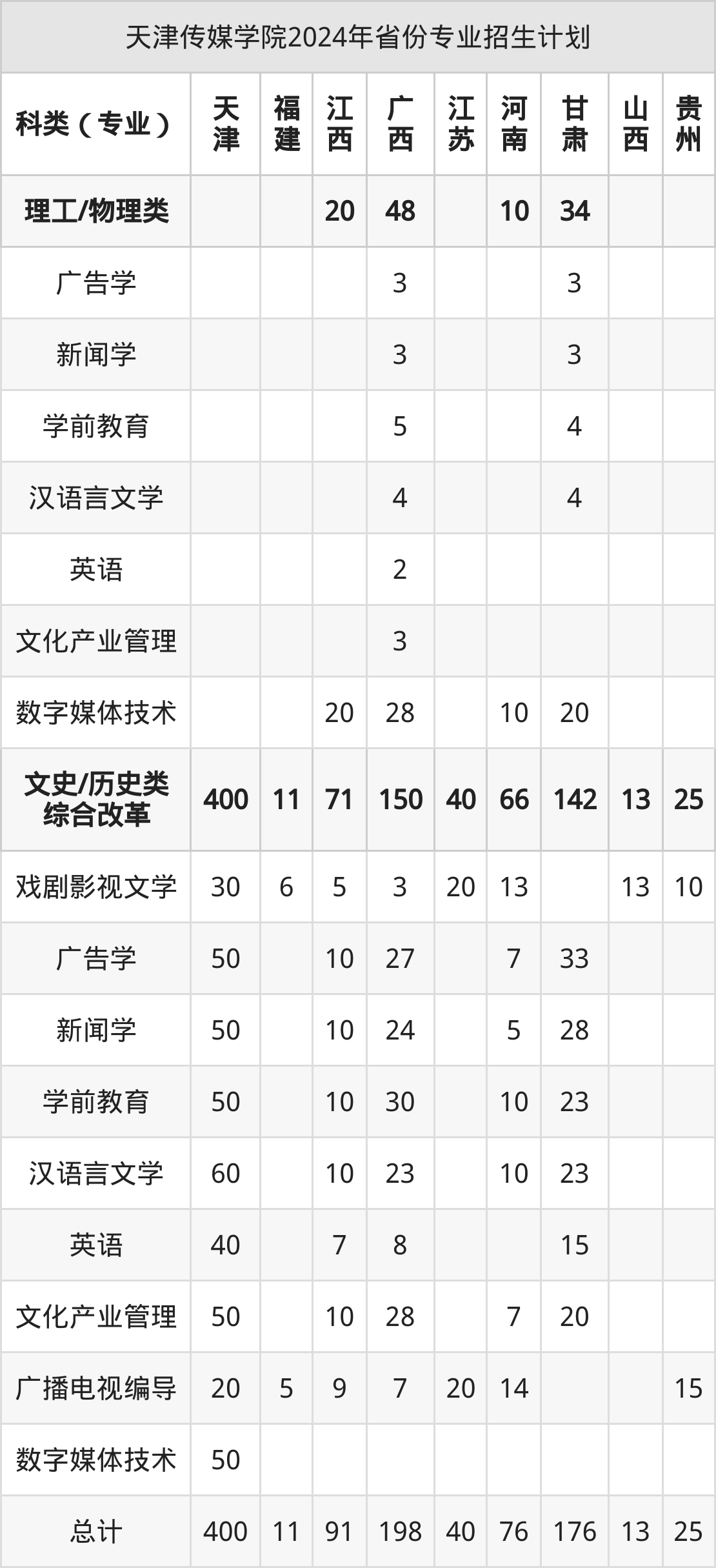 2025年天津传媒学院本科招生计划待公布,下面附上2024年数据,暂供参考: