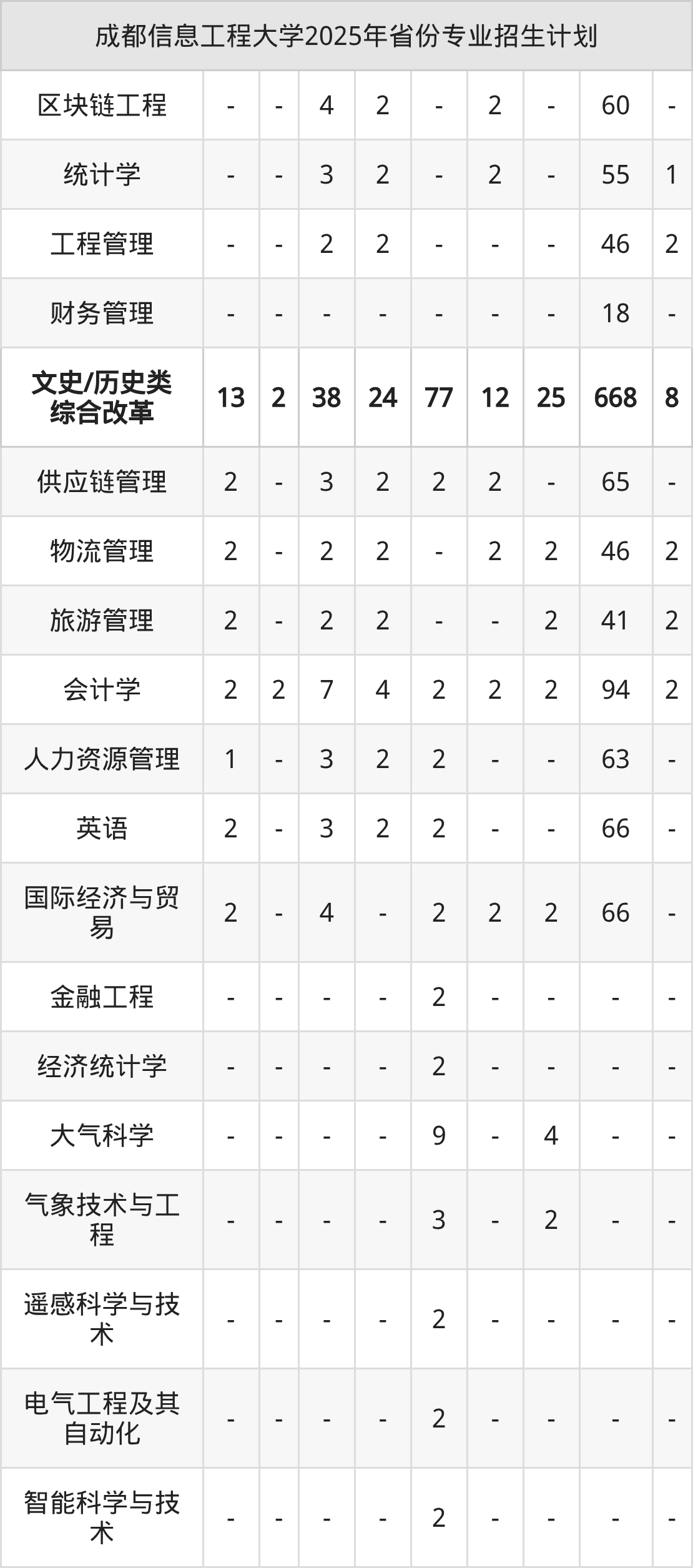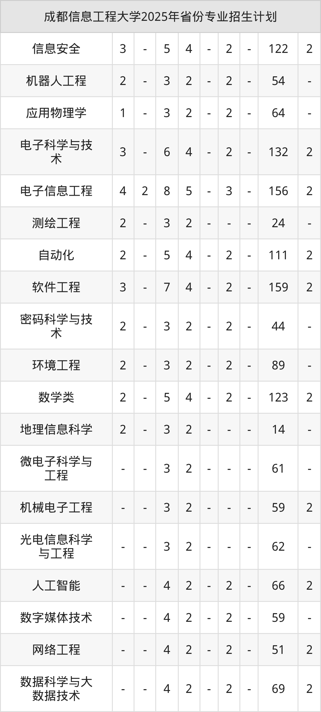 2026年成都信息工程大学本科招生计划待公布,下面附上2025年数据,暂供参考: