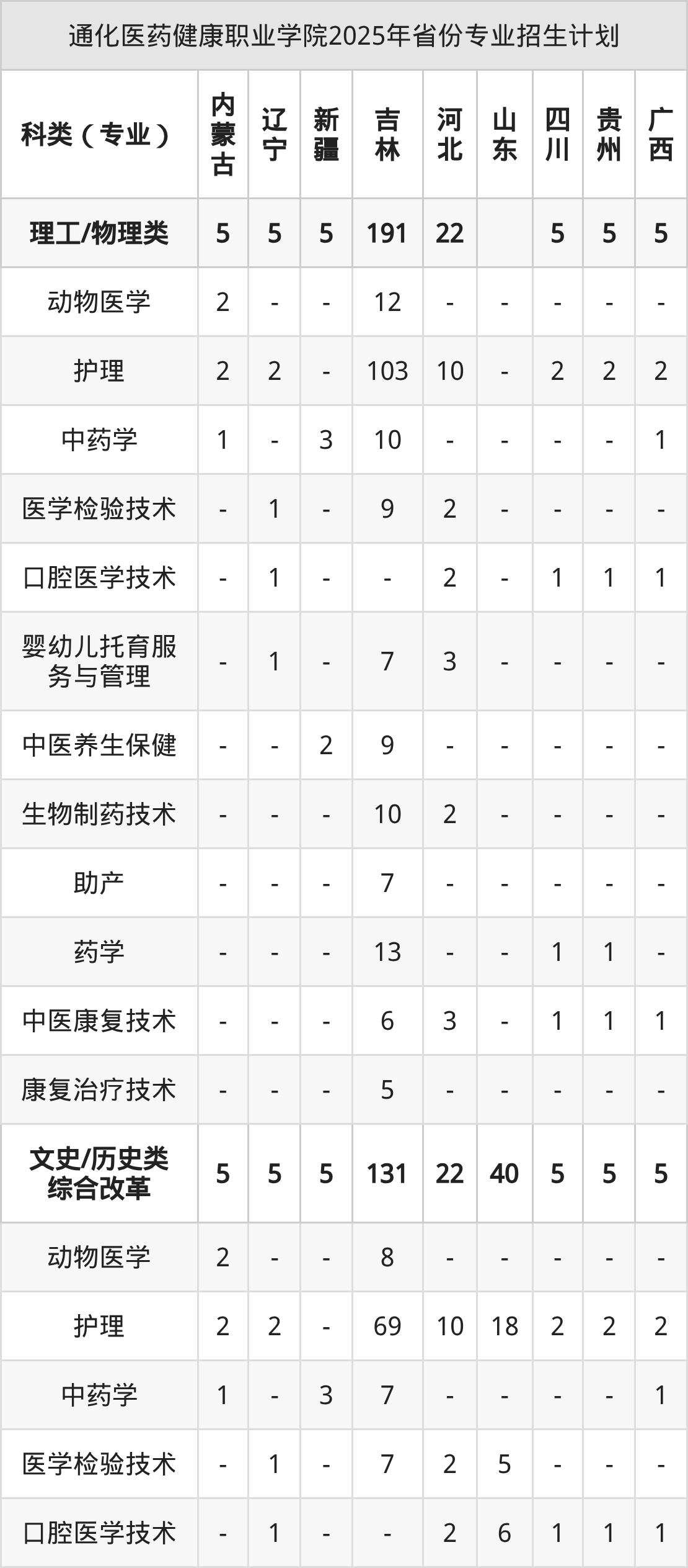 2026年通化医药健康职业学院专科招生计划待公布,下面附上2025年数据,暂供参考: