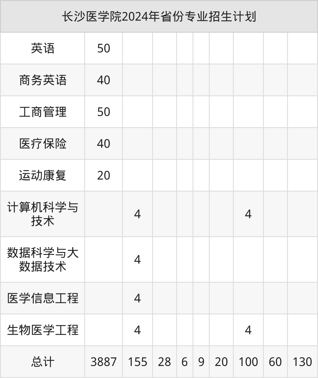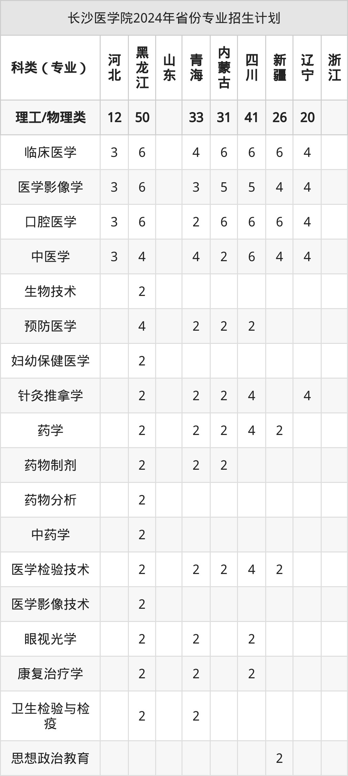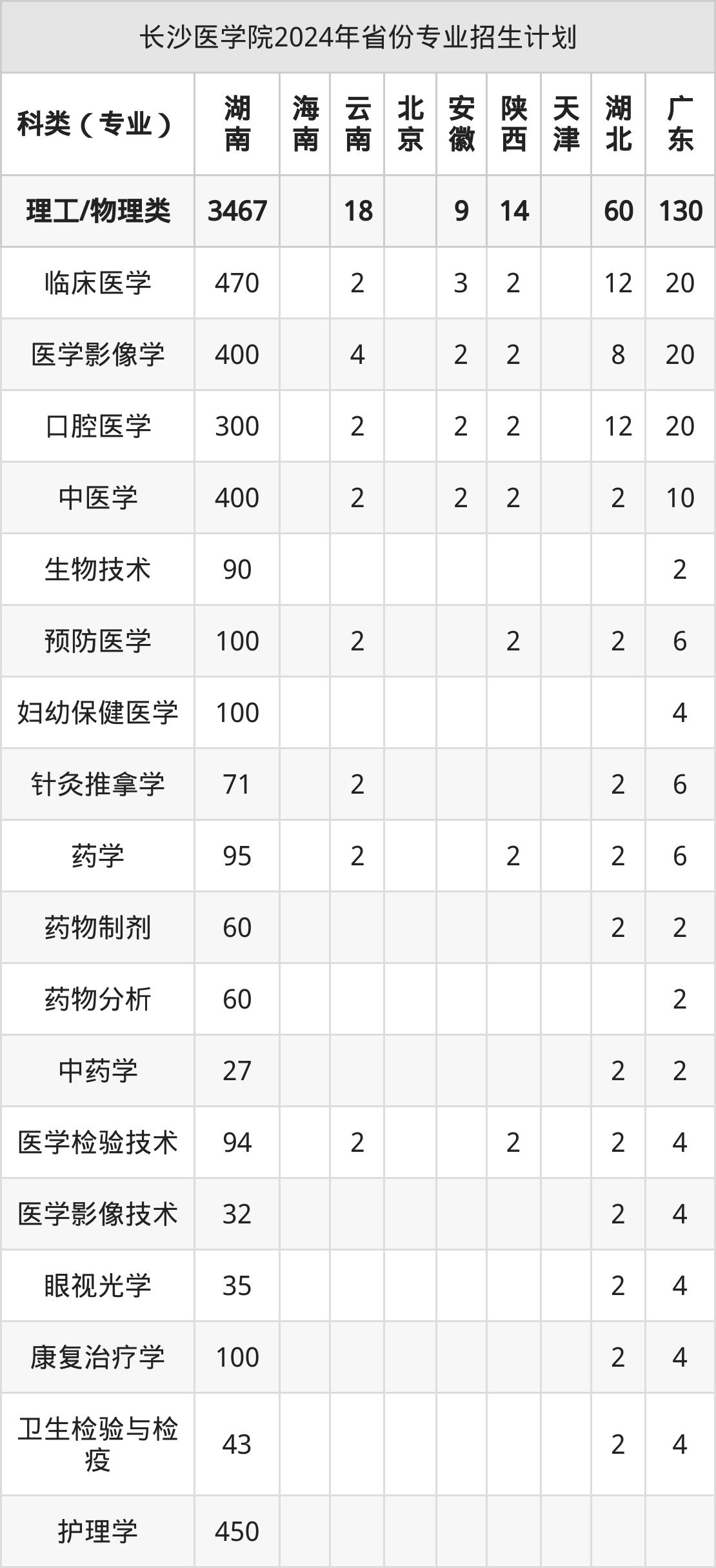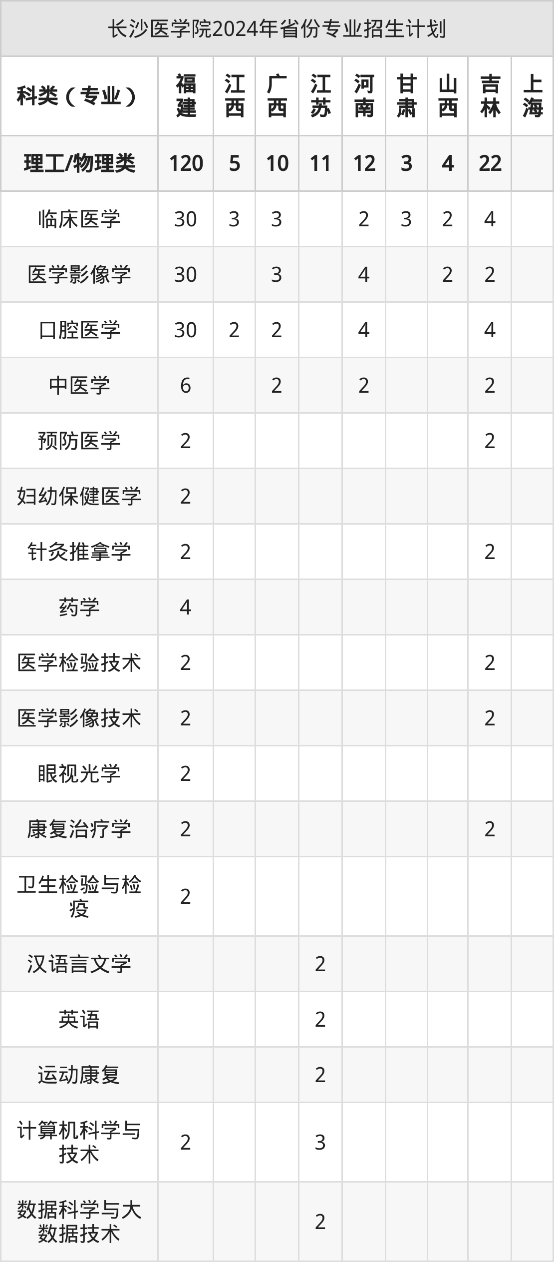 2025年长沙医学院本科招生计划待公布,下面附上2024年数据,暂供参考: